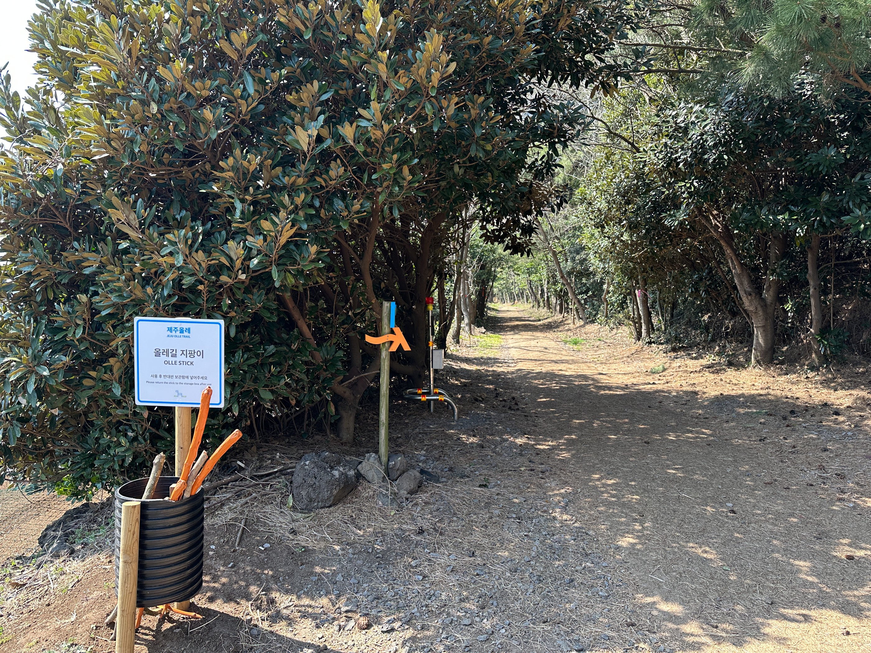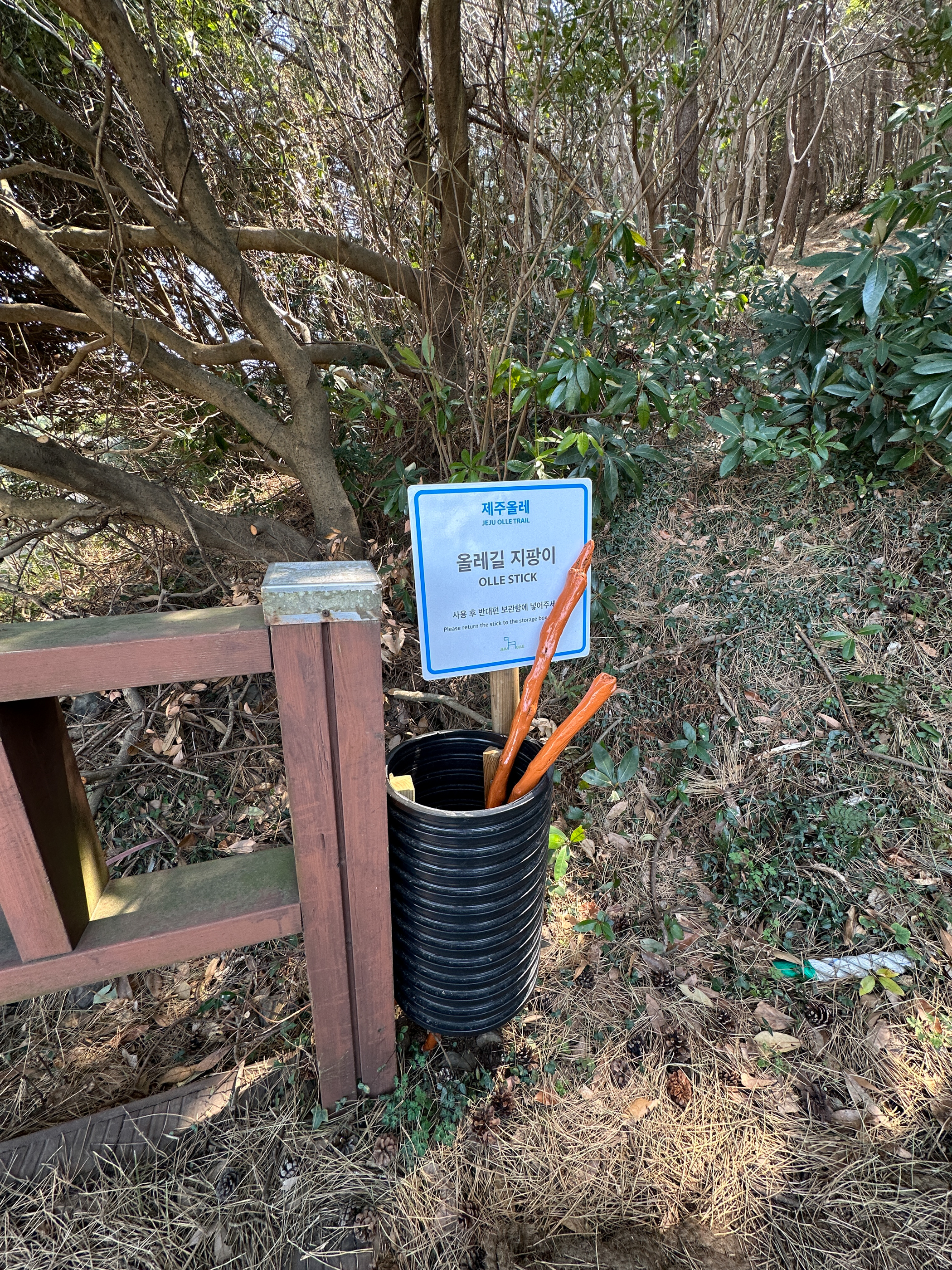 올레길 지팡이는 사용 후 반대편 보관함에 넣어두면 된다.