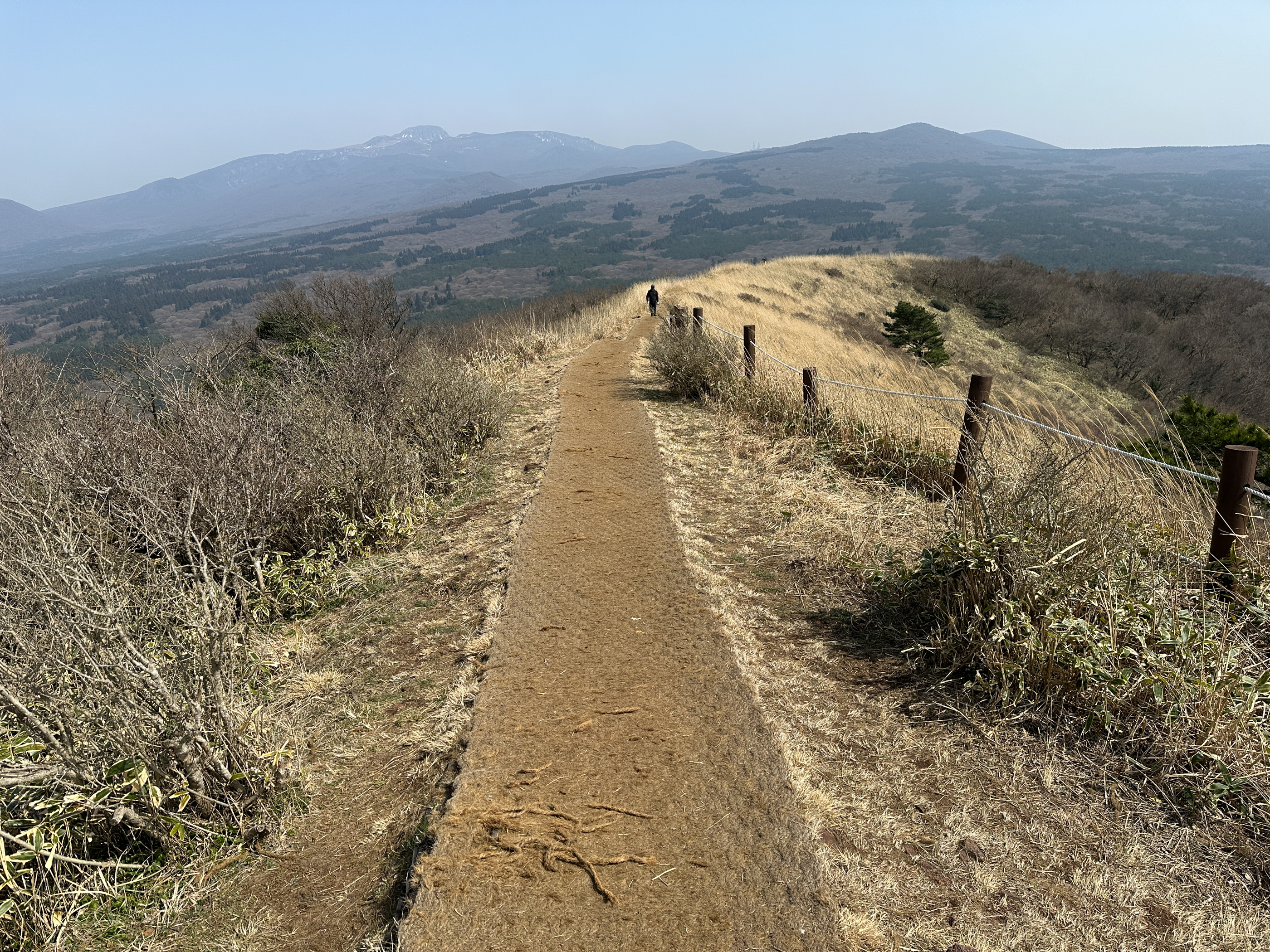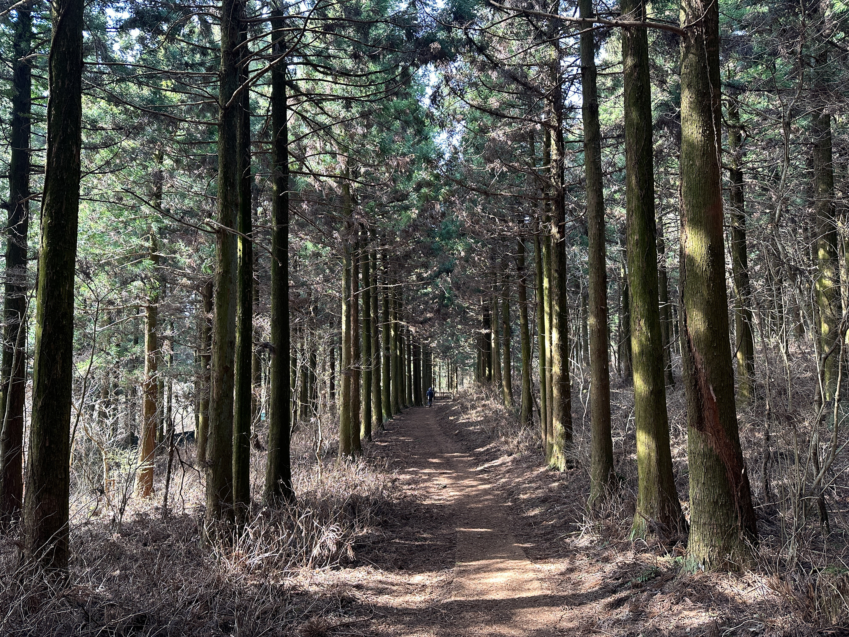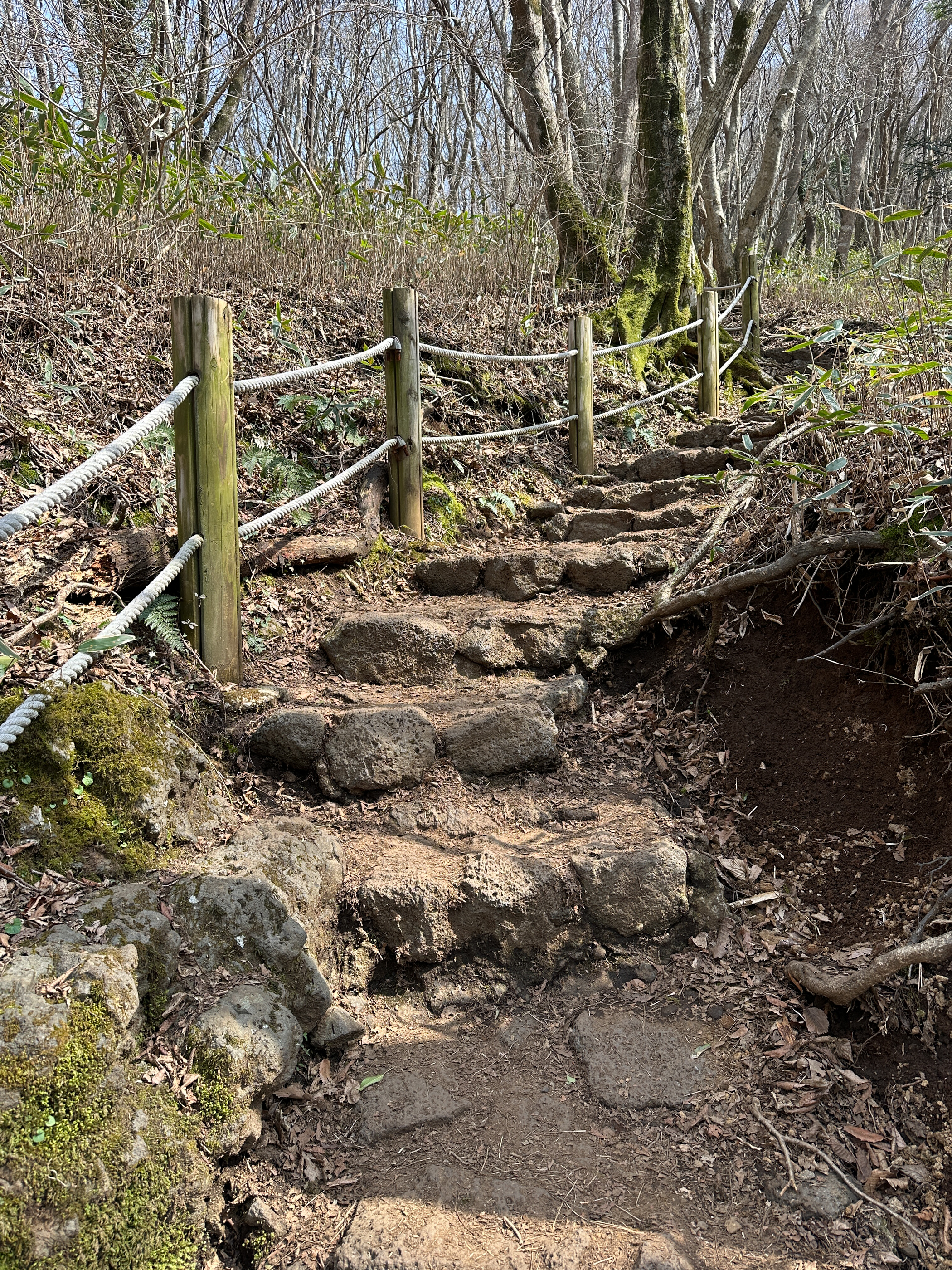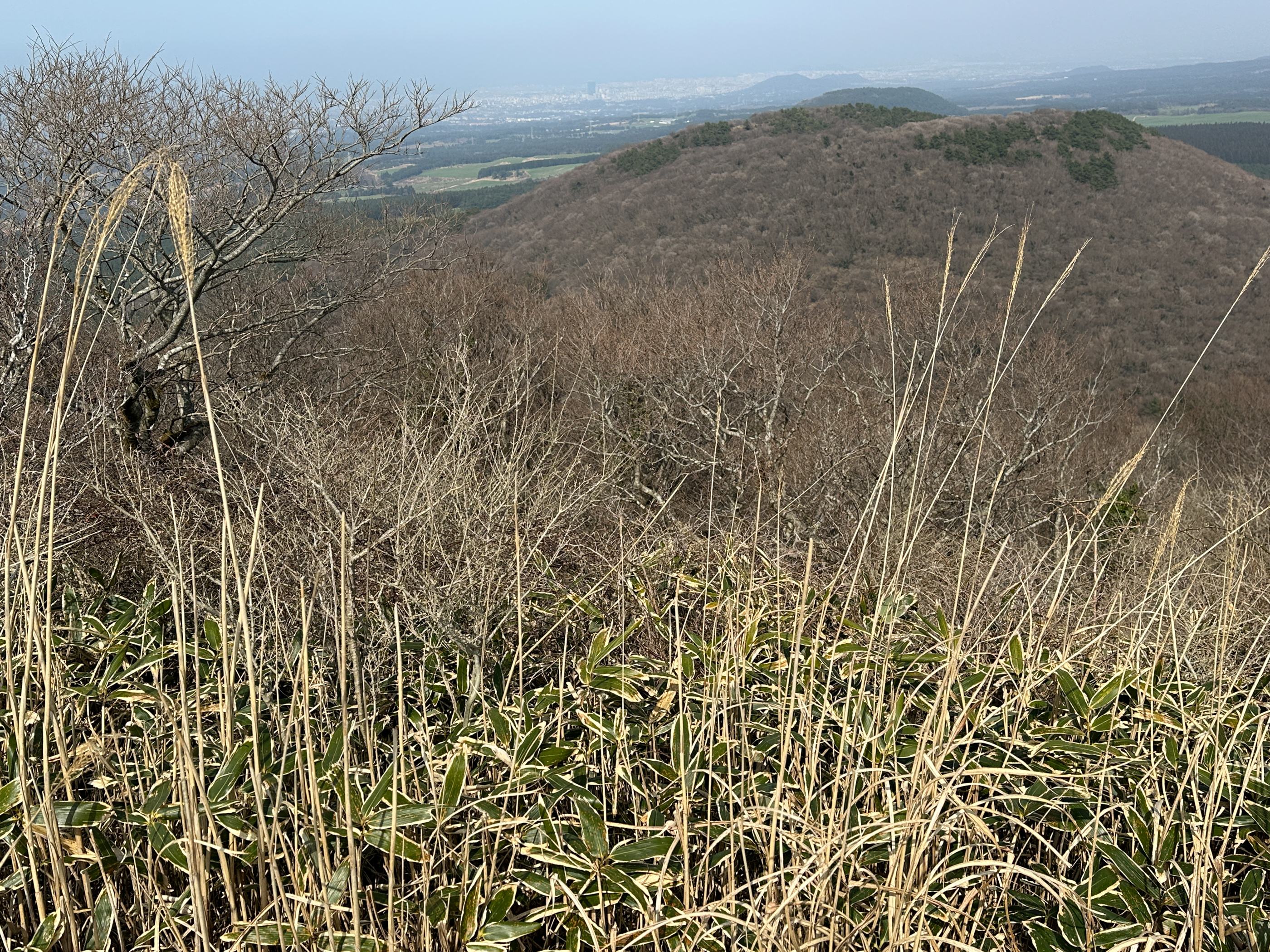 다시 올라 갈 때 장소에 도착했다. 제1쉼터에서 제2쉼터까지 가파른 경사길 10여분정도 외에는 큰 무리 없이 오를 수 있는 오름이다. 가을 처럼 청명한 날씨라면 능선부터 전망대까지 올라가며 볼 수 있는 정경은 환상적일텐데 하는 아쉬움이 든다.