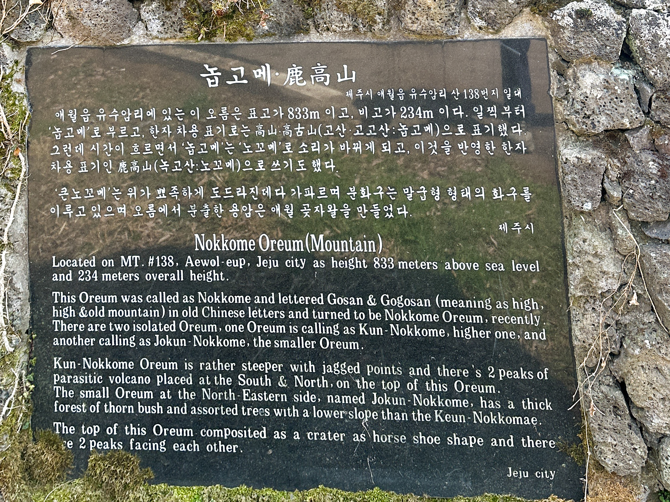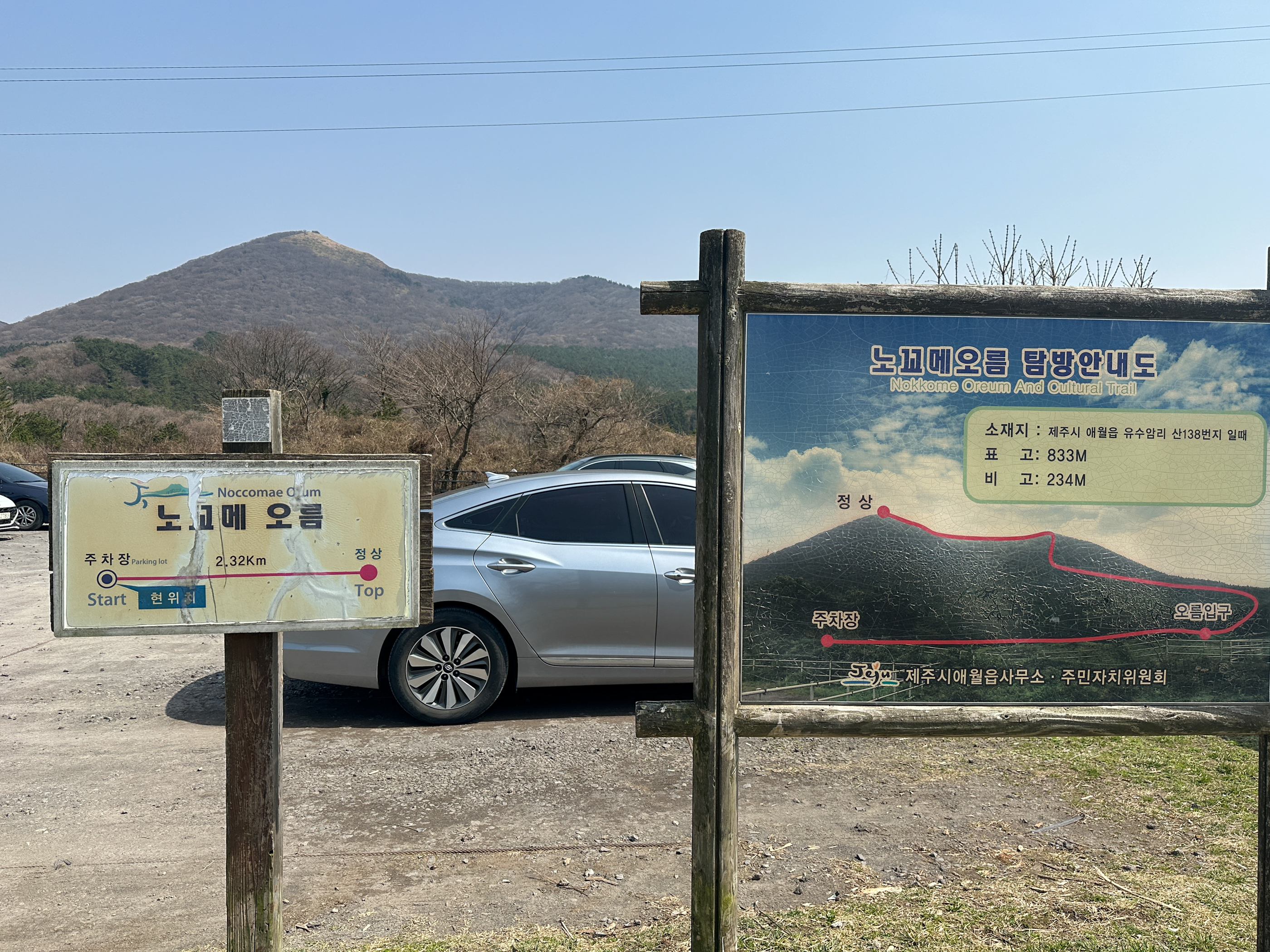 점심을 먹곤 최근 기사에서 도민이 더 많이 찾은 오름 1순위로 애월에 있는 '큰노꼬메오름'을 찾아 나섰다.