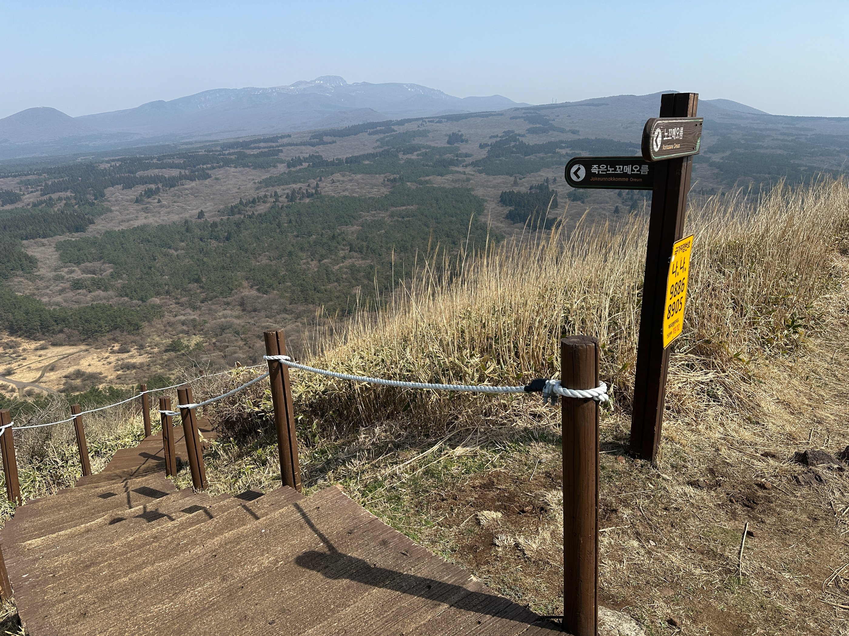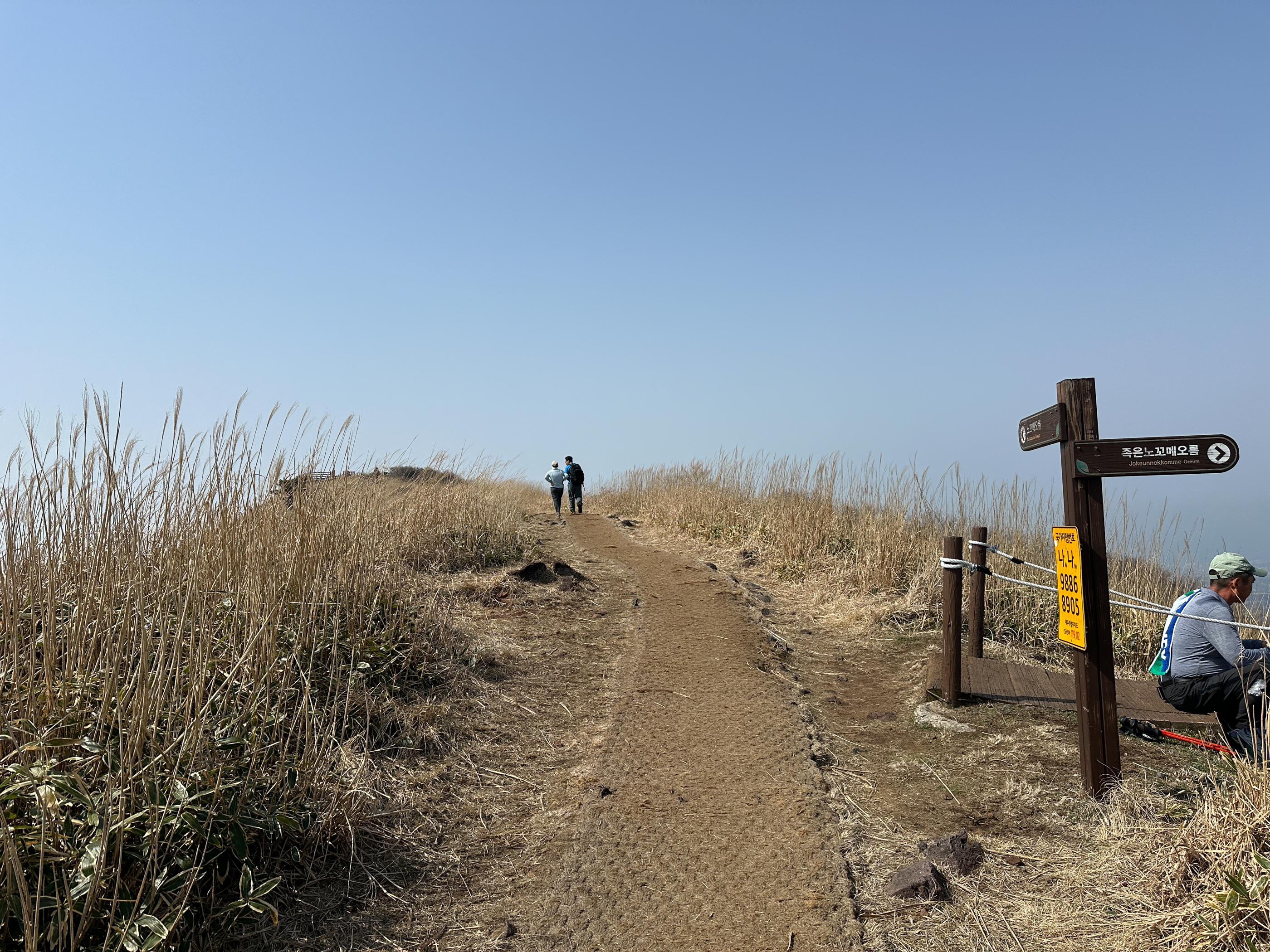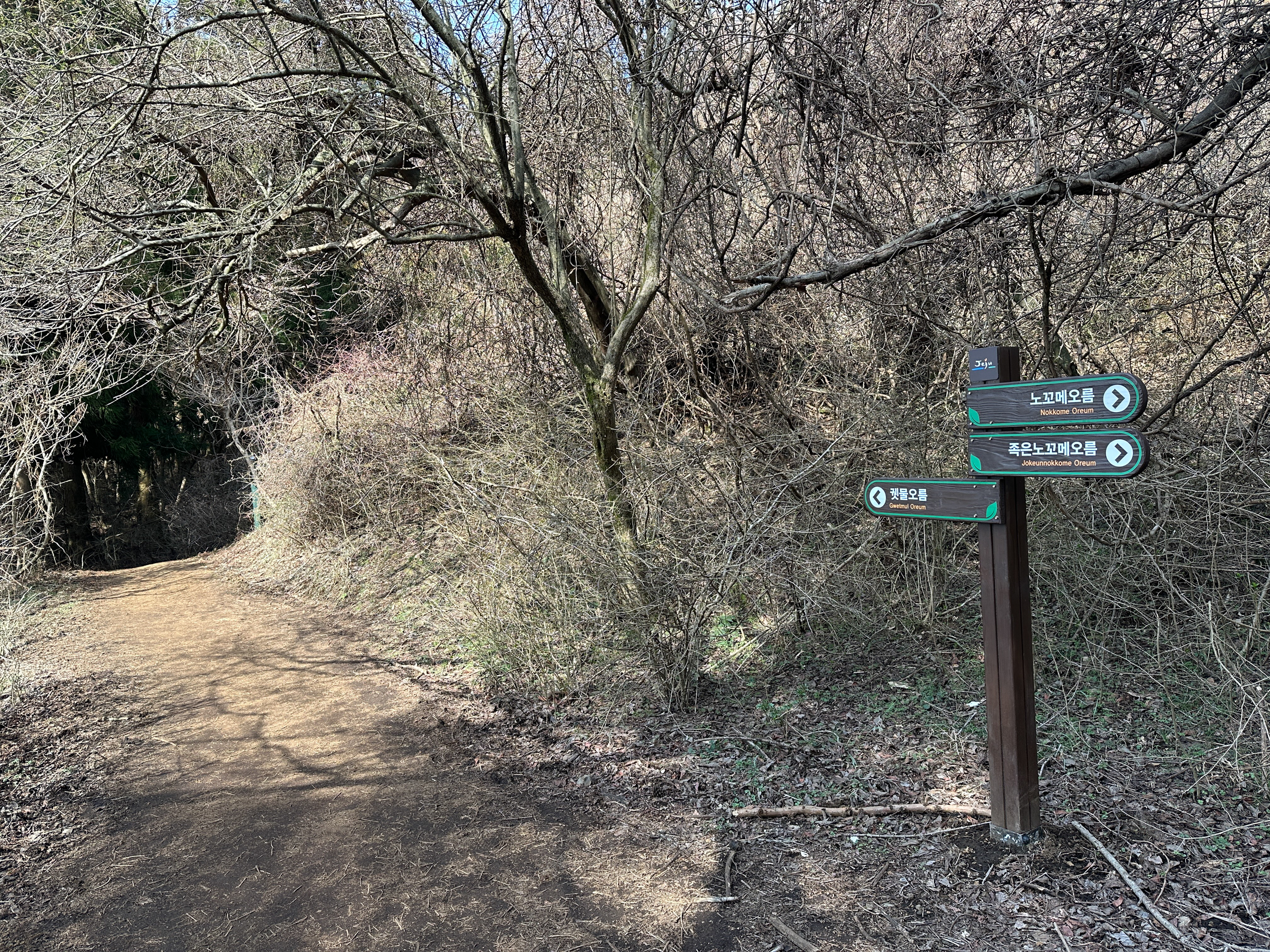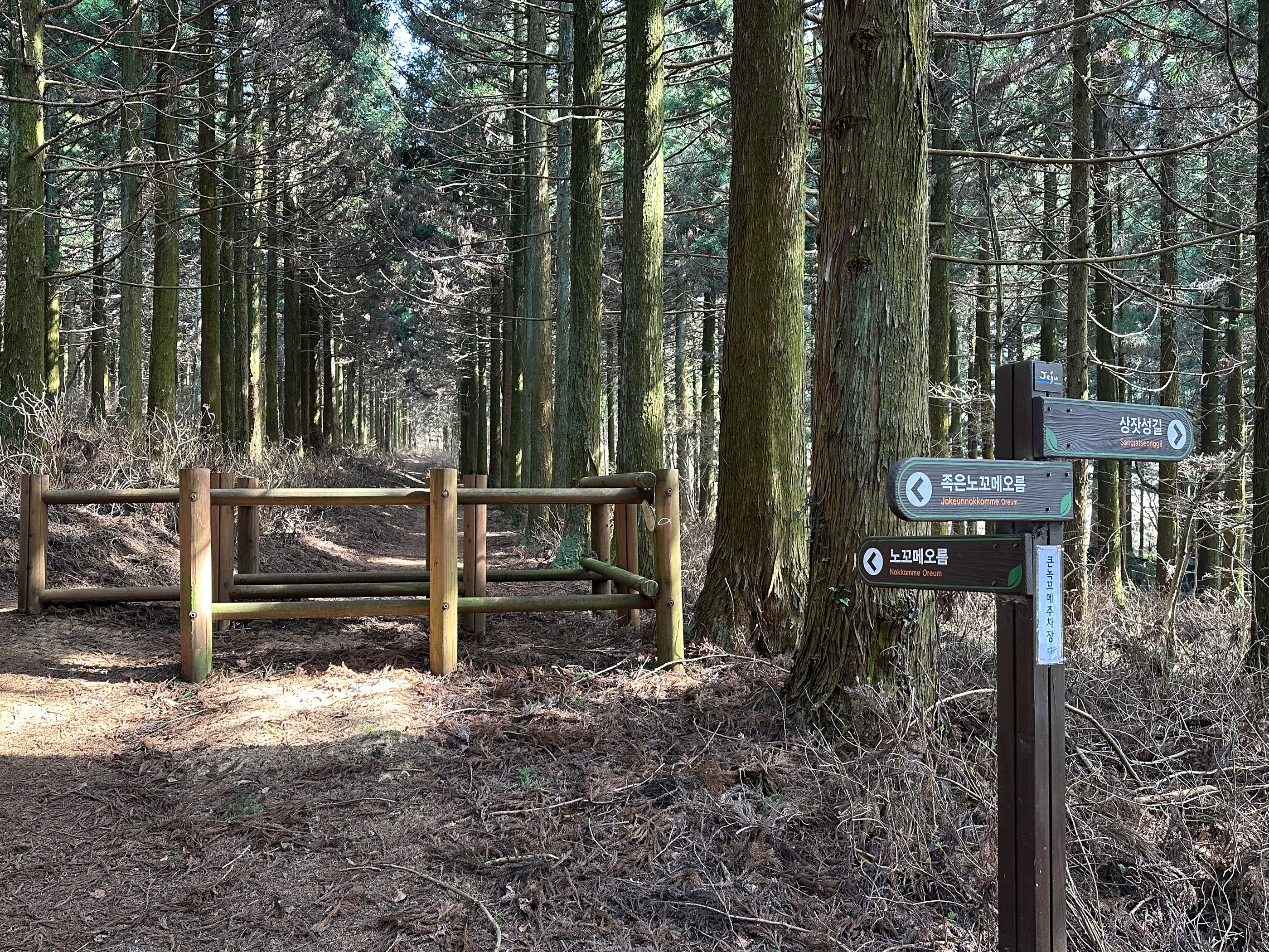 멀리 정상이 보인다. 내려갈 때는 우측 표지판 '족은노꼬메오름' 방향이다.