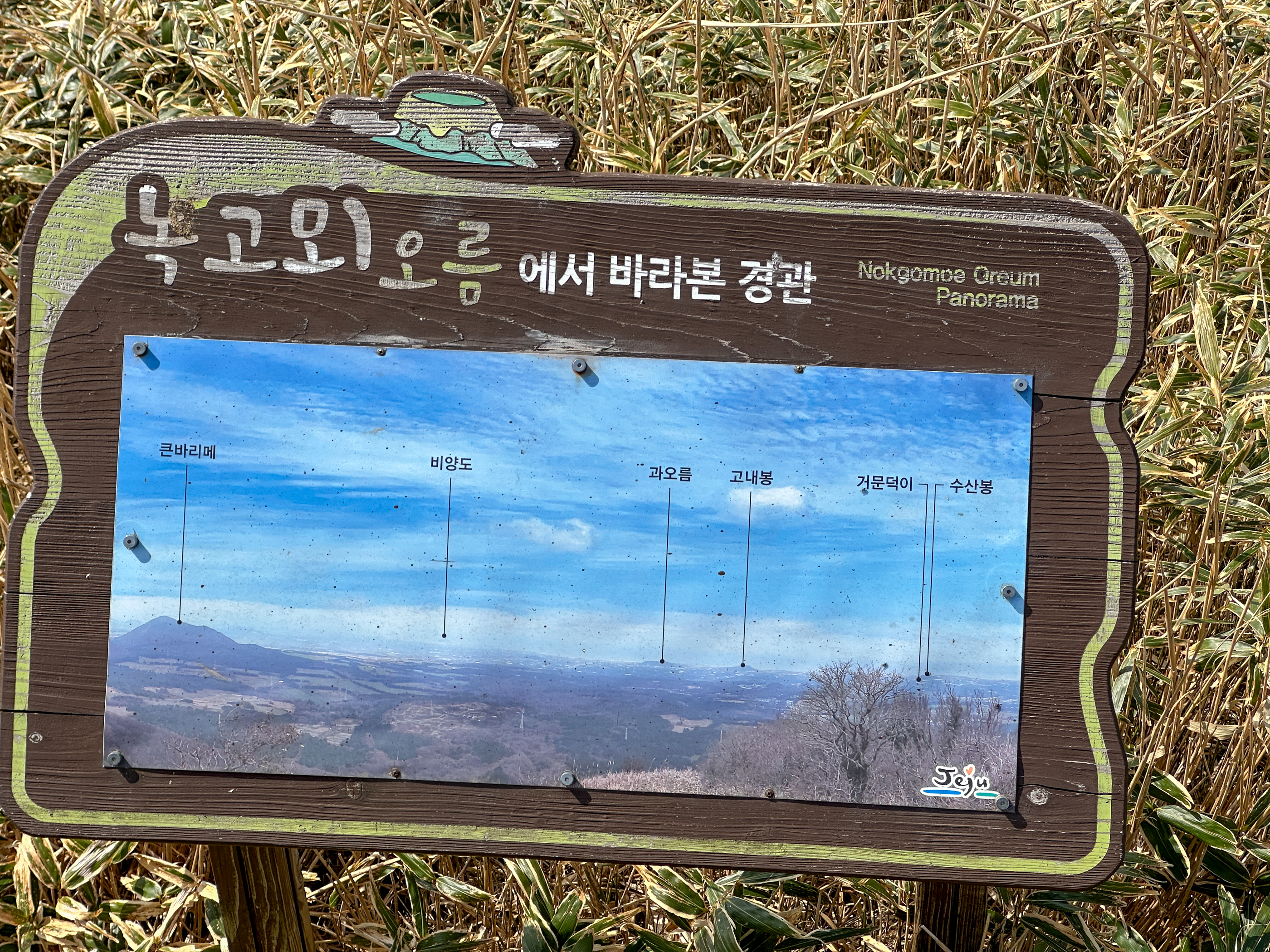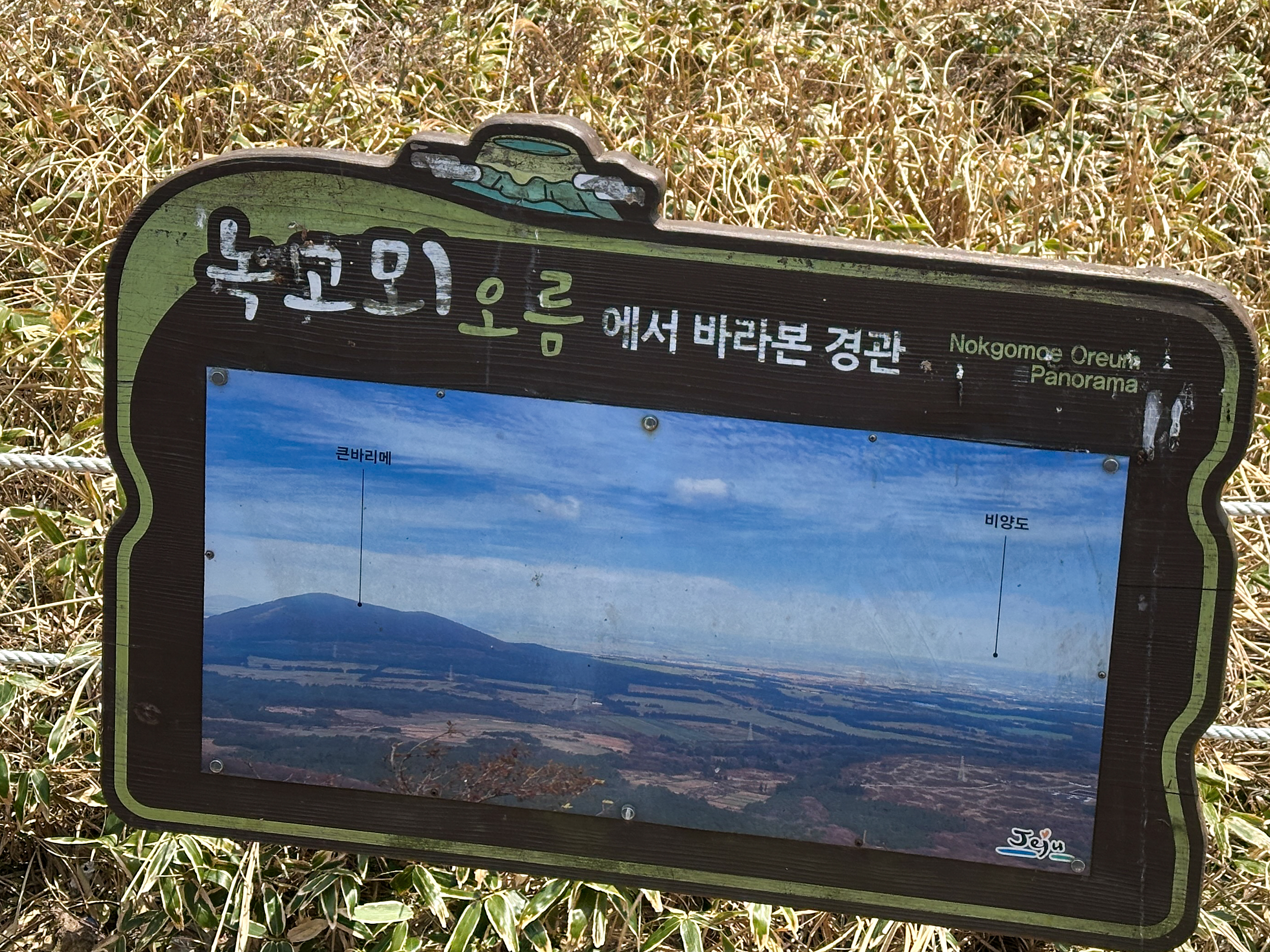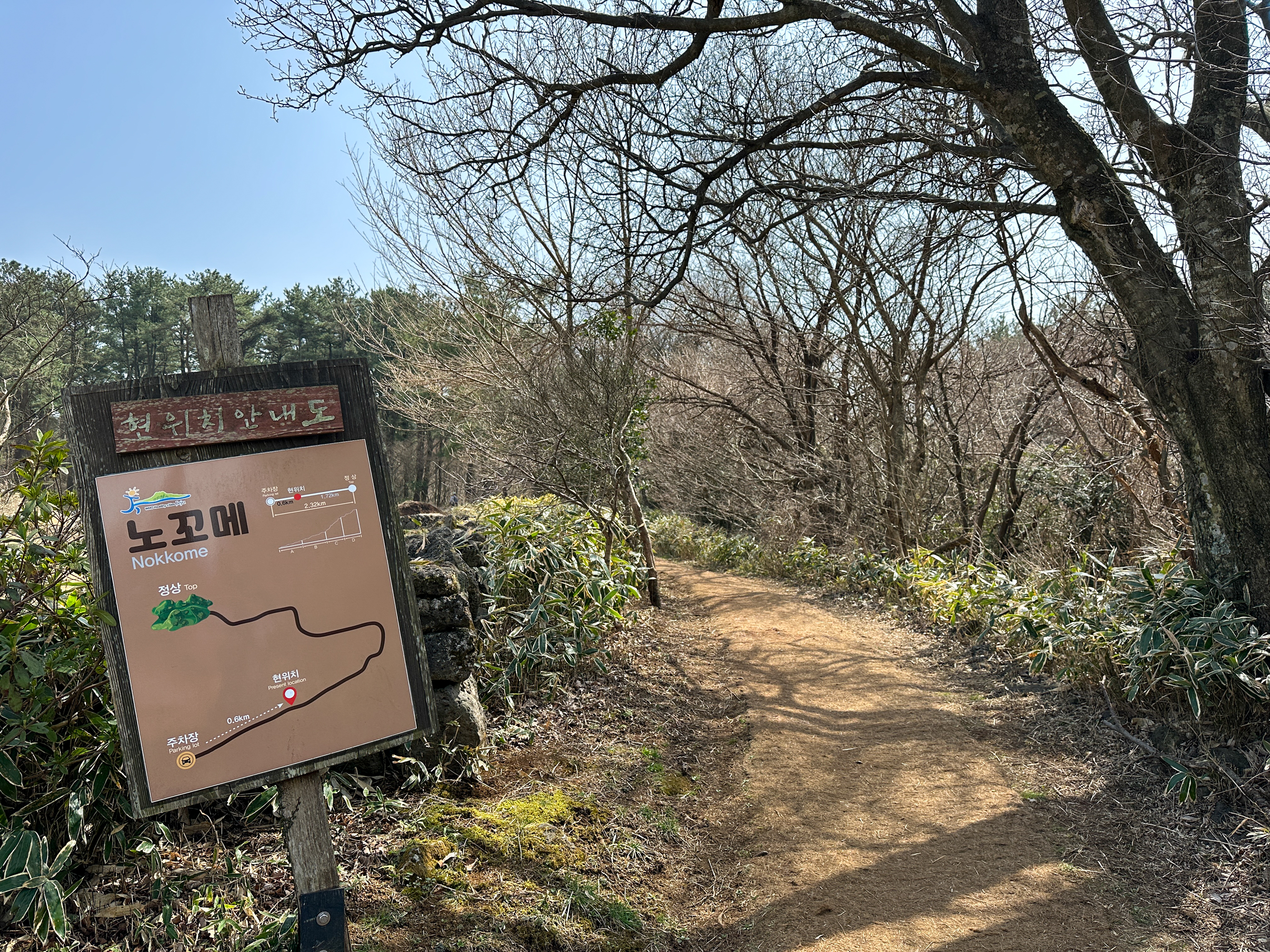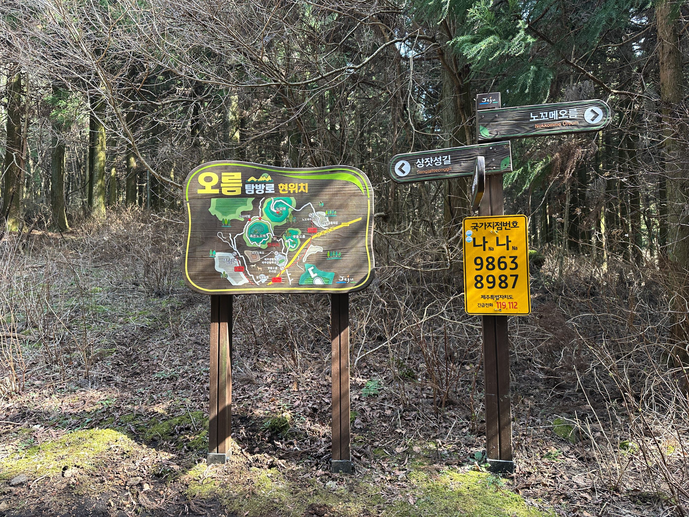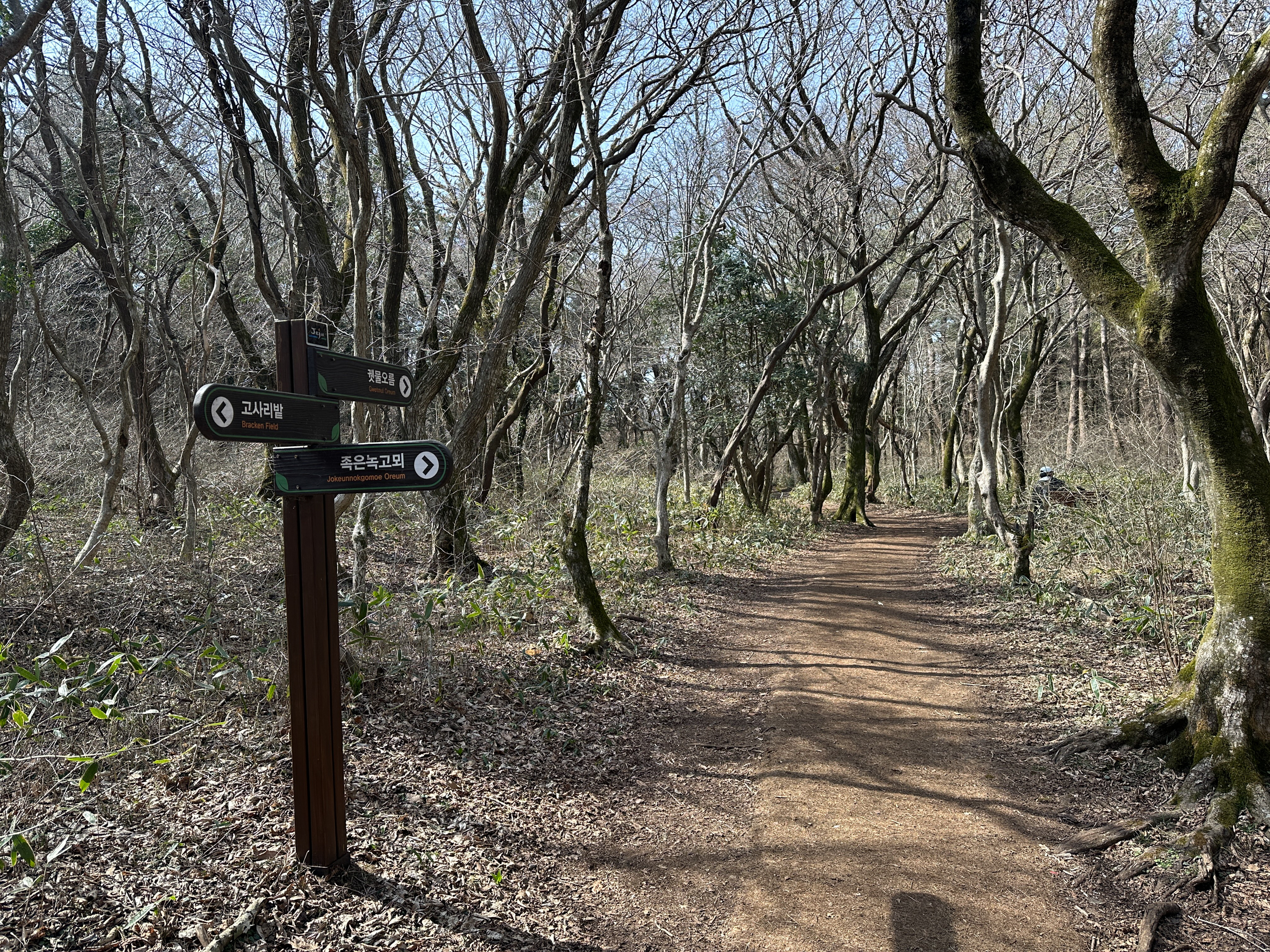 멀리 정상이 보인다. 내려갈 때는 우측 표지판 '족은노꼬메오름' 방향이다.