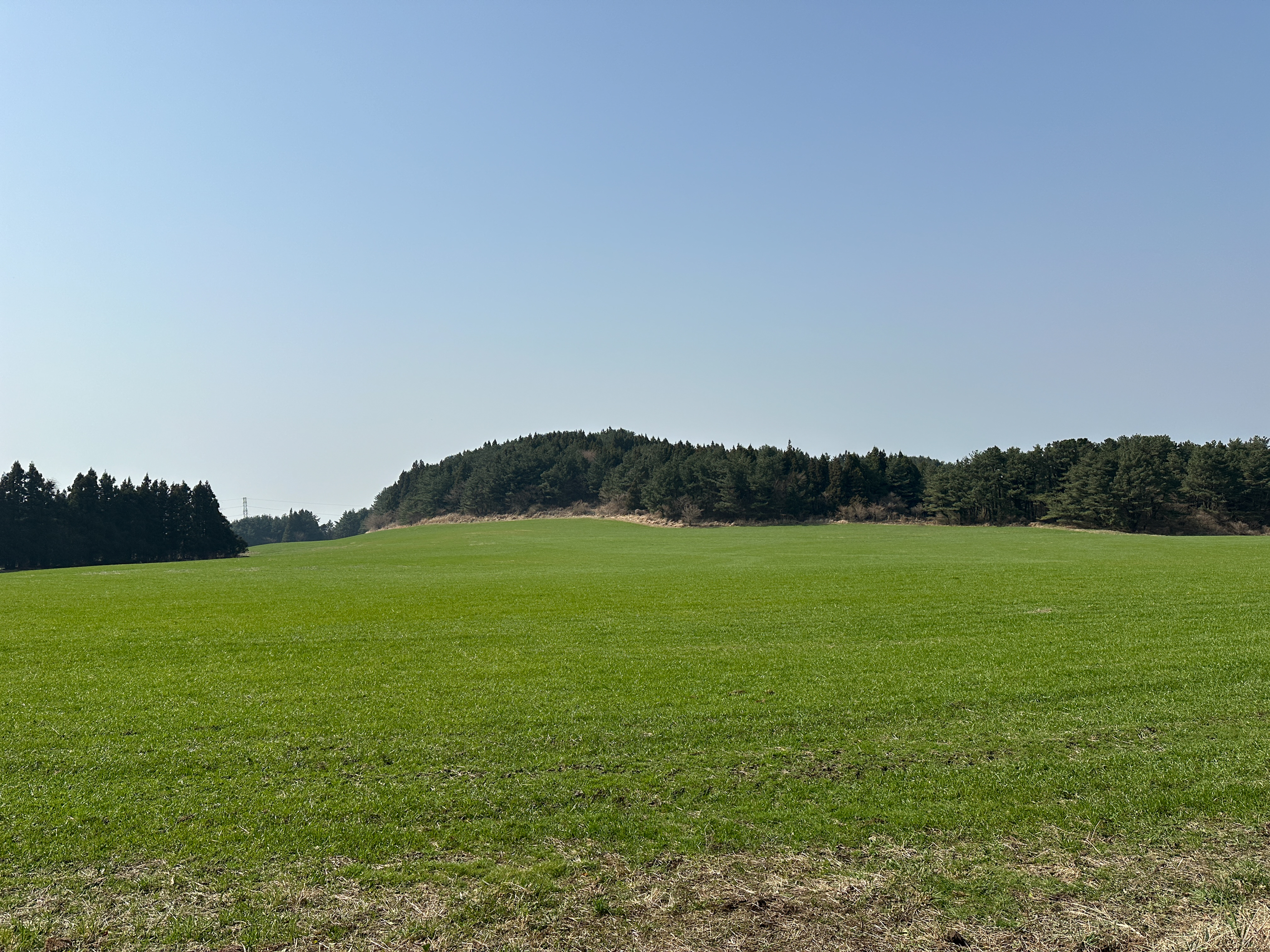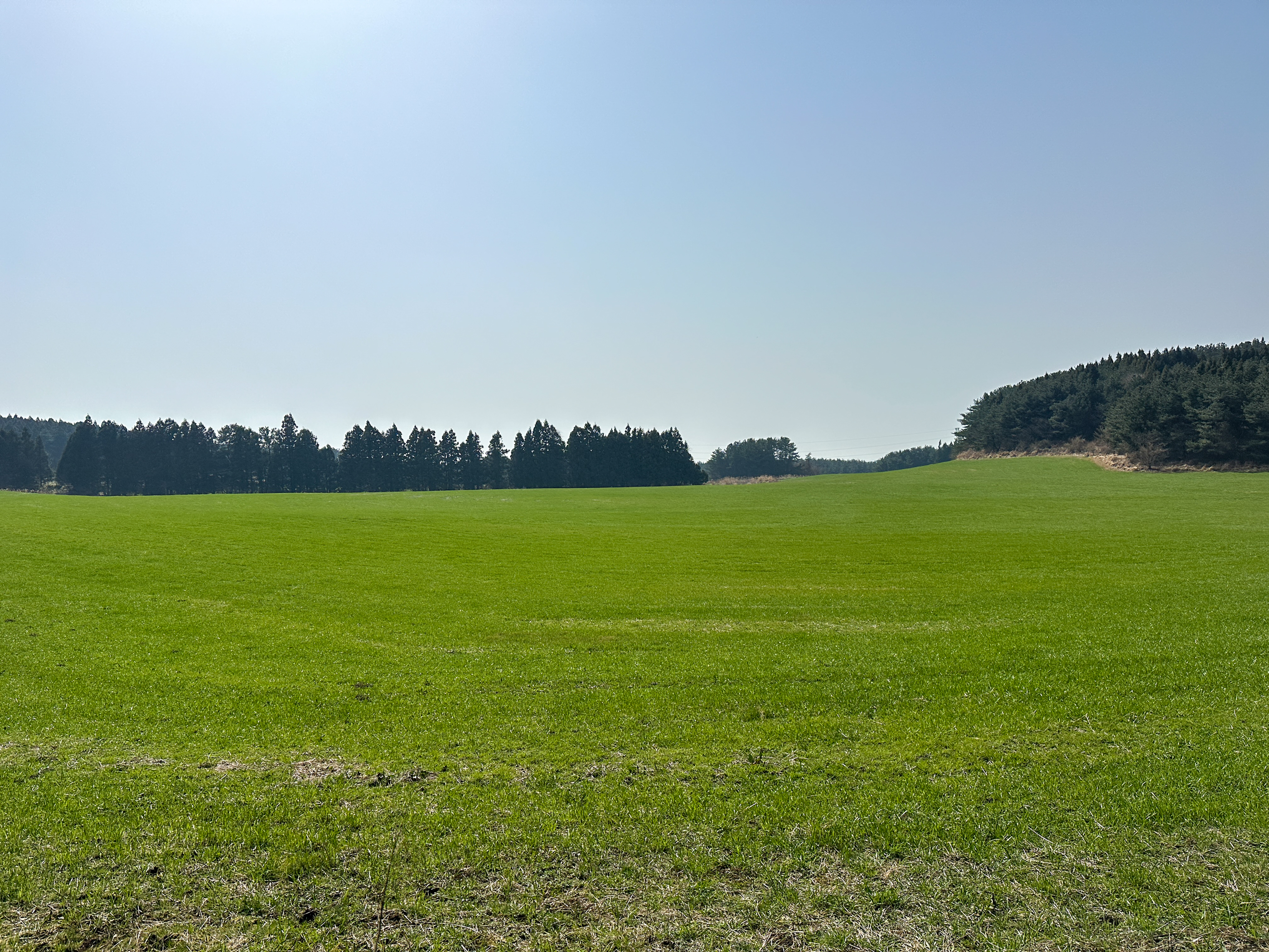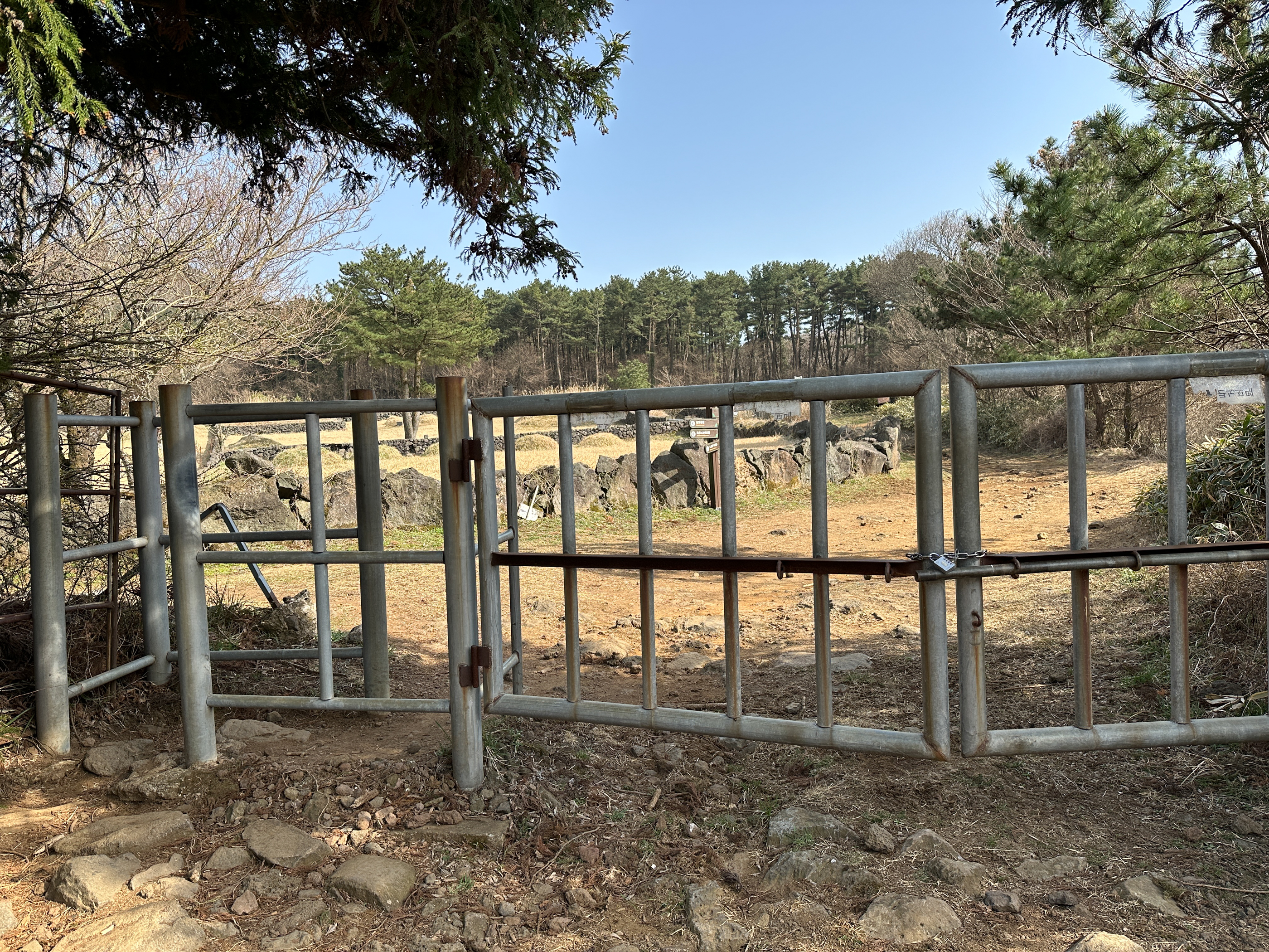 문을 통과하면 왼쪽 '상잣성길' 방향이다. 옆으로는 넓은 초원도 보인다.