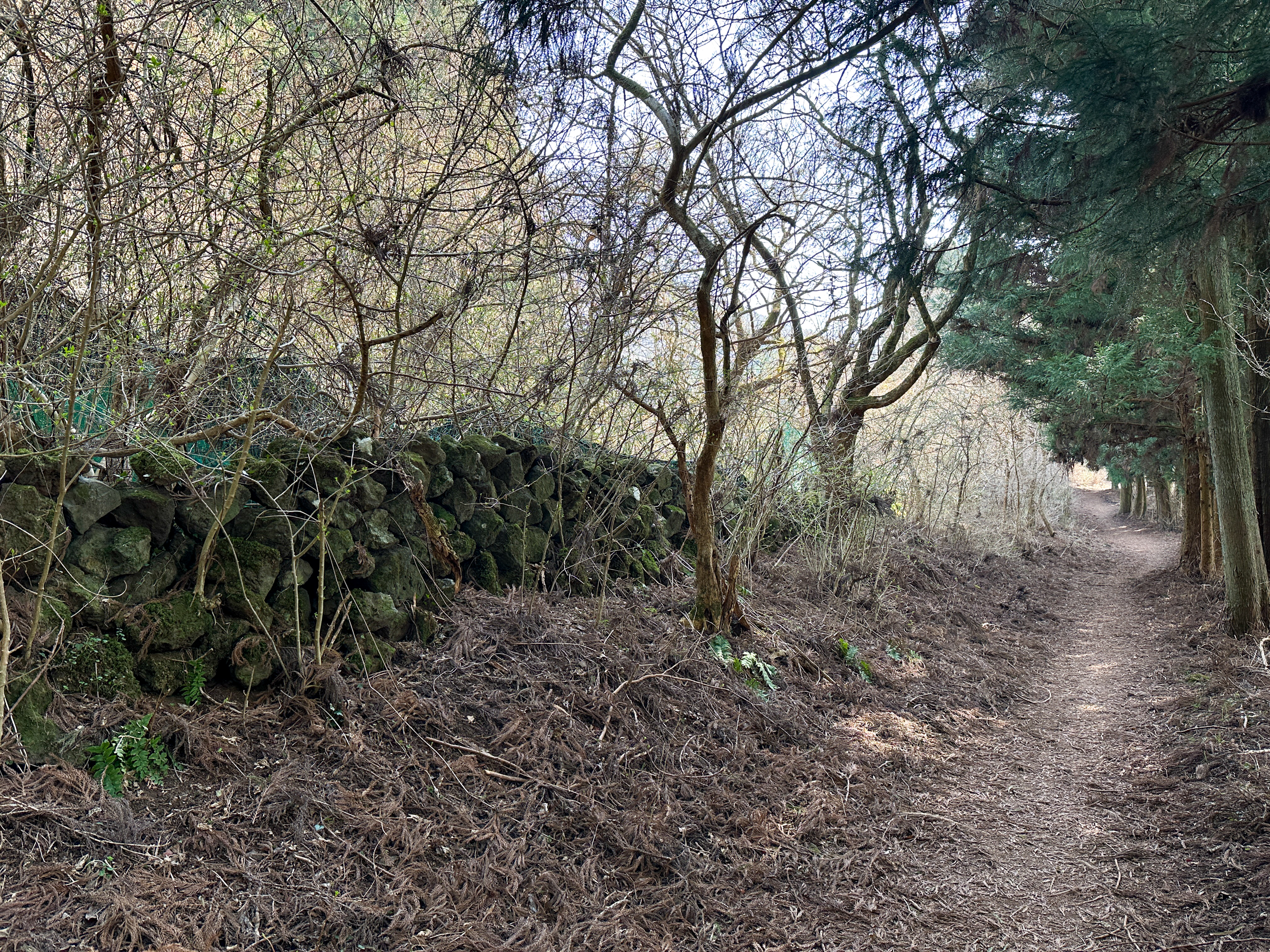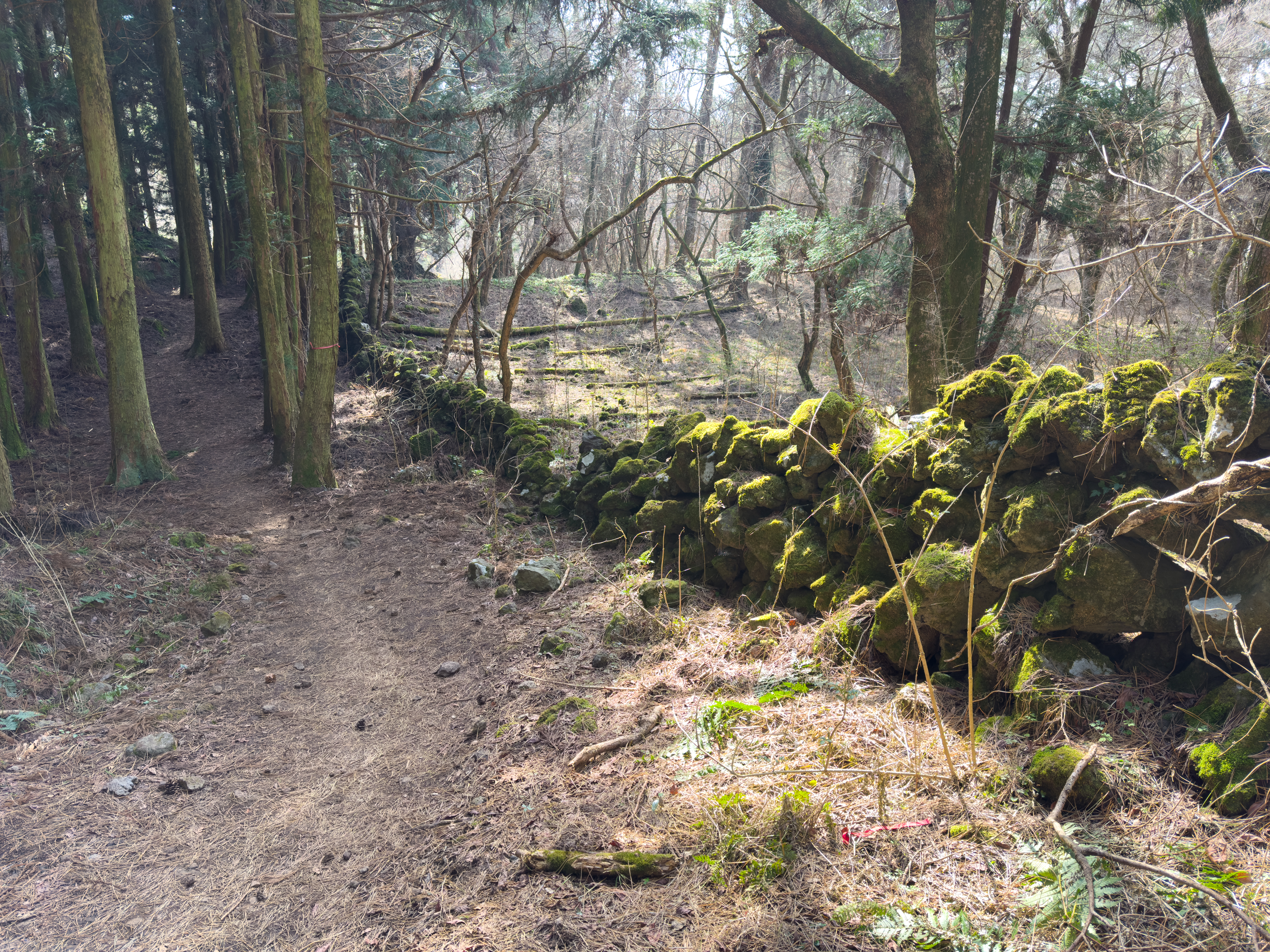 파란문을 통과 해 우측에 잣성을 두고 걷는다.