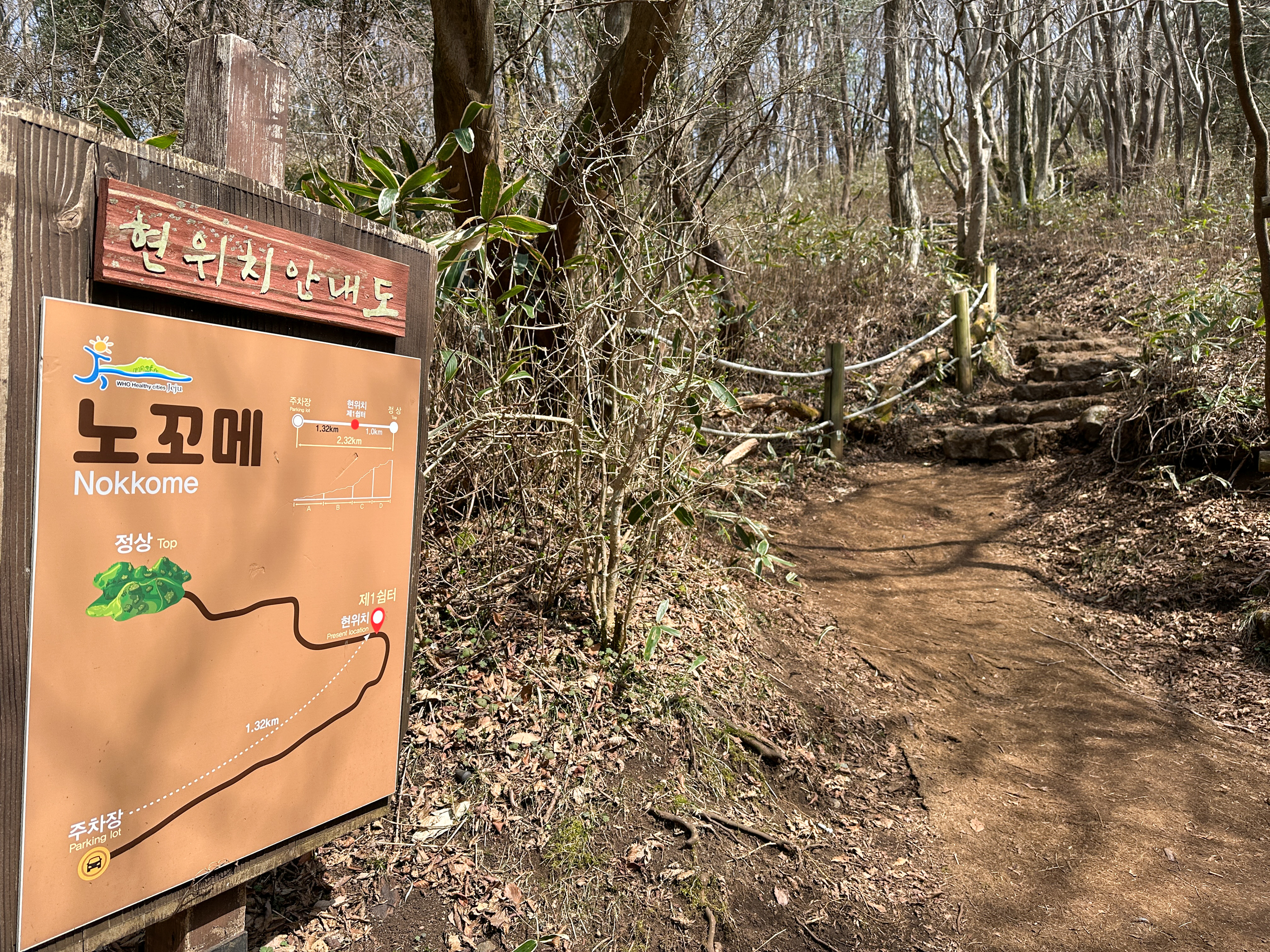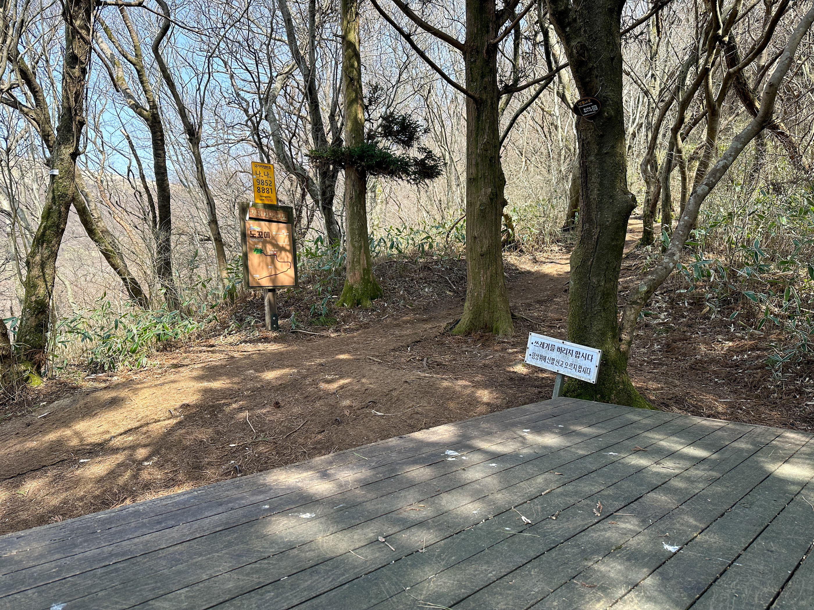 산길을 따라 올라가면 입구가 있다. 입구를 통과해 이정표를 따라 오른쪽으로 올라간다.