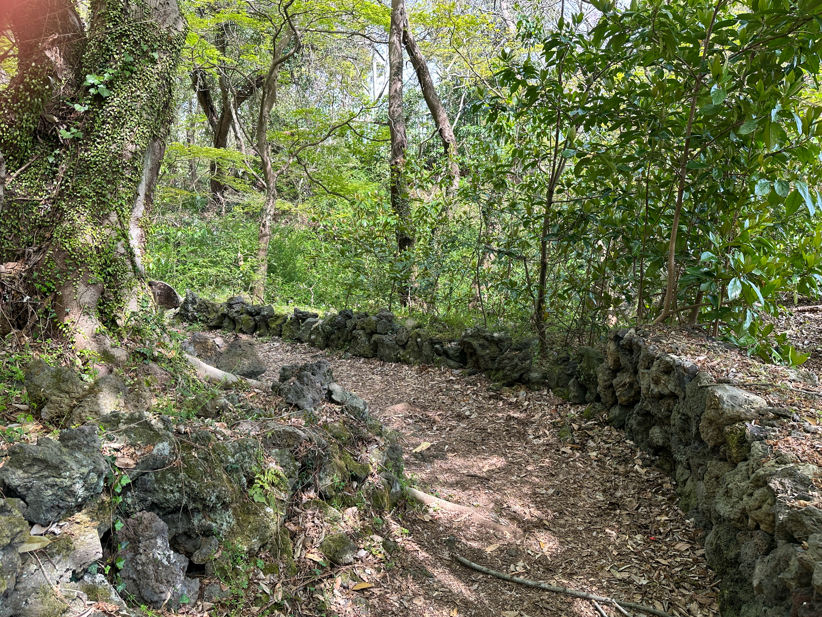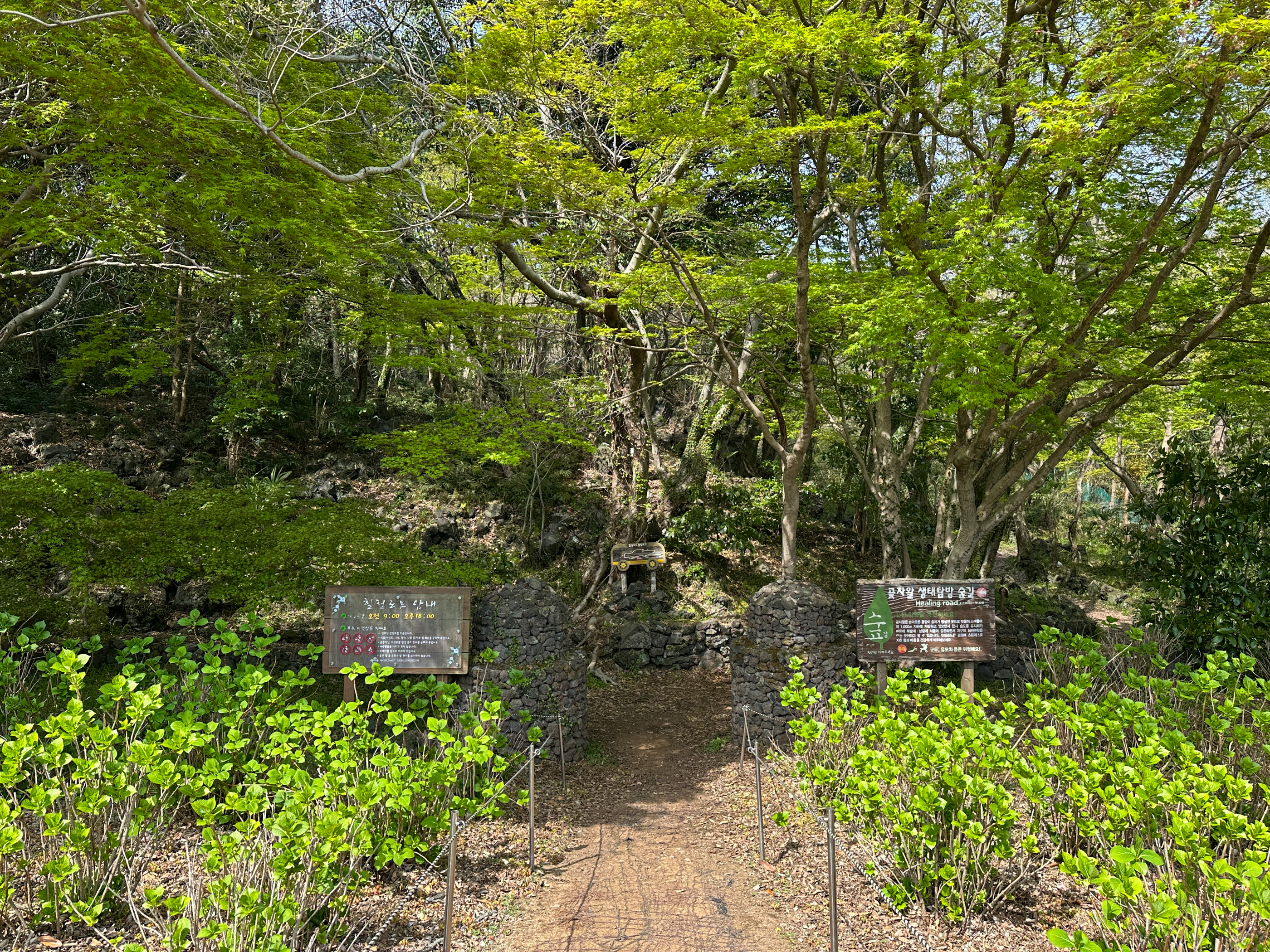 도로 경계를 용암석으로 한 숲길은 아이들도 걷기 좋게 조성하였다. 벌써 뱀을 본 관광객도 있었다.
