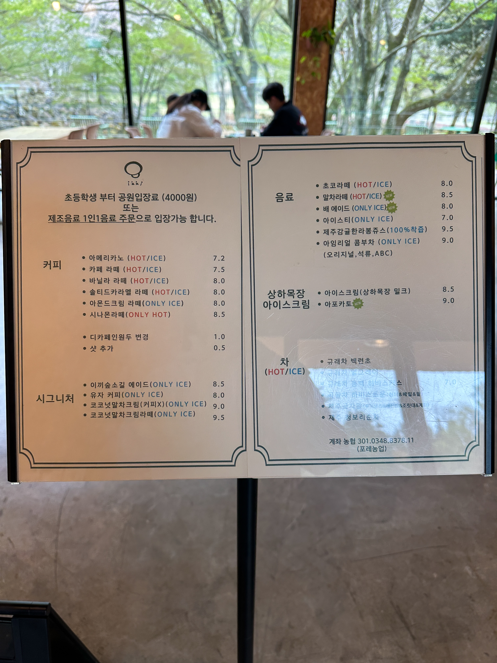 카페 뒷편으로는 숲길이 있는데 초등학생부터 공원입장료 4,000원 또는