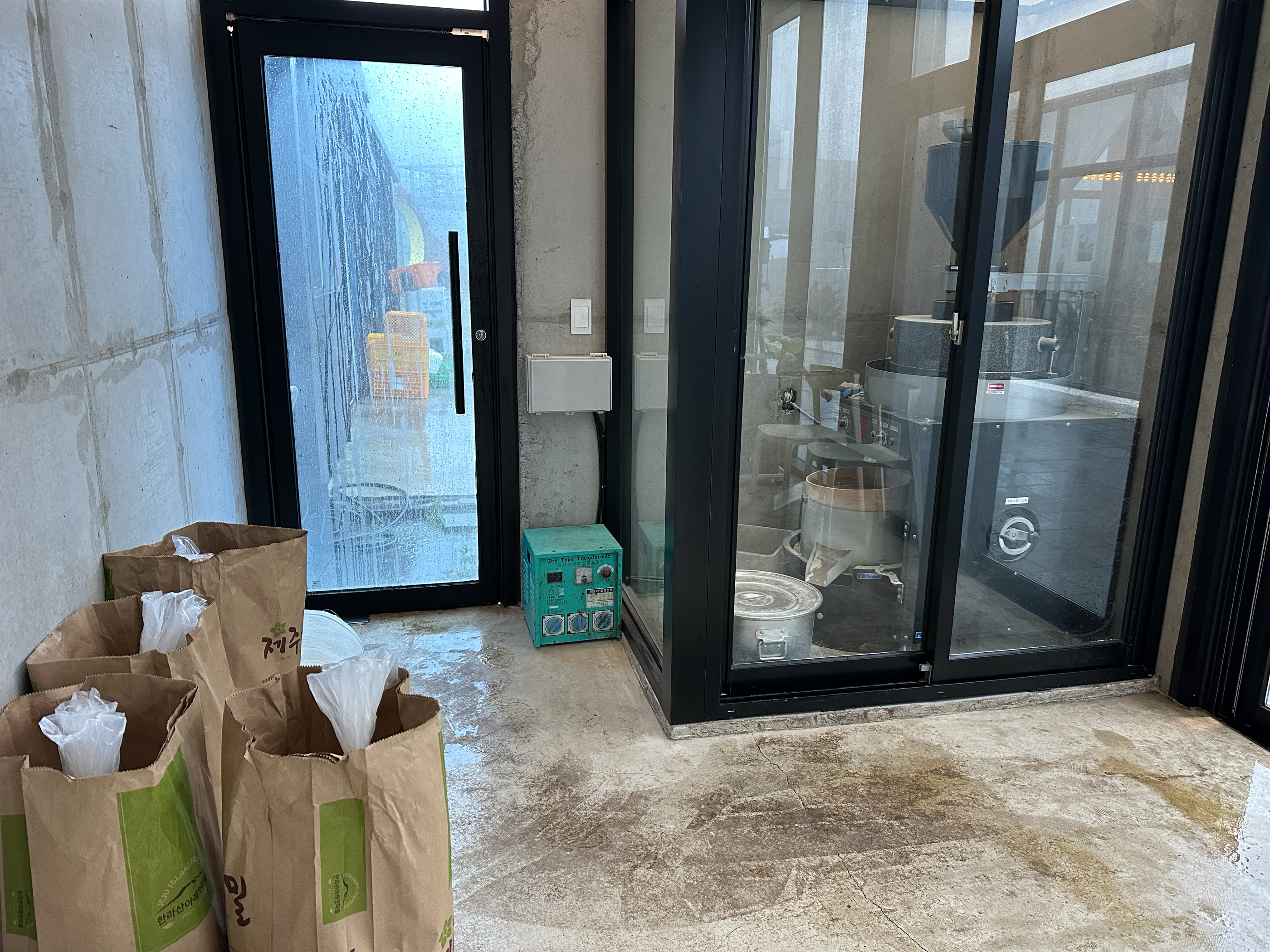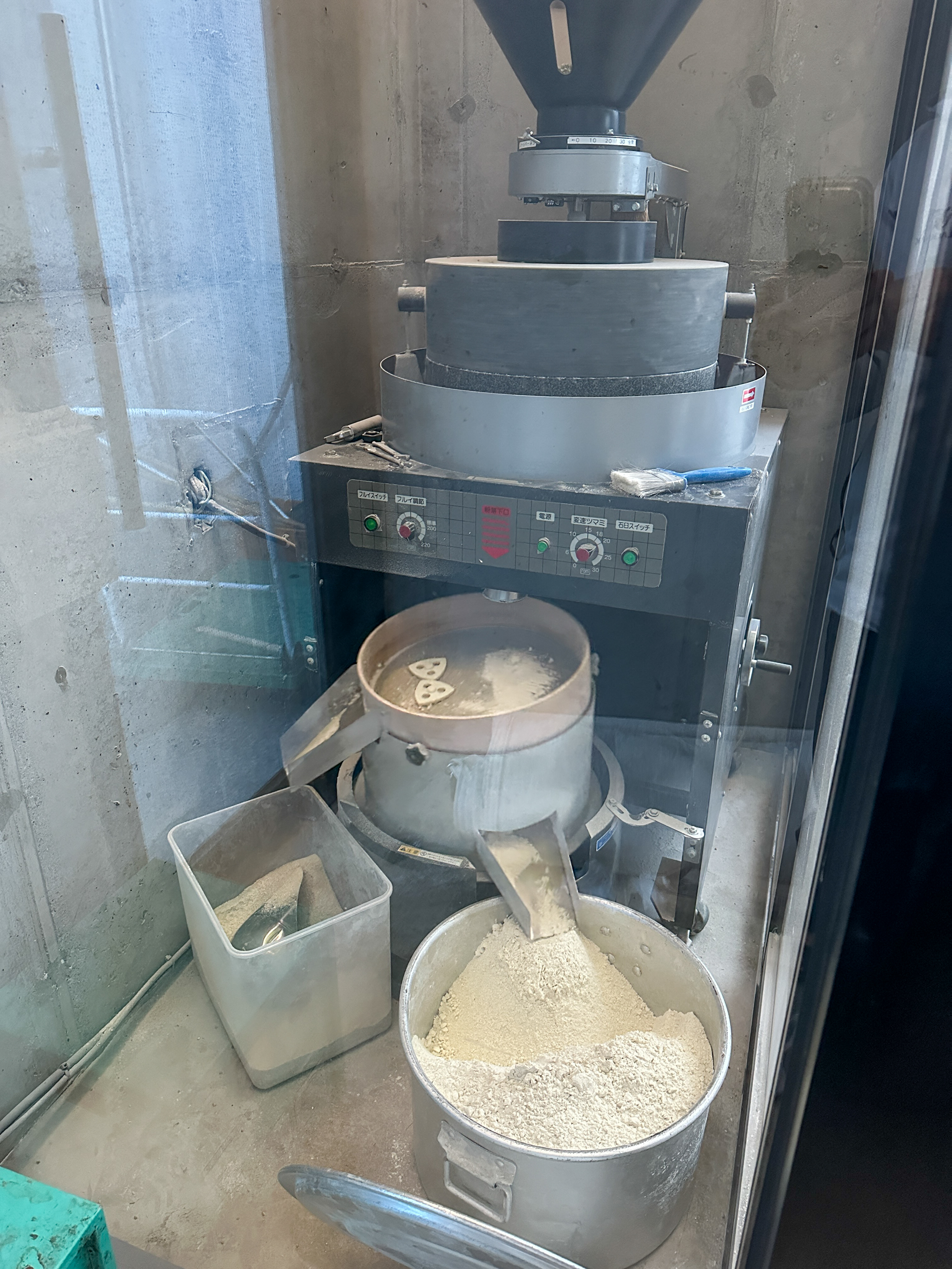 웨이팅을 하는 장소 구석에는 자동으로 메밀가루를 빻는 기계가 쉴새없이 돌아가고 있었다.