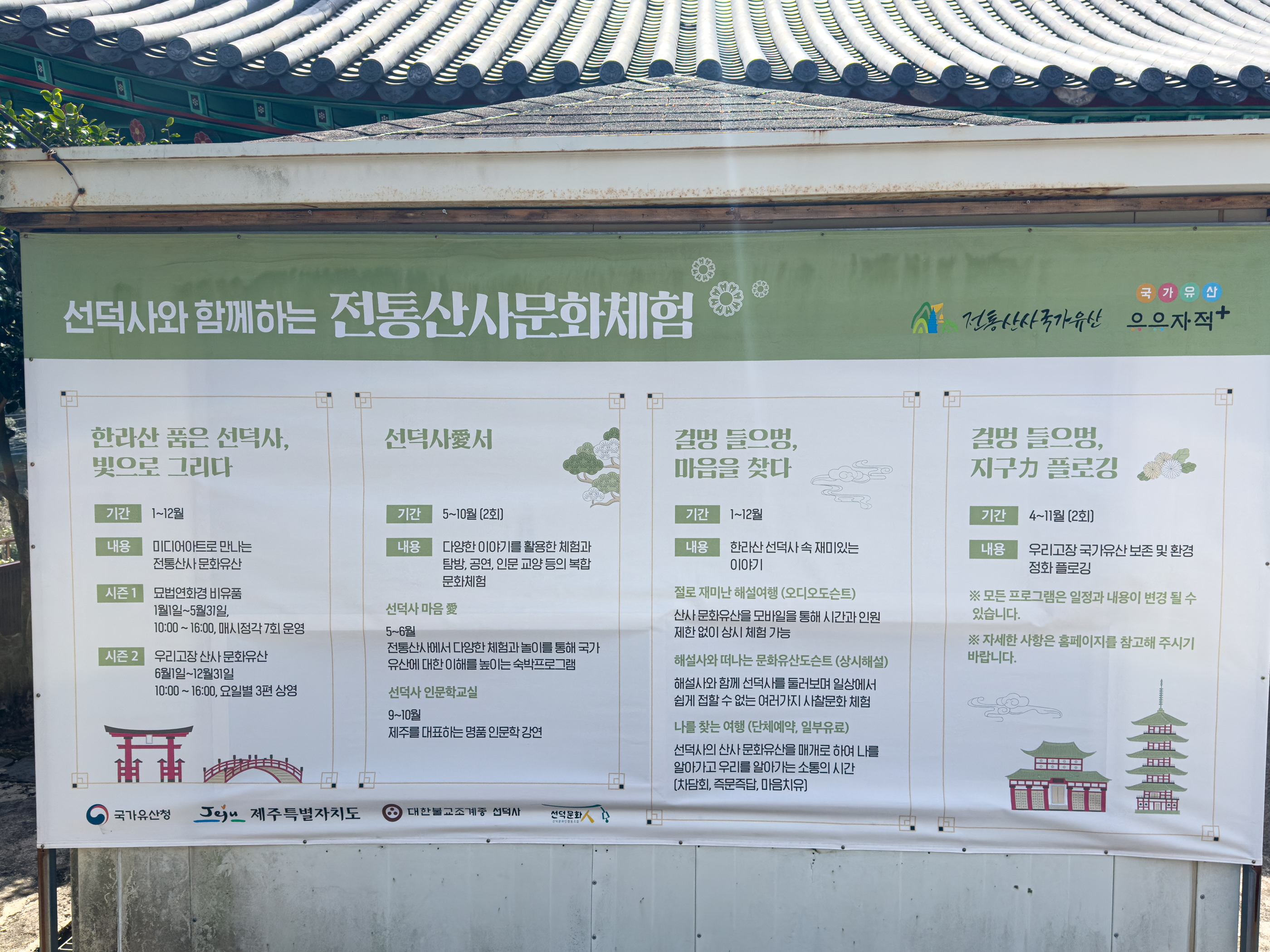 이 곳에서는 '한라산 품은 선덕사 빛으로 그리다'는 미디어아트로 만나는 전통산사 문화유산 프로그램을 운영한다.