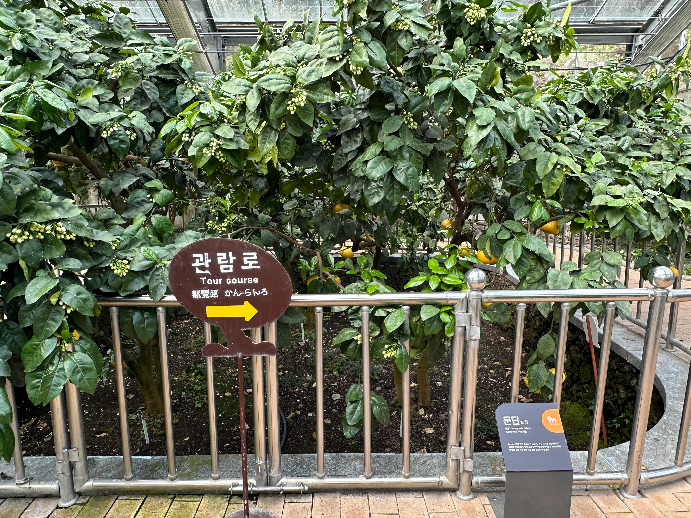 세계감귤전시관인데 실내의 꽃향기가 좋다. - 귤꽃 향기를 맡아본 적이 없어서 귤꽃 향기인지 확신은 못하지만-