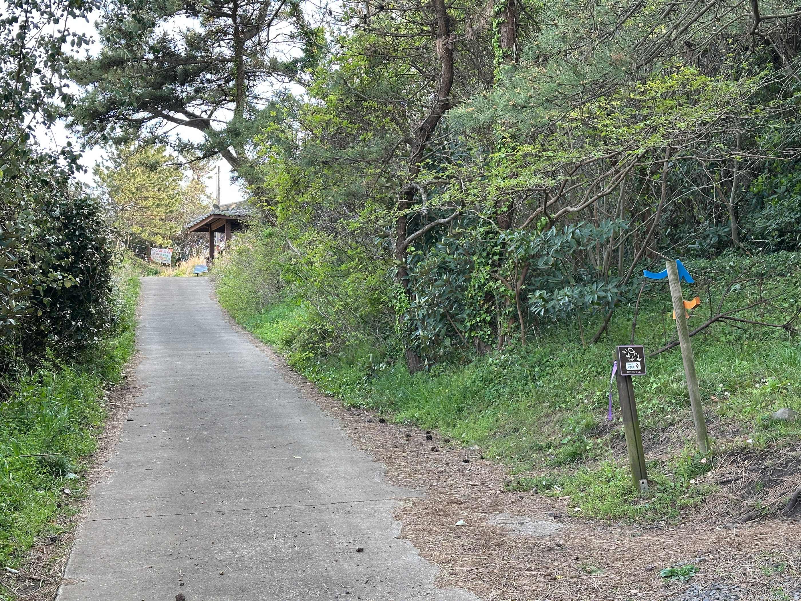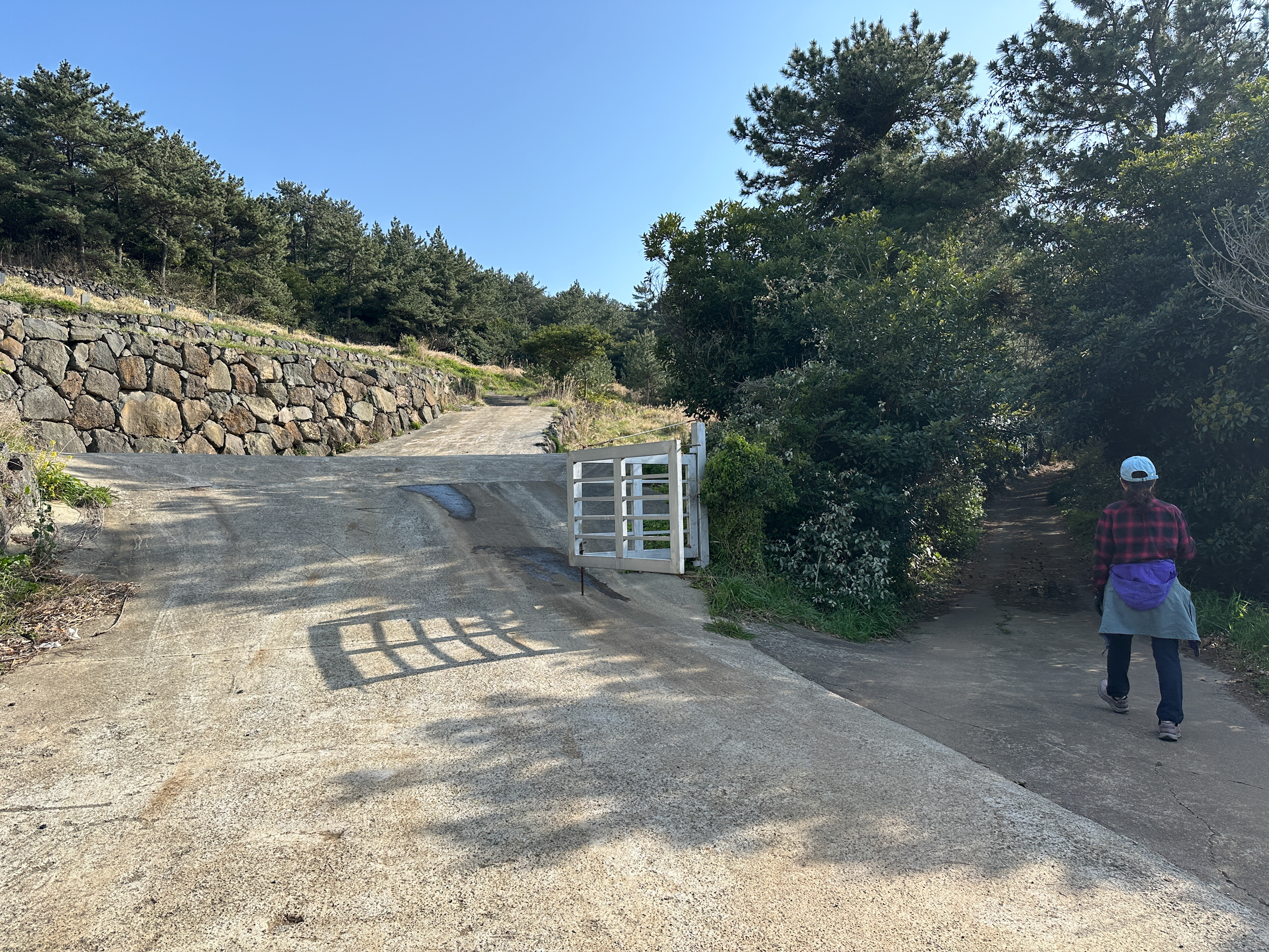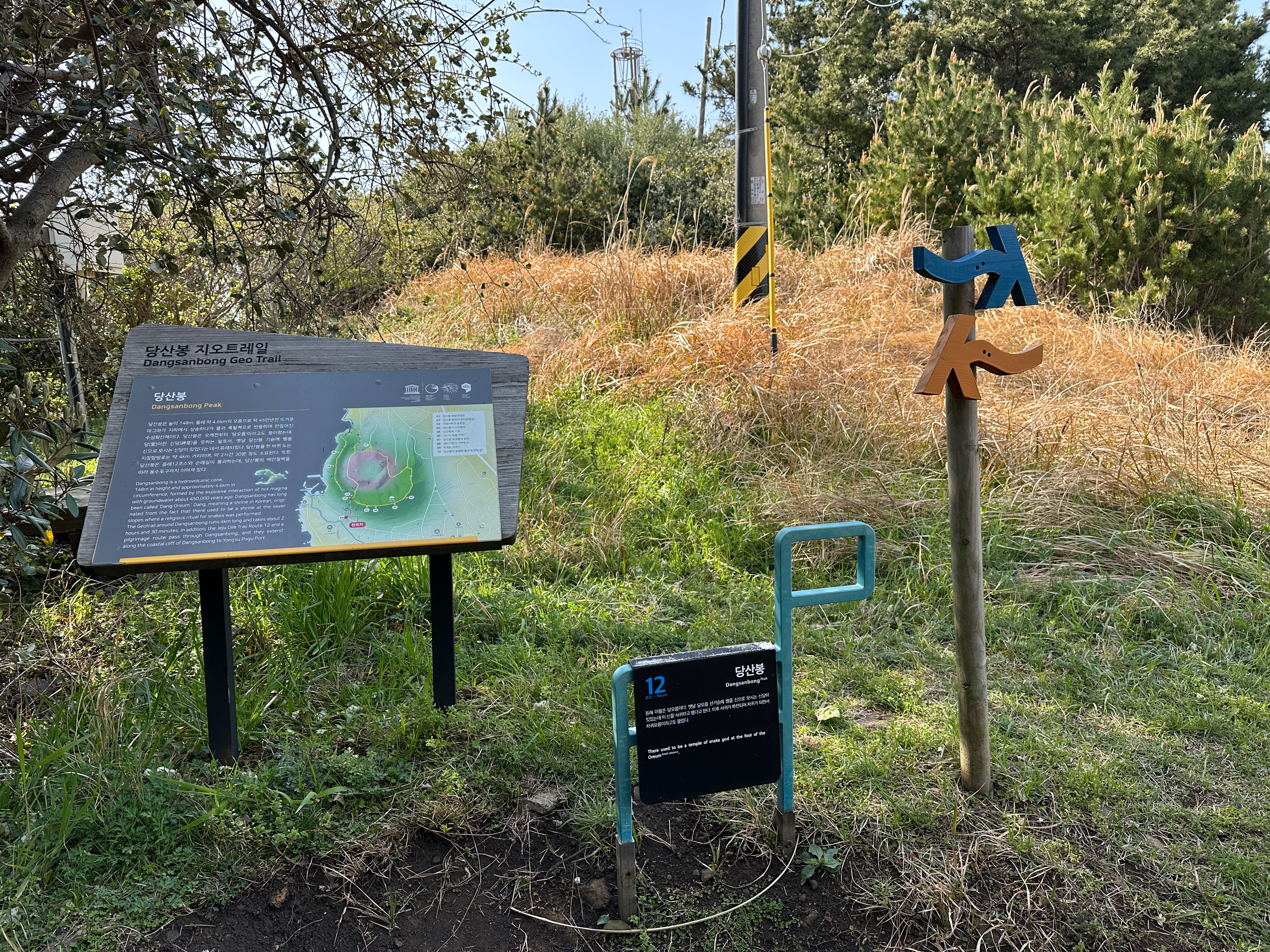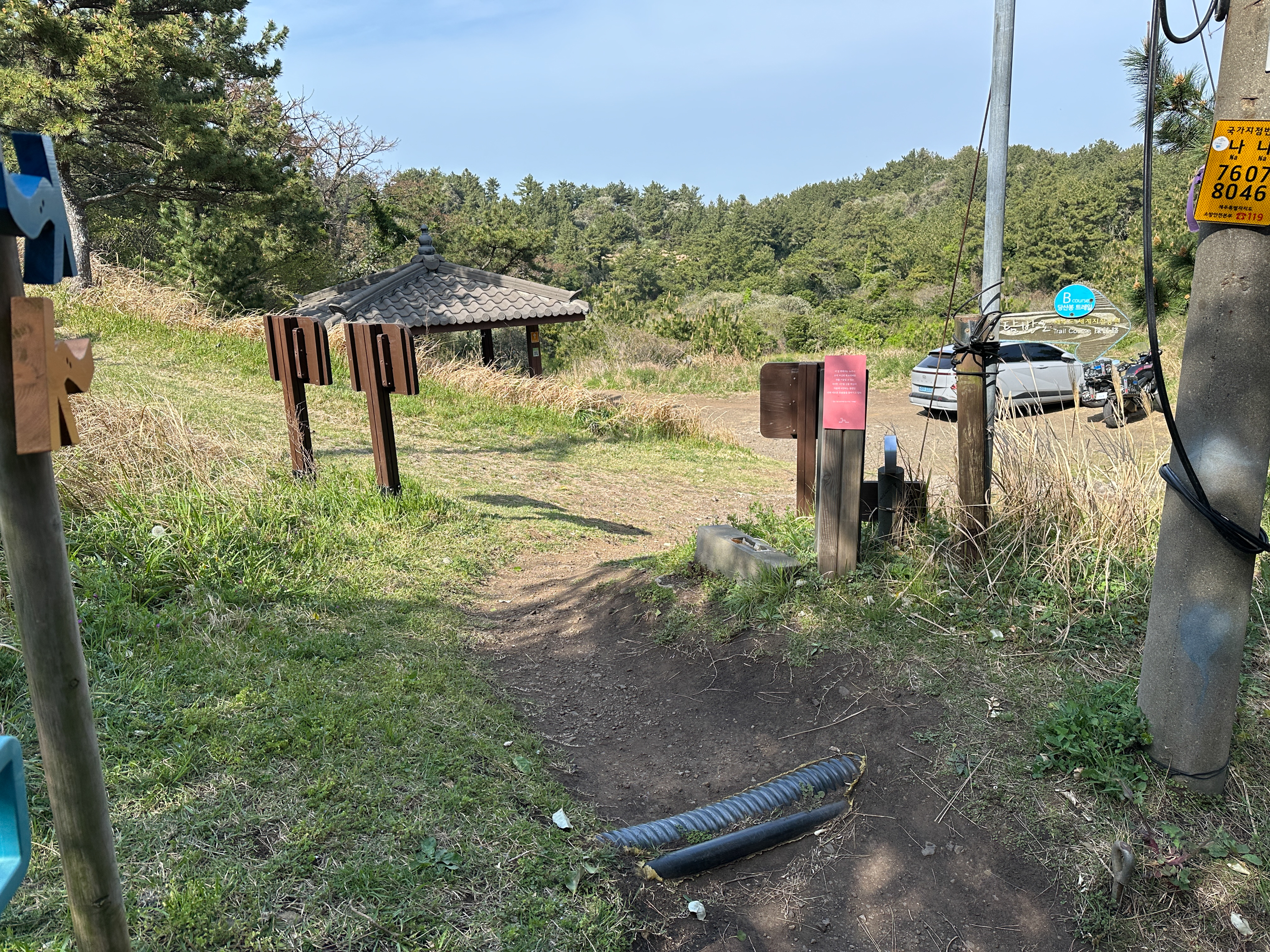 올레길은 정자쪽으로 내려가고 정상으로 가는 지질탐방로는 우측편이다. 탐방로는 사유지라는 안내판이 세워져 있다.