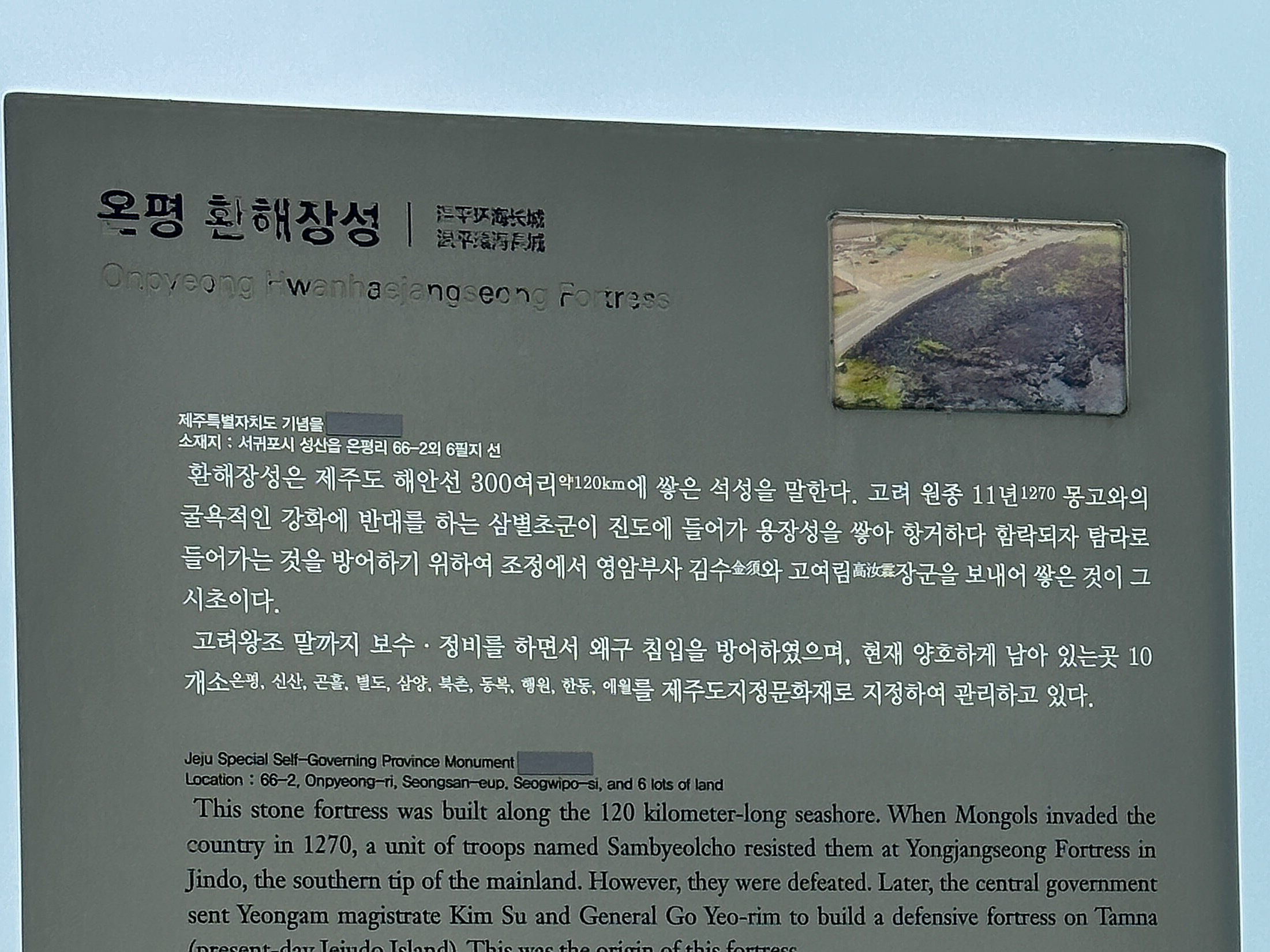 마을을 벗어나 해안도로로 나오자 '온평 환해장성'과 마주한다.