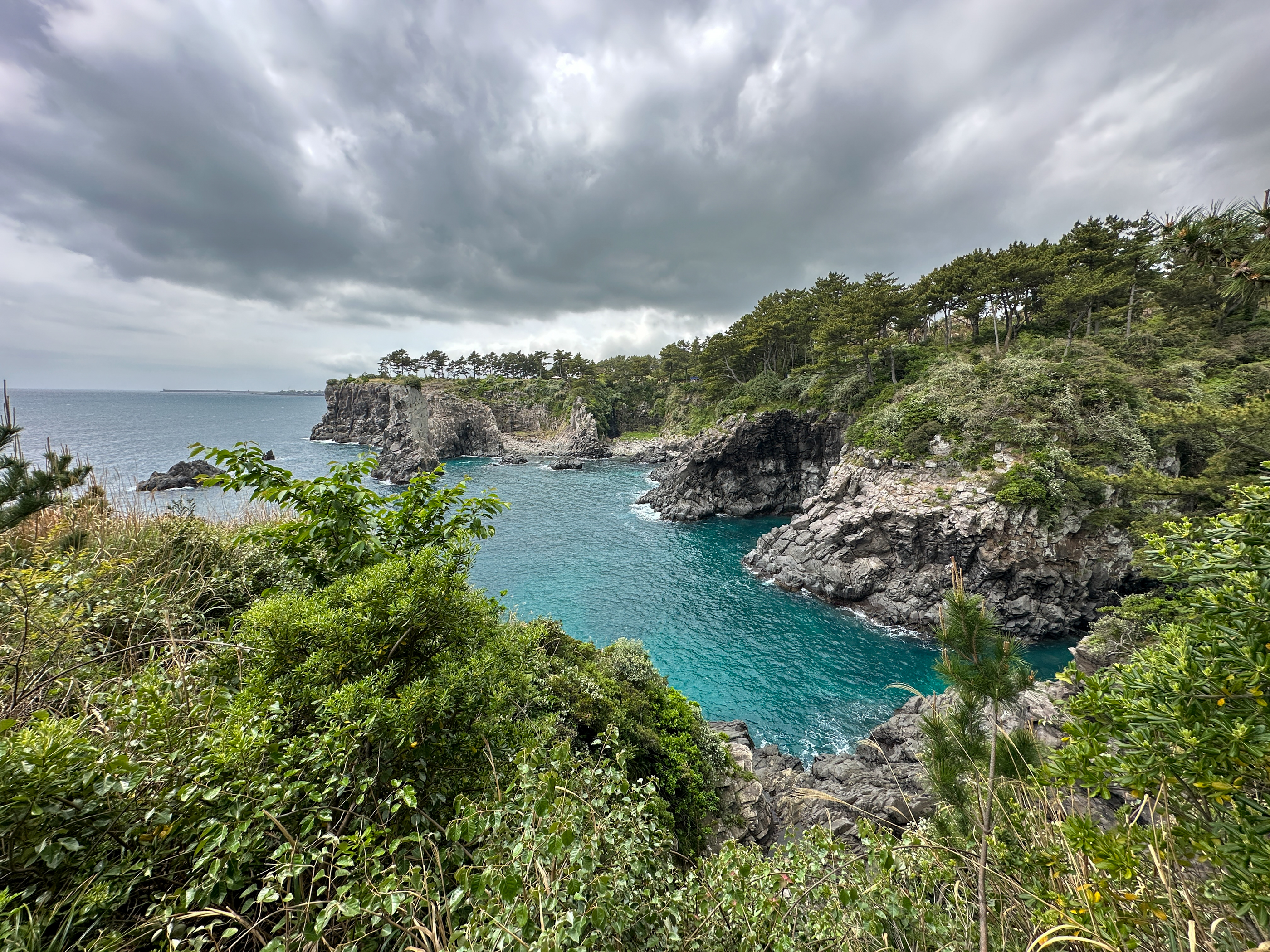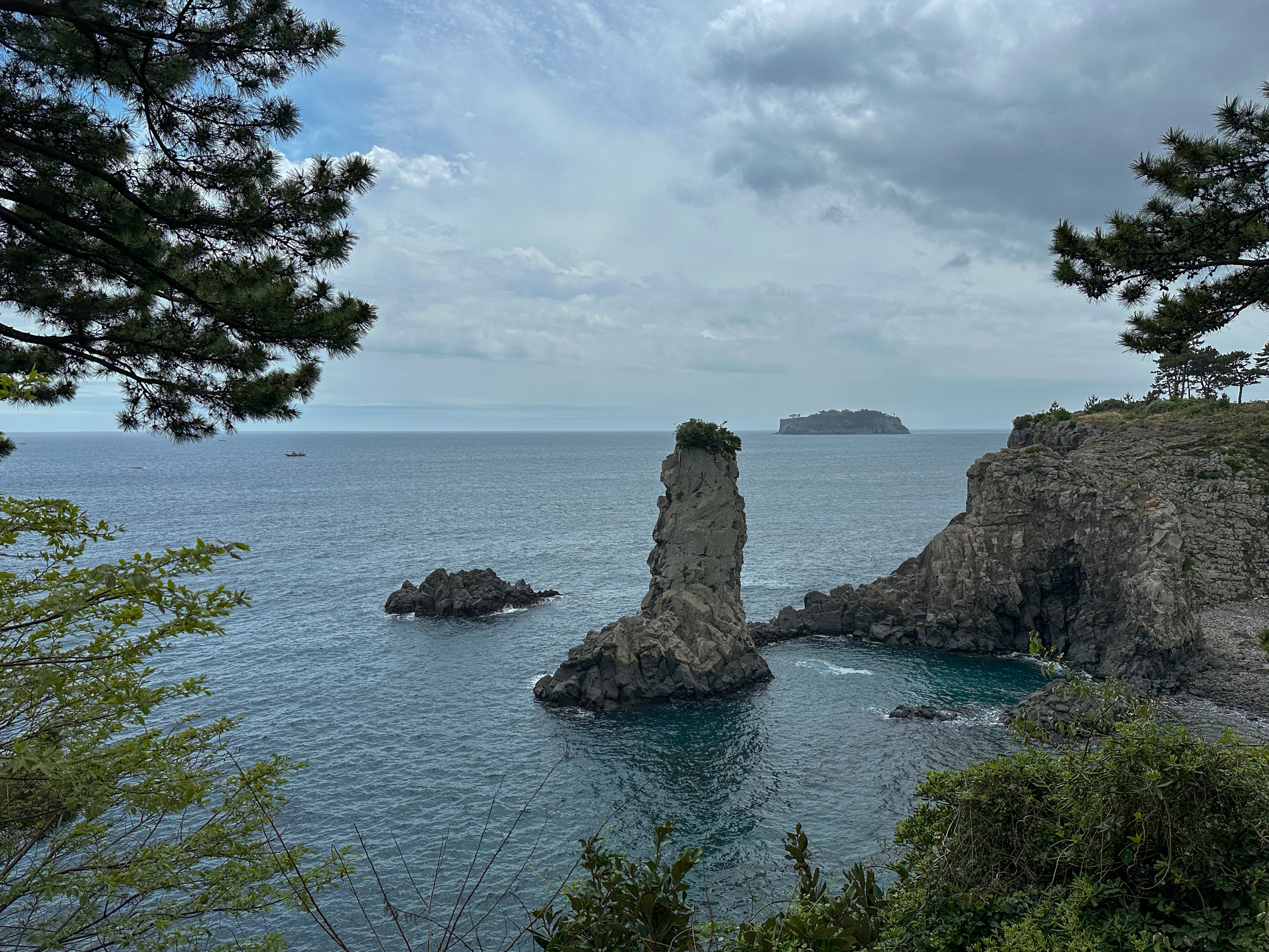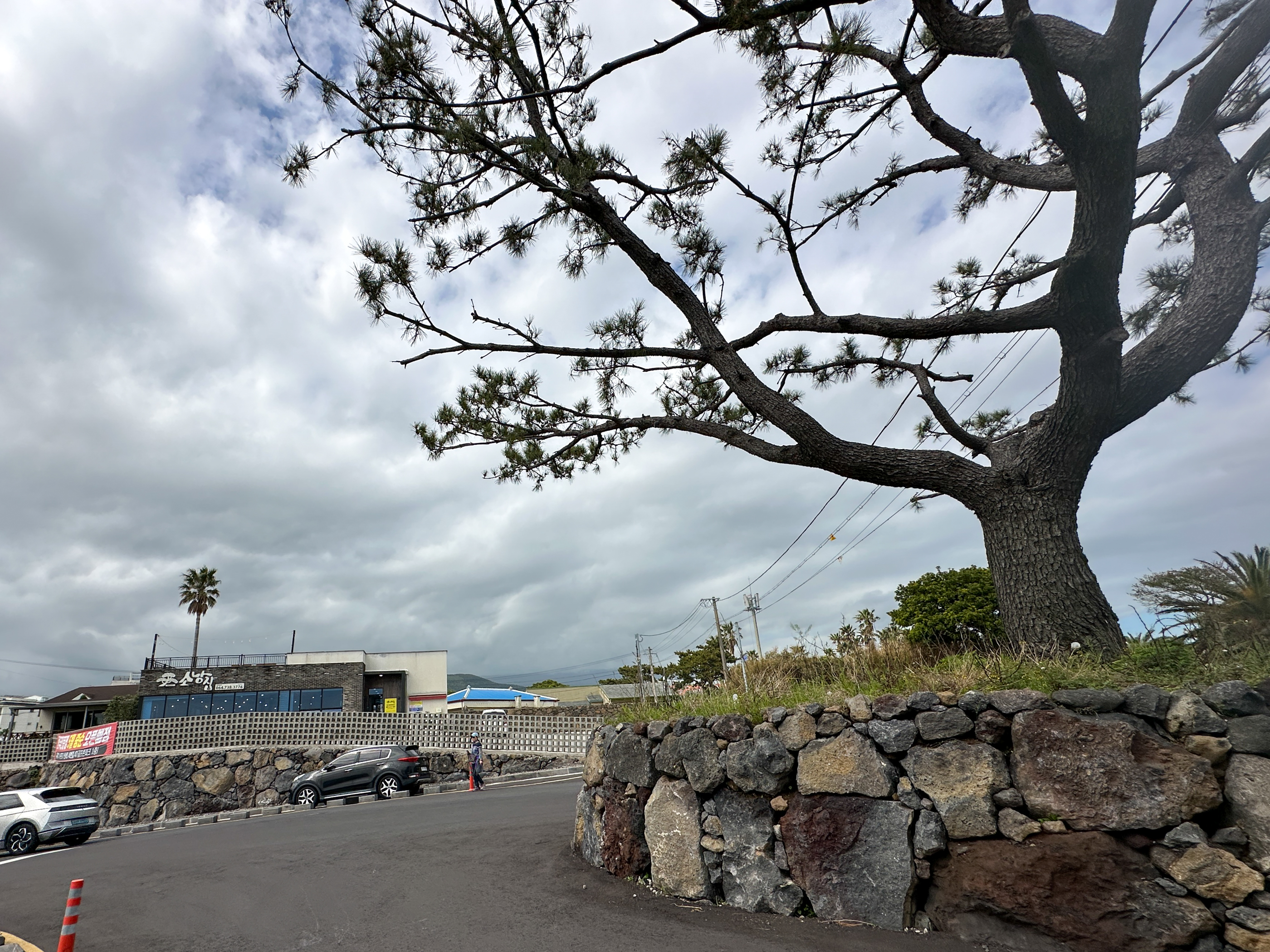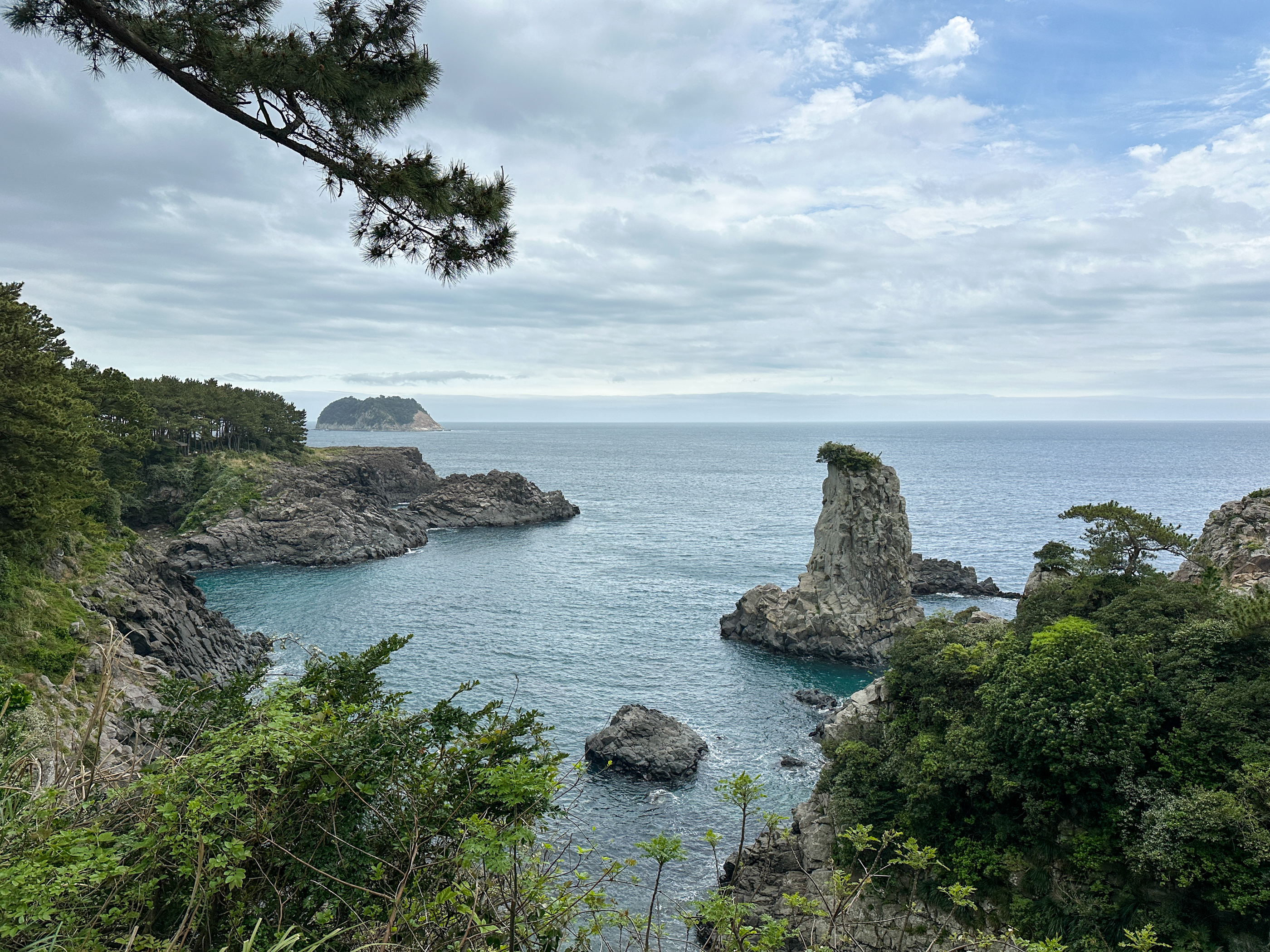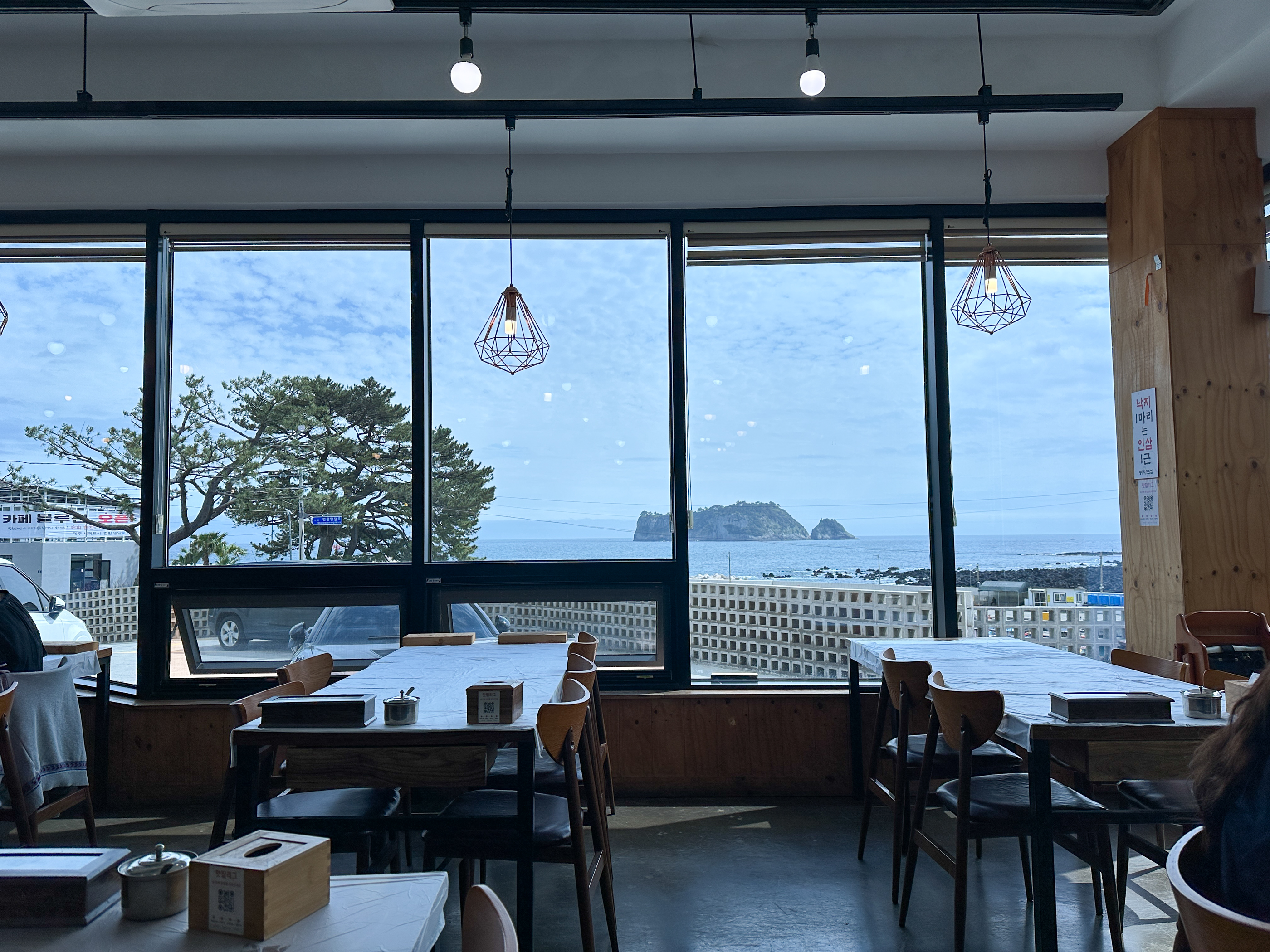 멋진 소나무가 앞에 있어 식당 이름이 '소낭집'인가 보다. 시당 창가로는 범섬이 보였다.