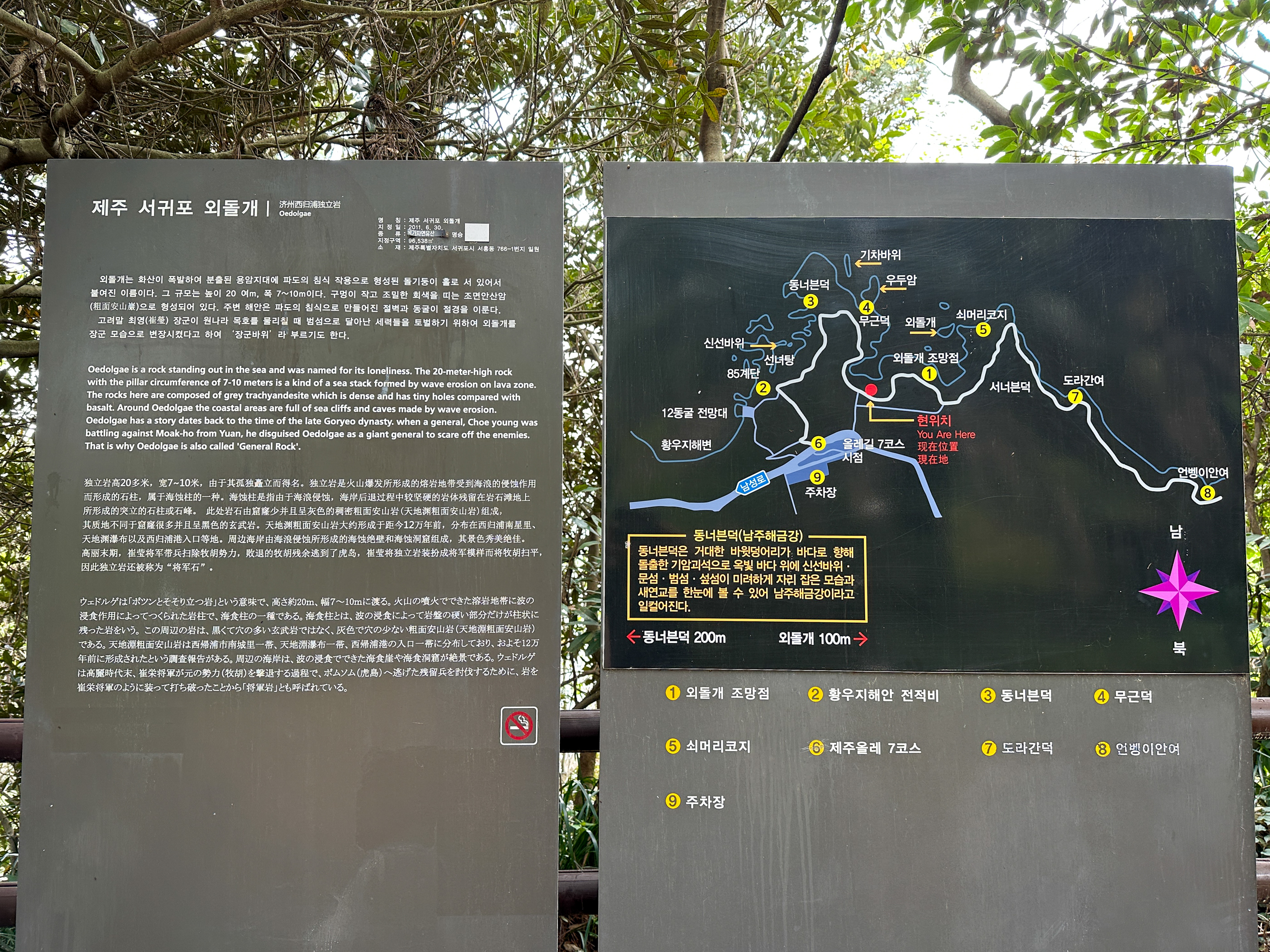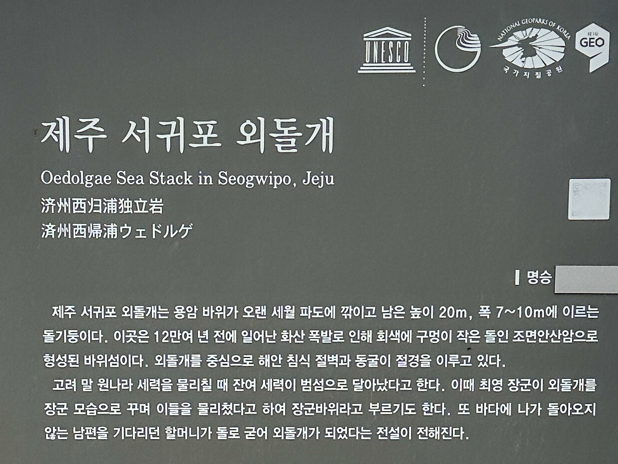 '외돌개'안내판이 보인다.
