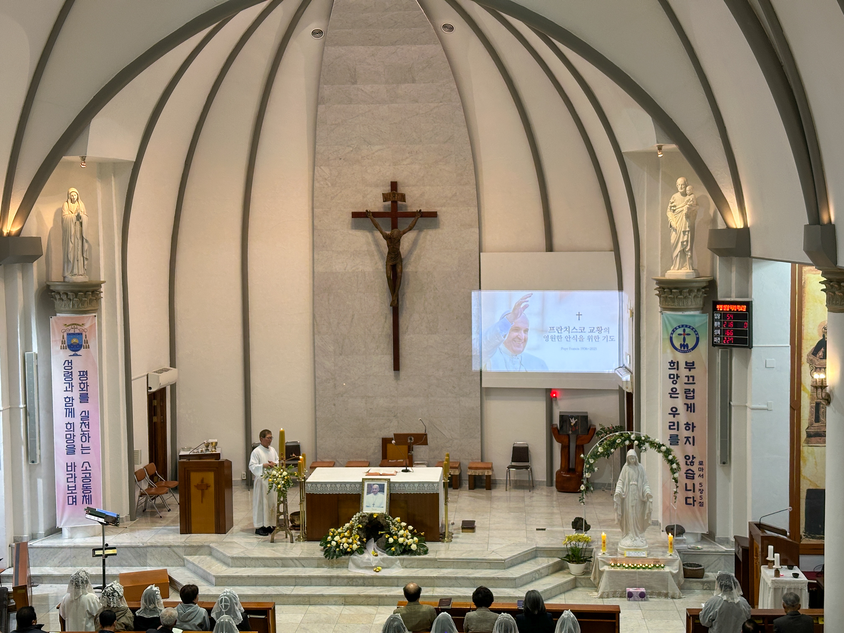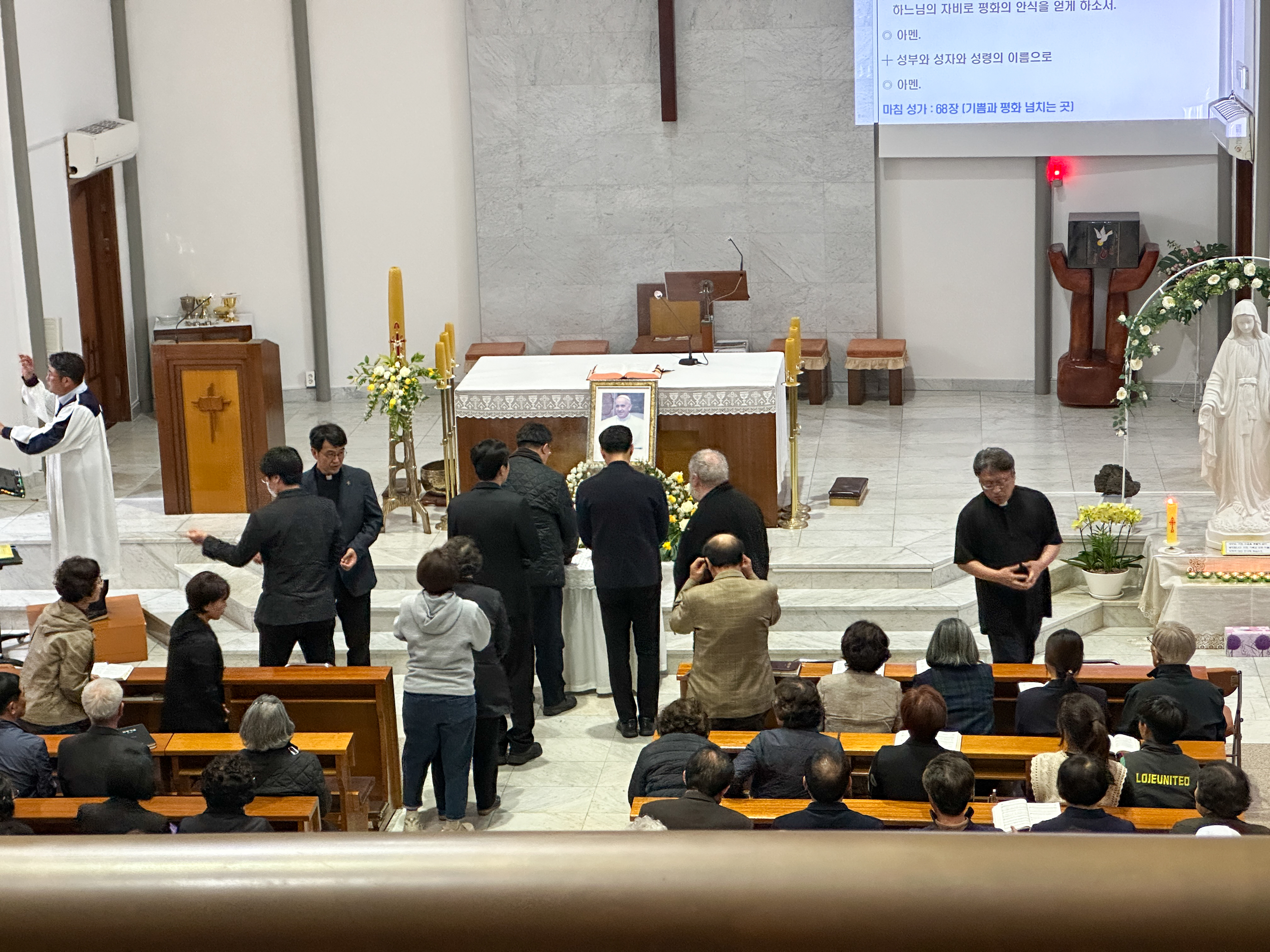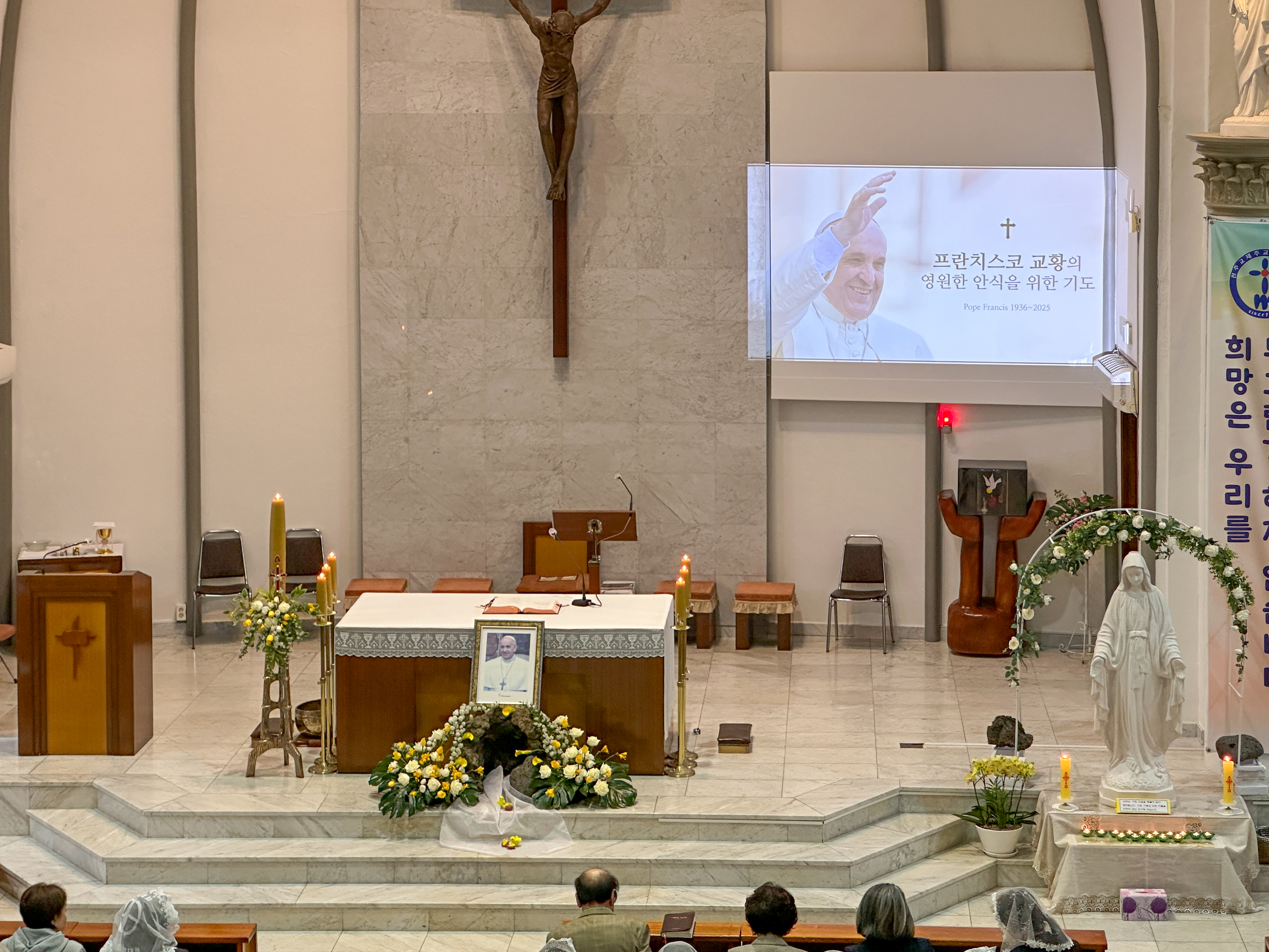 오늘 저녁 7시30분 제주교구는 지구별로 프란치스코 교황님 추모 미사를 한다.