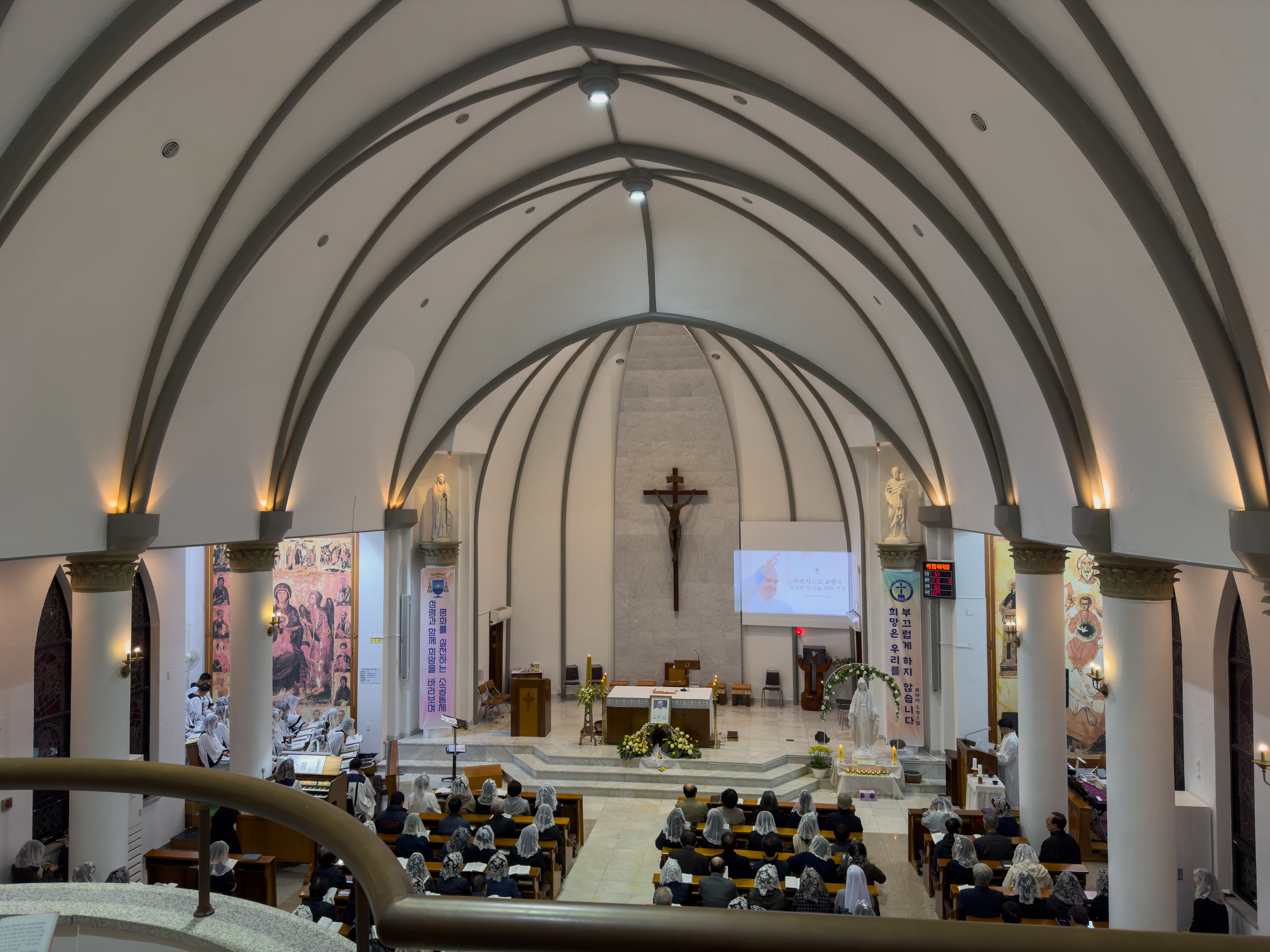 1층에는 자리가 없어 2층에서 미사를 드렸는데