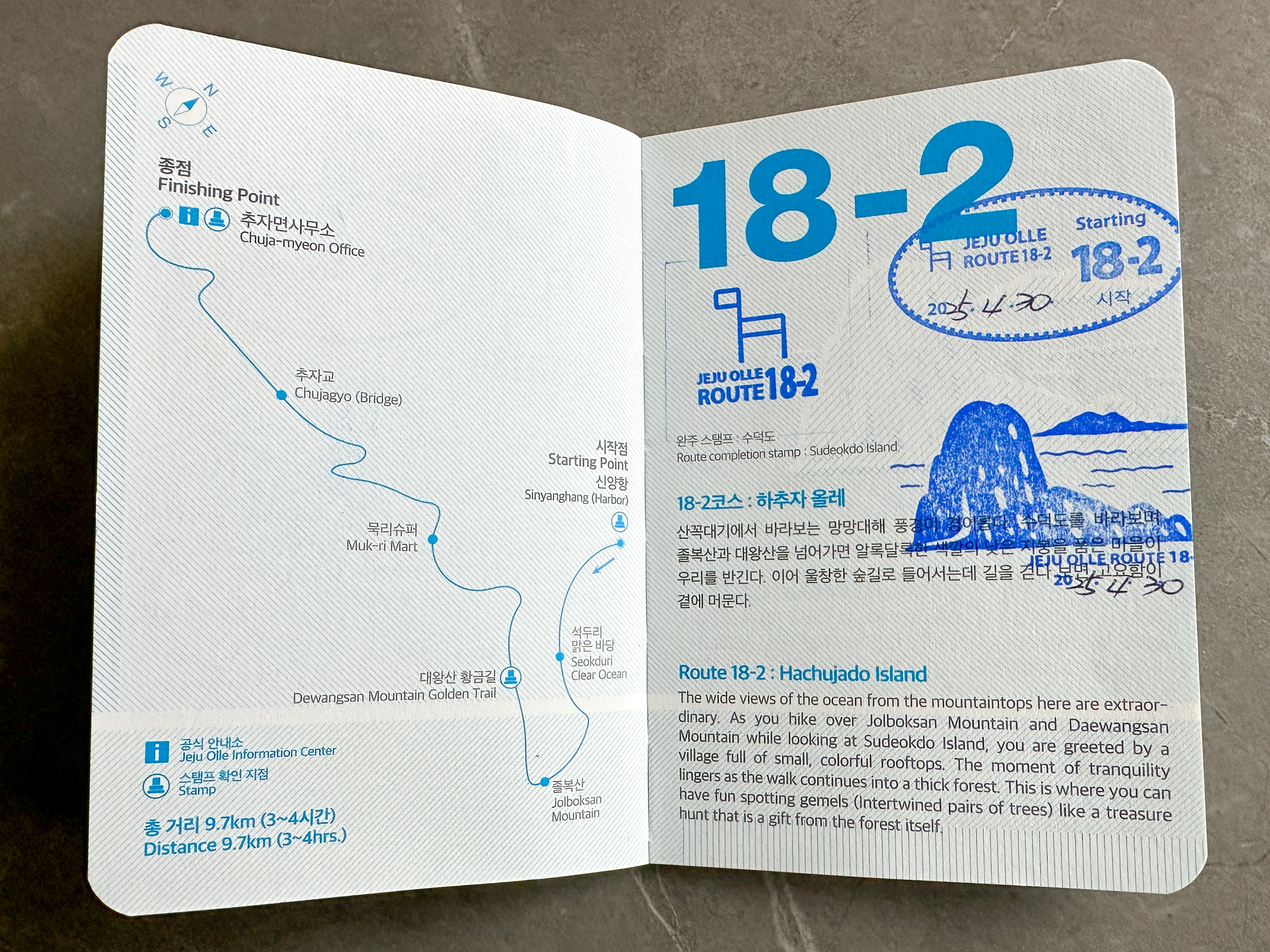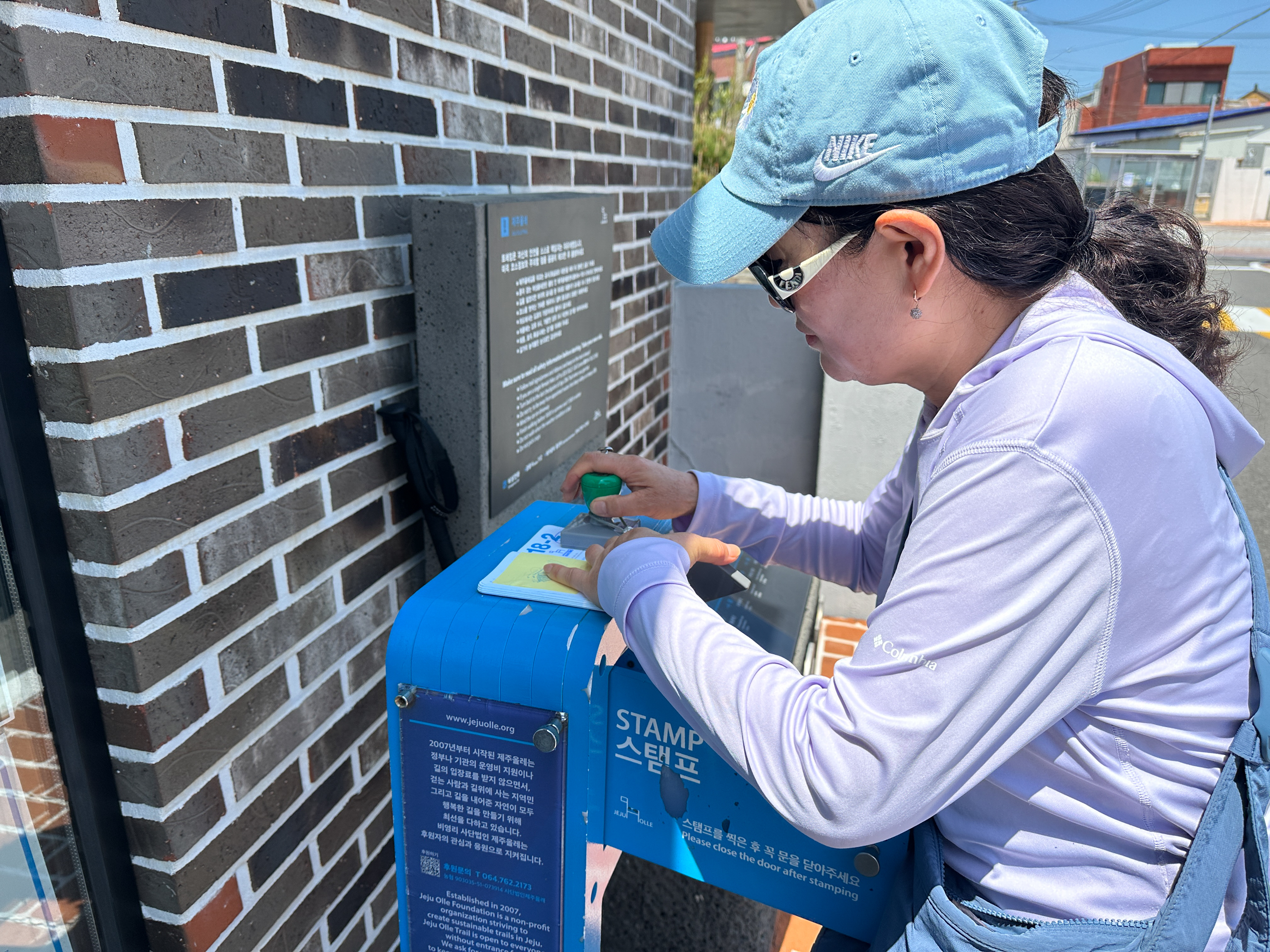 '마르타'가 올레18-2코스 하추지올레 종점 스템프를 찍었다.27개코스를 모두 완주하는 마지막 스템프로 더 의미가 컸다.