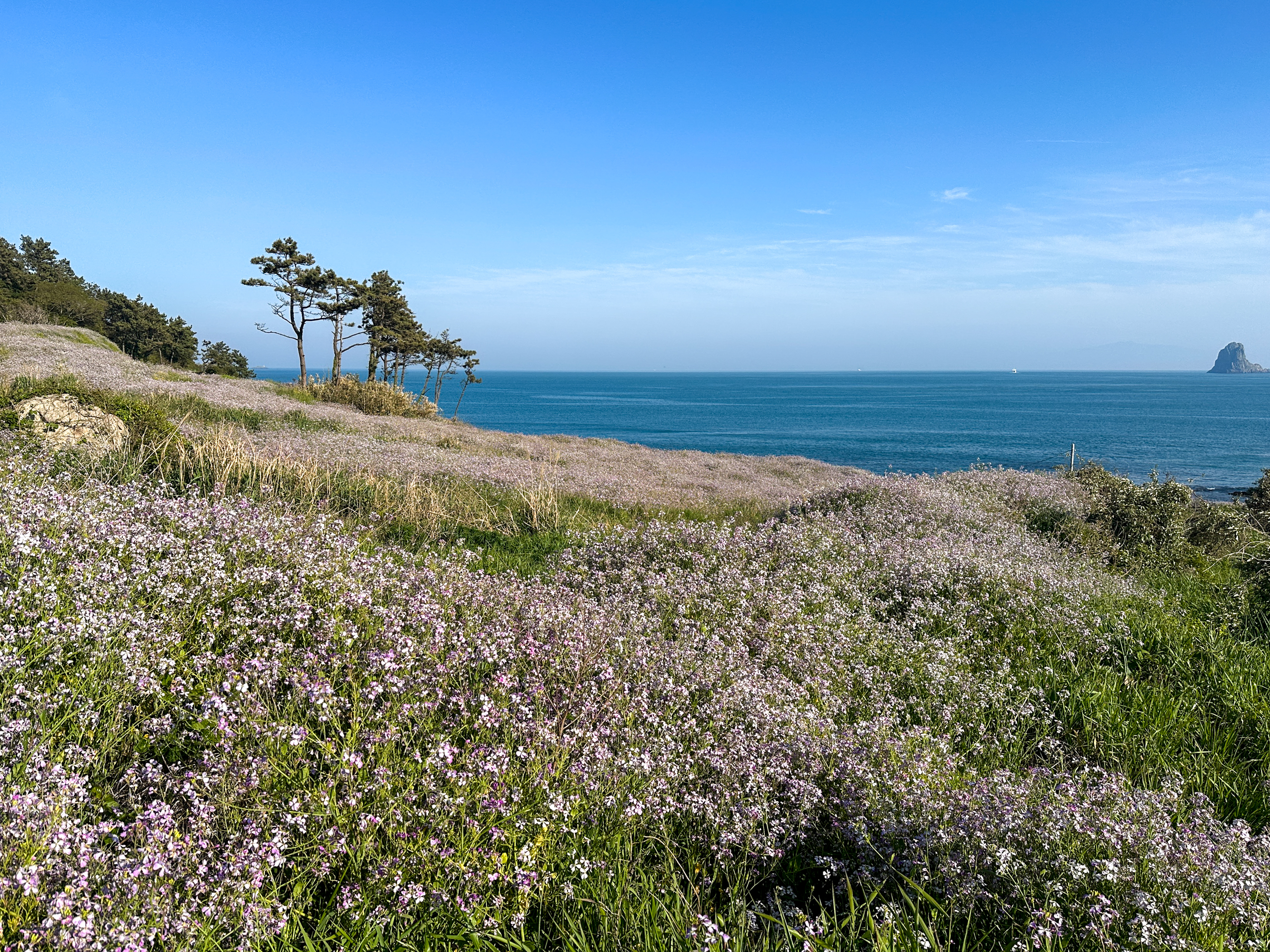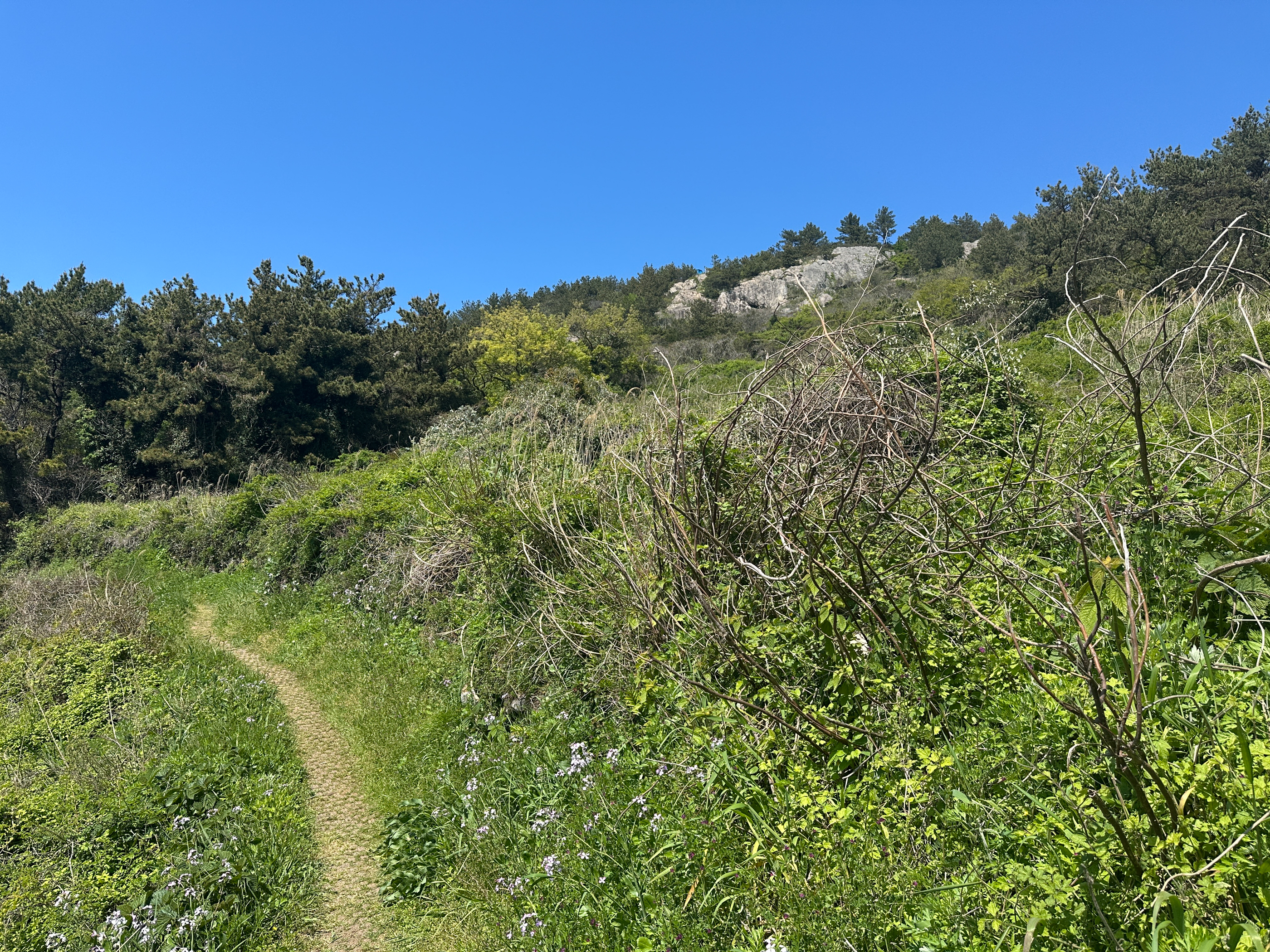 '모진이삼거리'쪽으로 내려가는 길은 갯무꽃으로 화사했다.