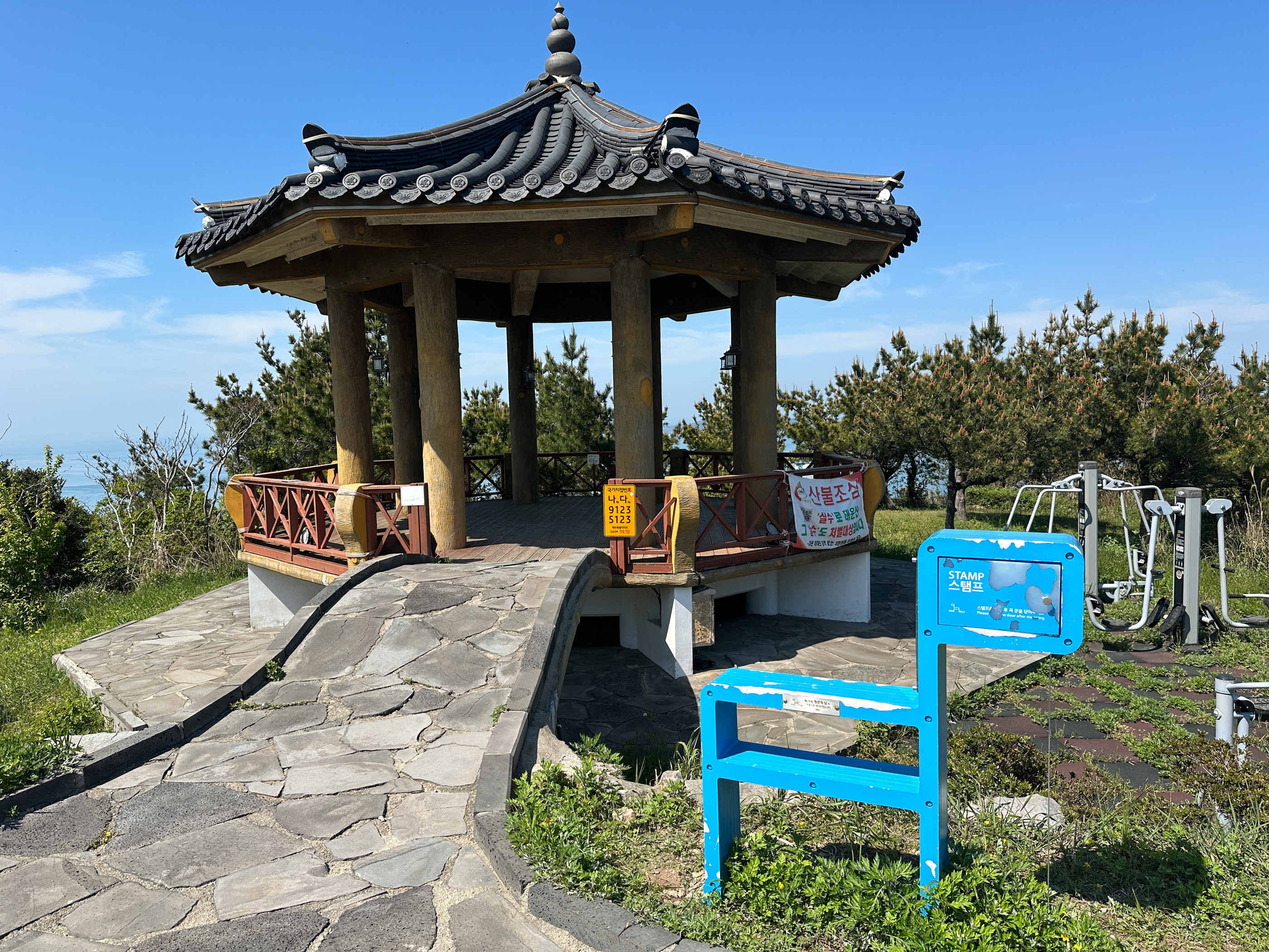 돈대산 정상 (164m)에 도착했다. 중간스템프가 있는 곳이다.
