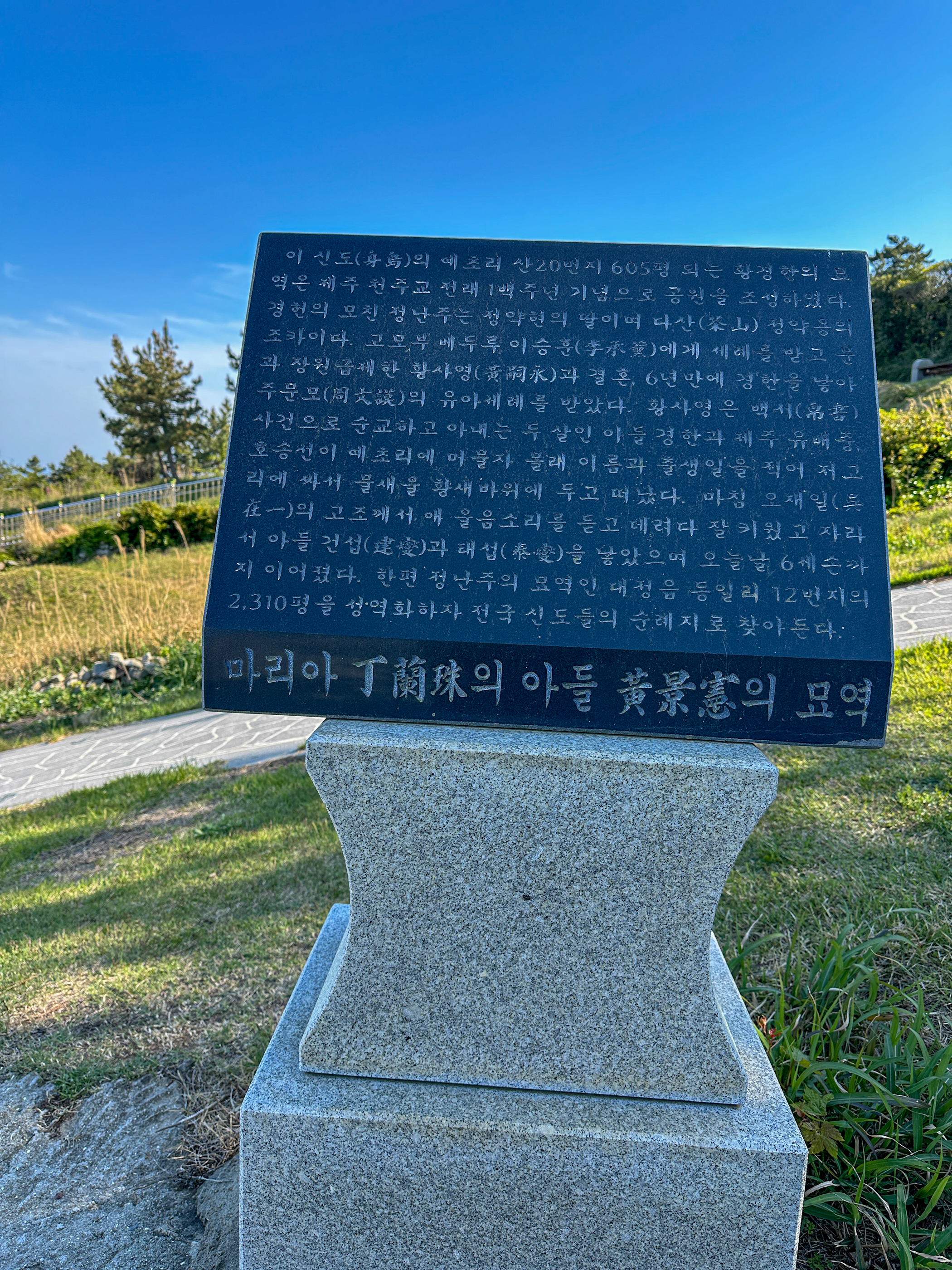 천주교 성지인 '황경한'의 묘역이다.