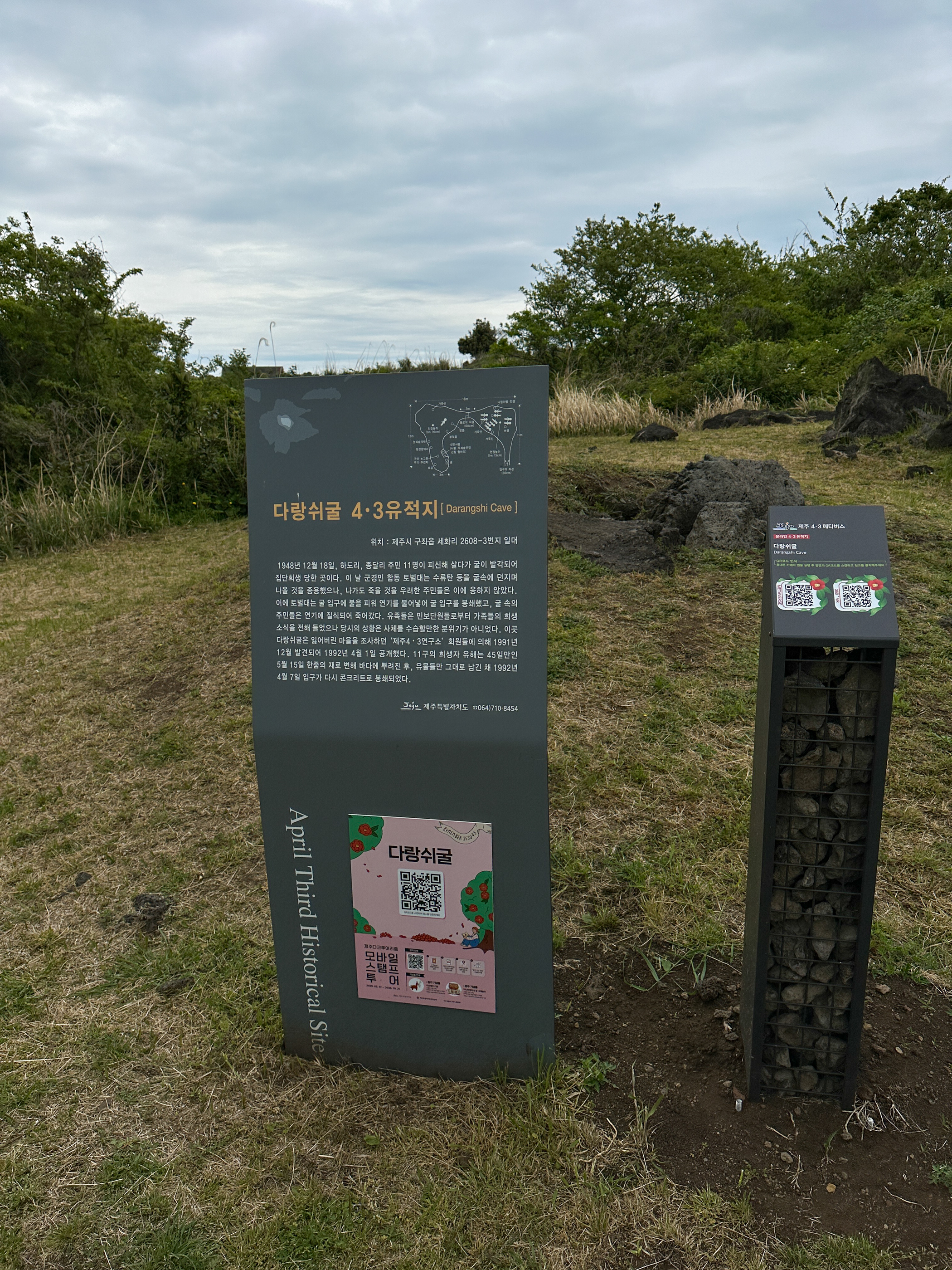 '다랑쉬굴 4.3유적지'는 1948년12월18일, 하도리, 종달리 주민 11명이 피신해 살다가 굴이 발각되어 집단 희생당한 곳이다.