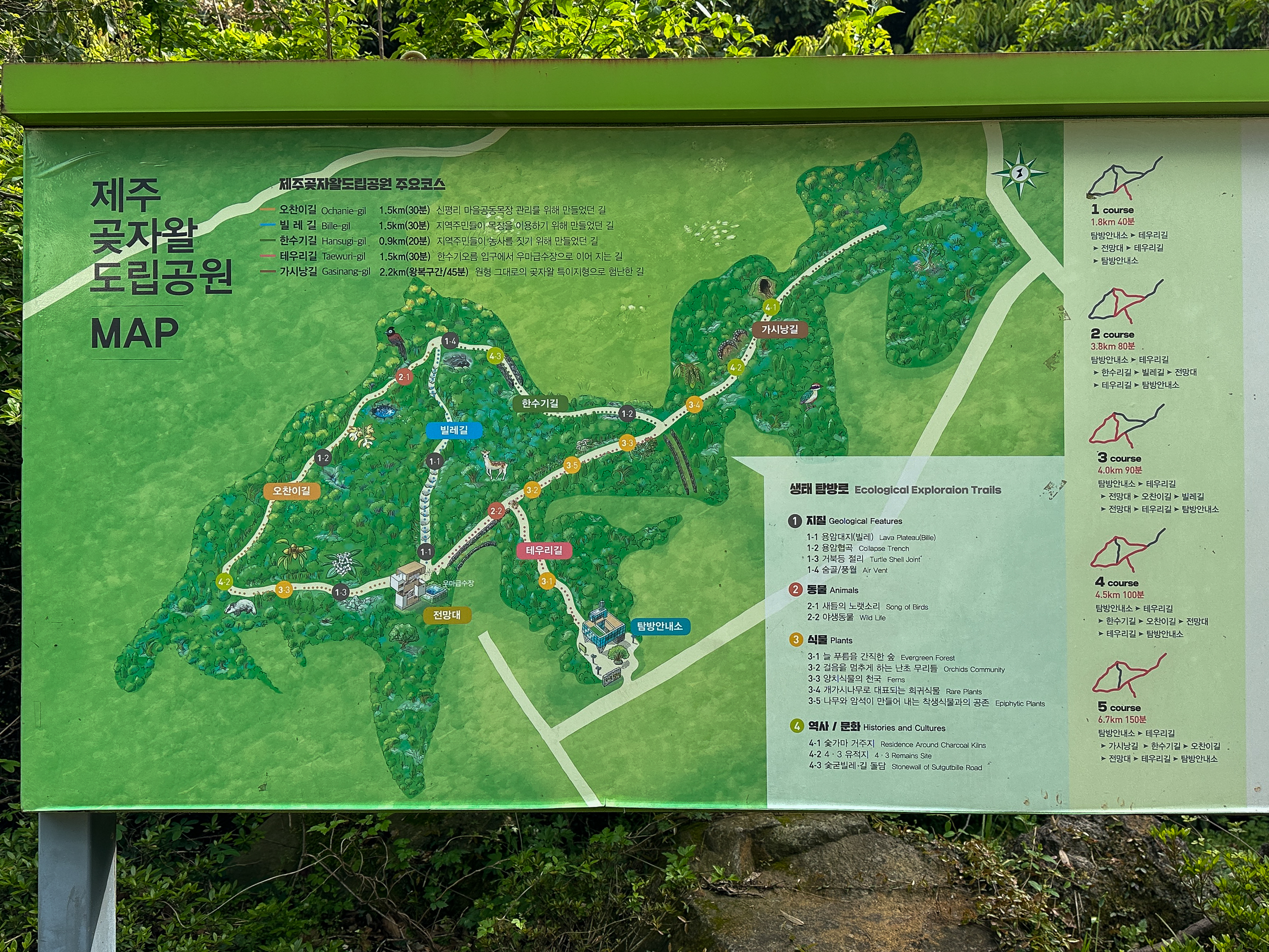 오후에는 집에서 가까워 더 자주 찾는 '제주 곶자왈도립공원'에 가 2코스를 천천히 걸었다.