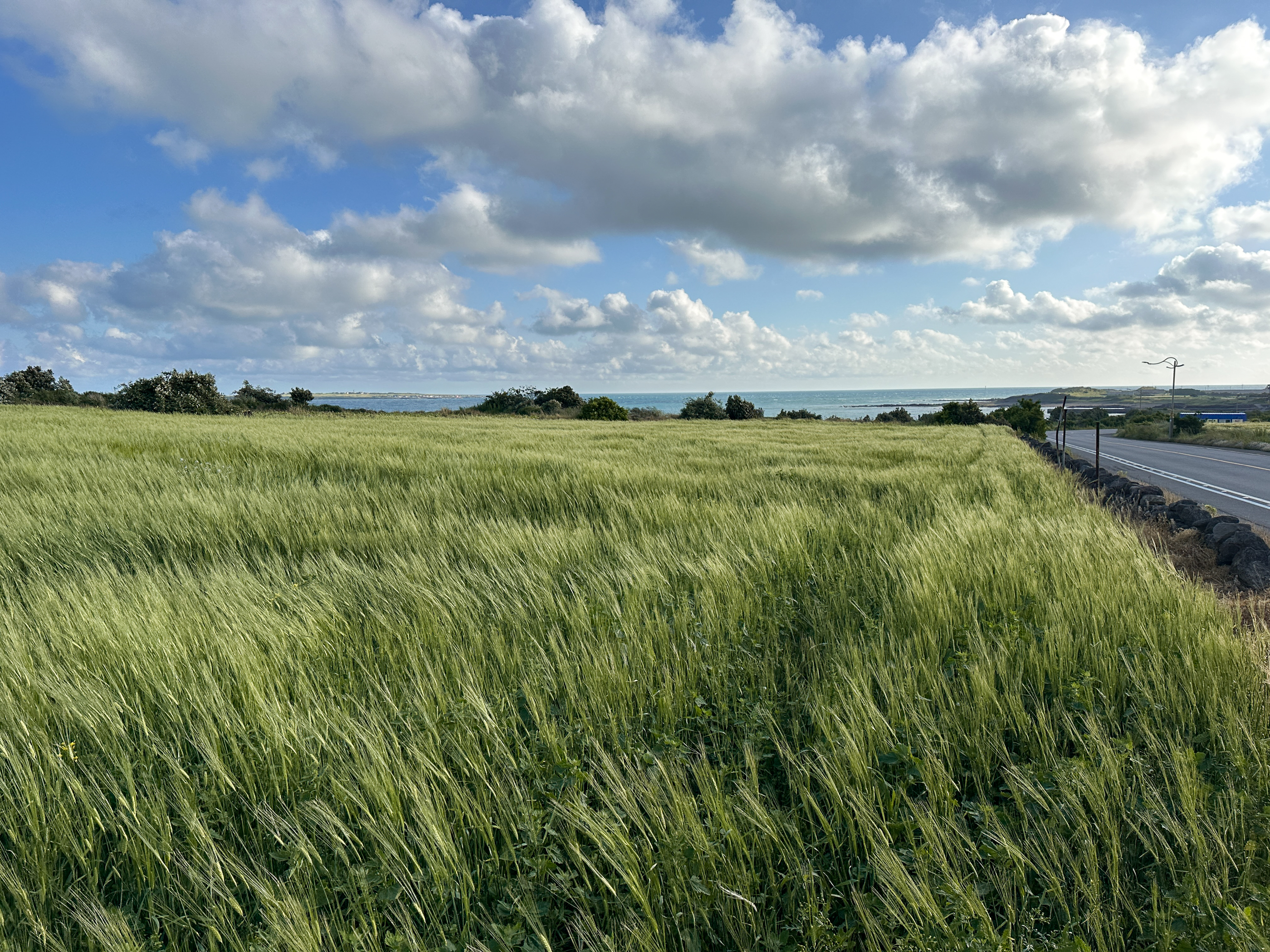 돌아오면서 청보리밭을 찍었다. 정면 중앙으로 가파도도 보인다.