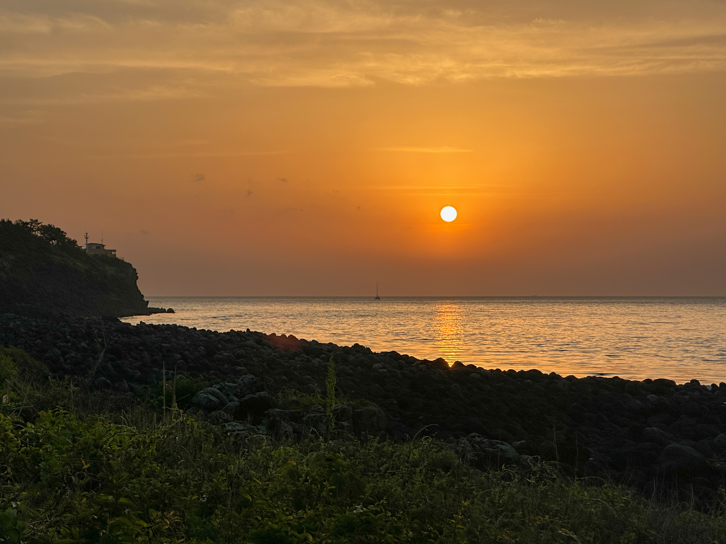 해가 수평선과 맞닿은 마지막 오메가는 운무때문에 볼 수 없었지만