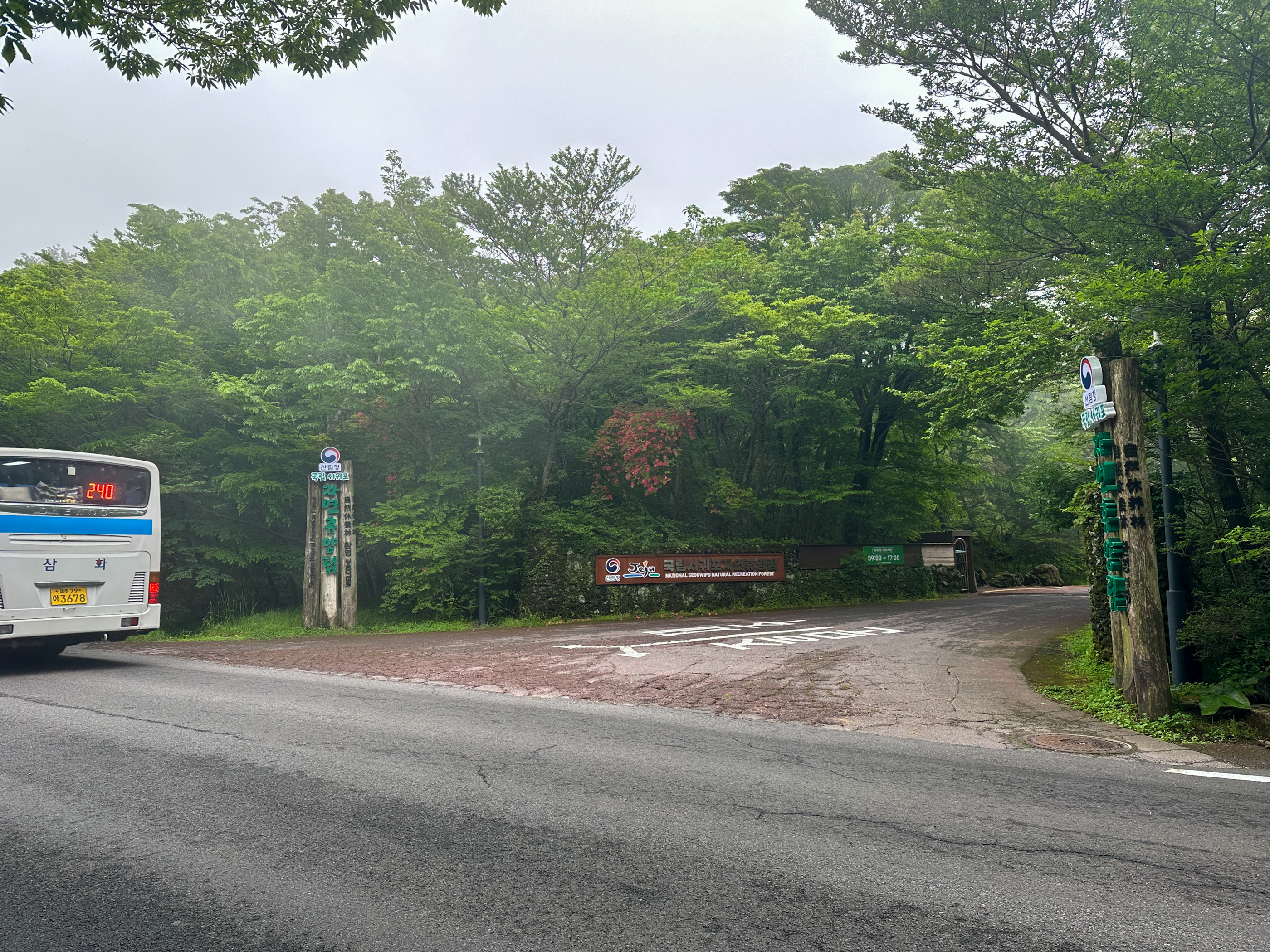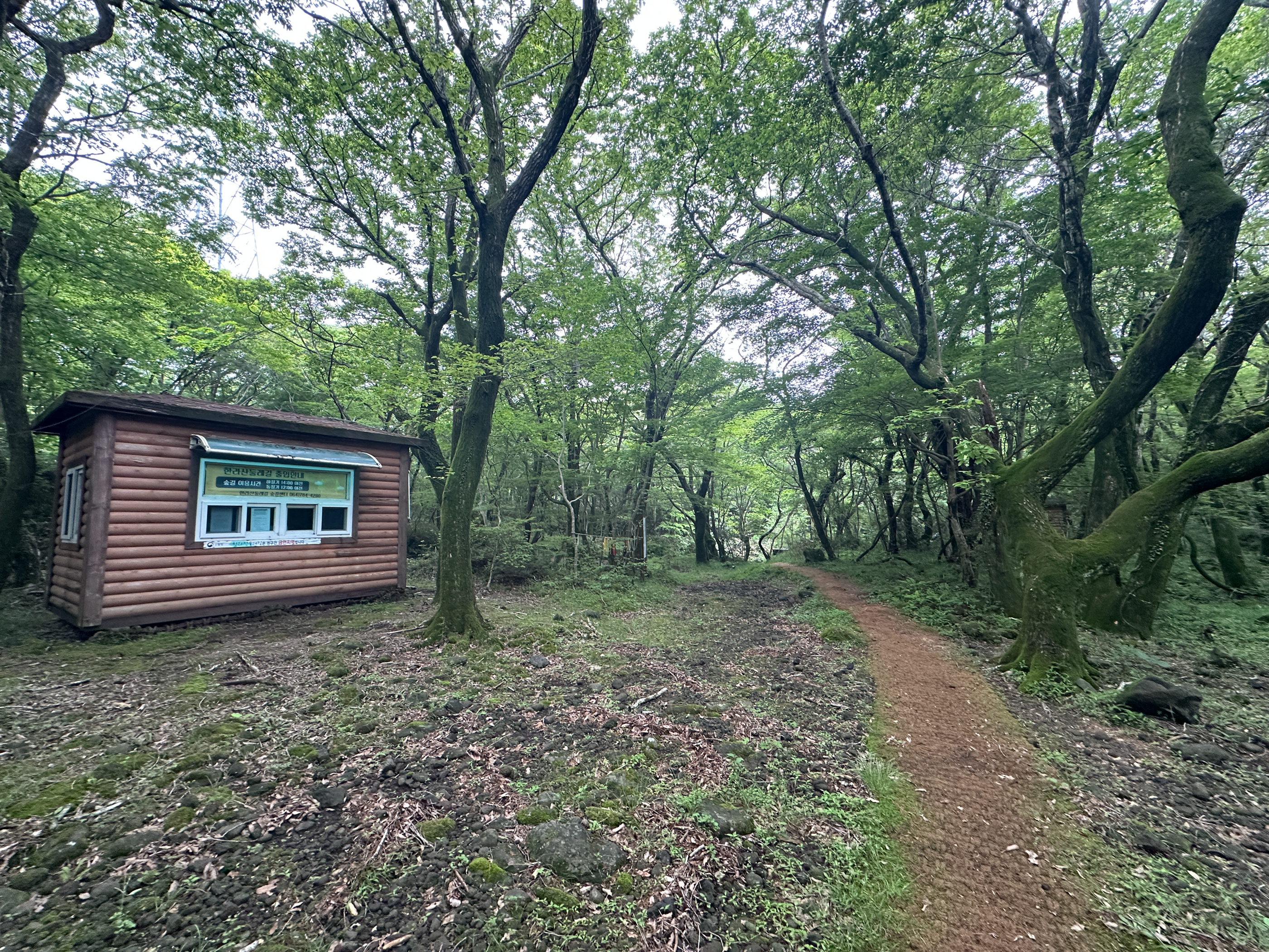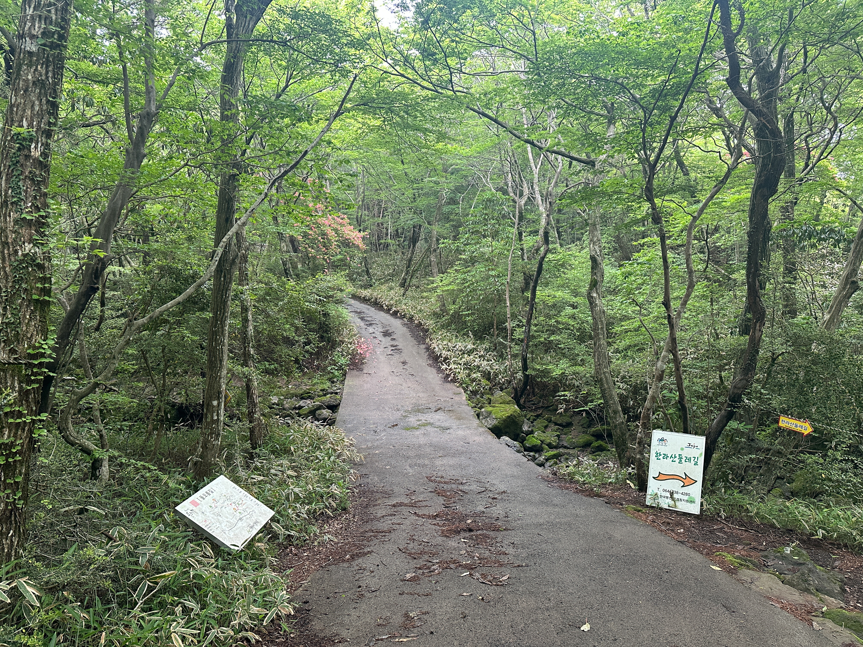 좌측으로 숲길을 따라 내려가면 1100도로 맞은편에 서귀포자연휴양림입구가 있다.