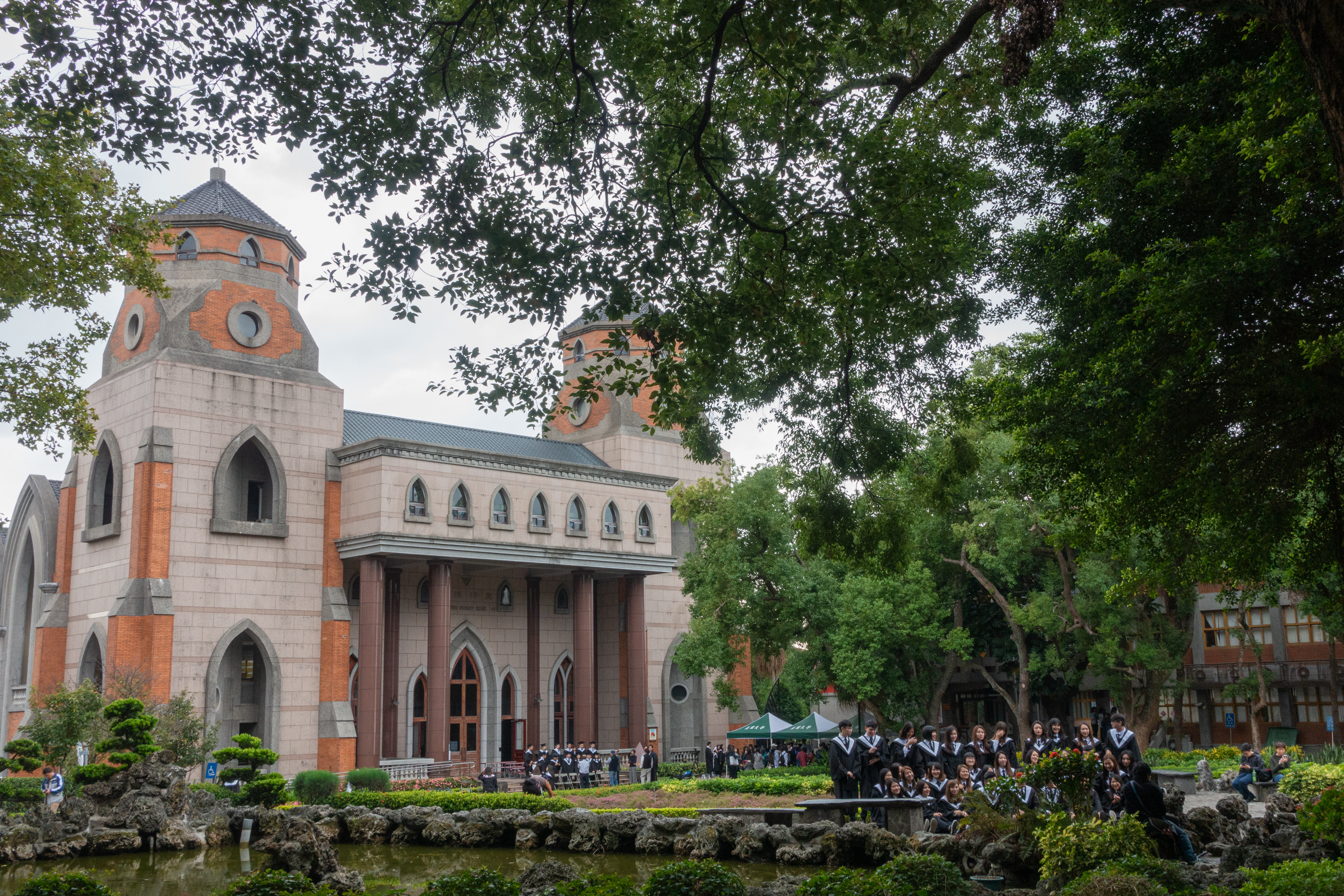 단체사진을 찍고 있었는데 아마도 졸업사진을 찍는 듯 했다.
