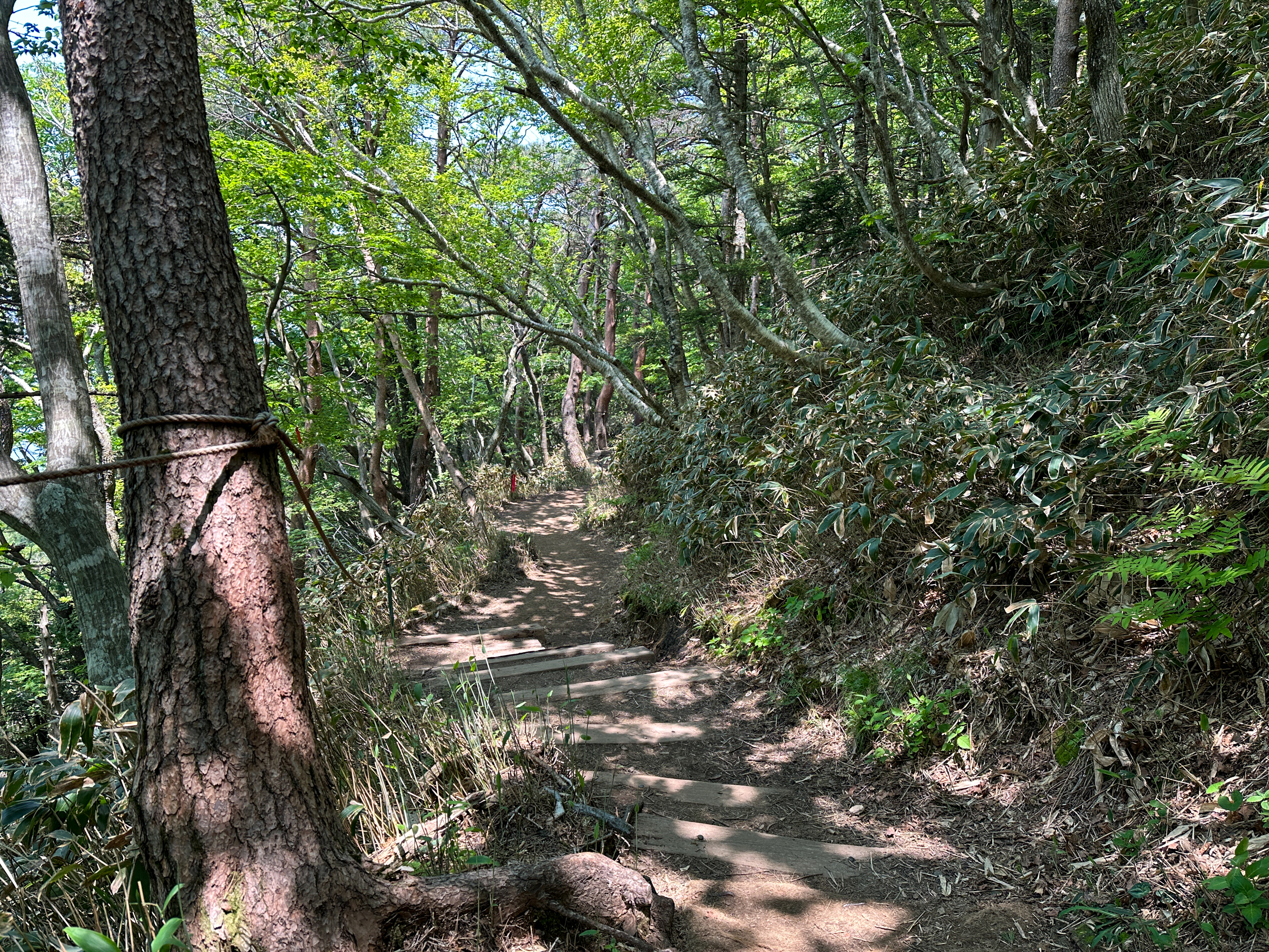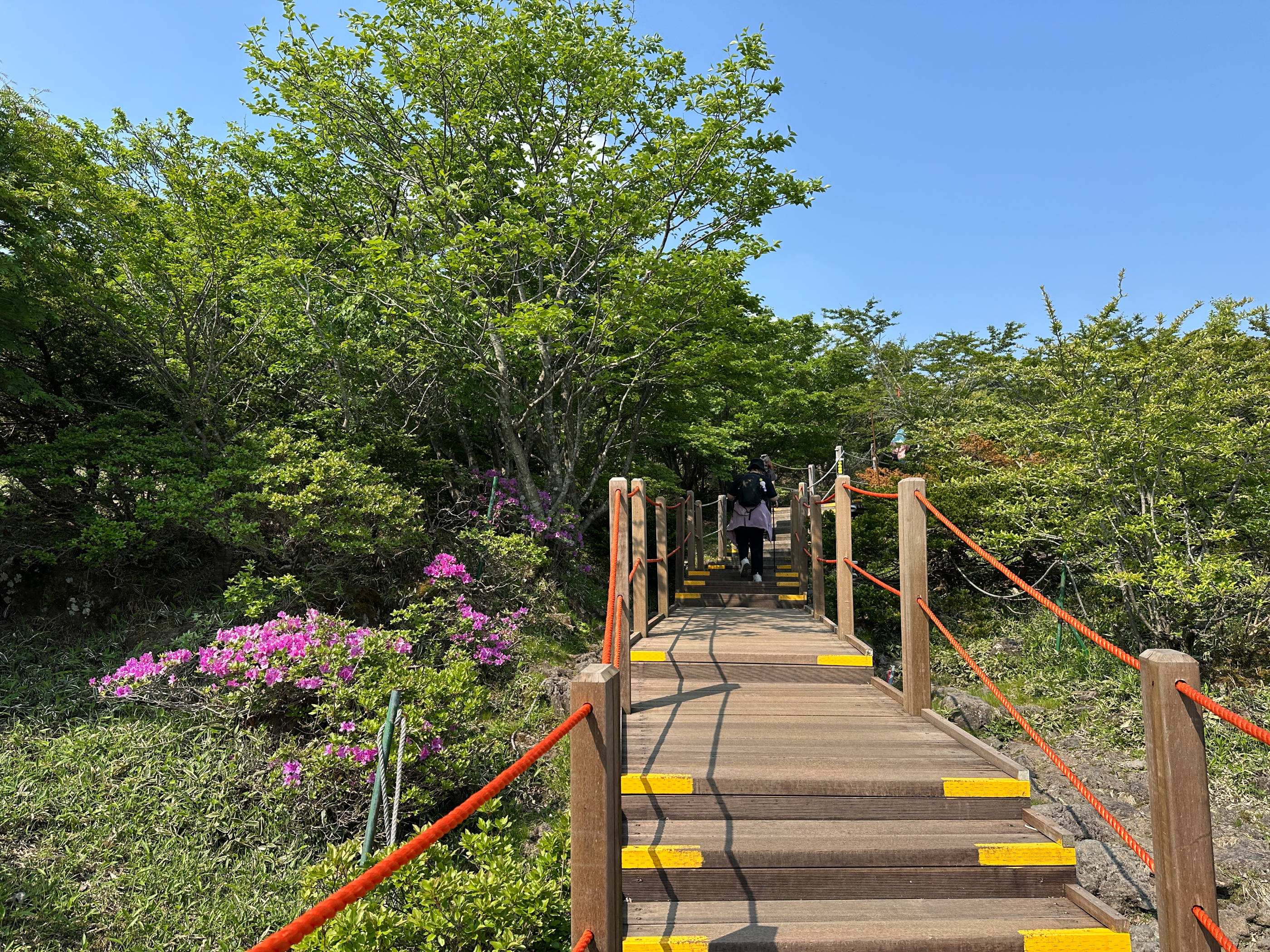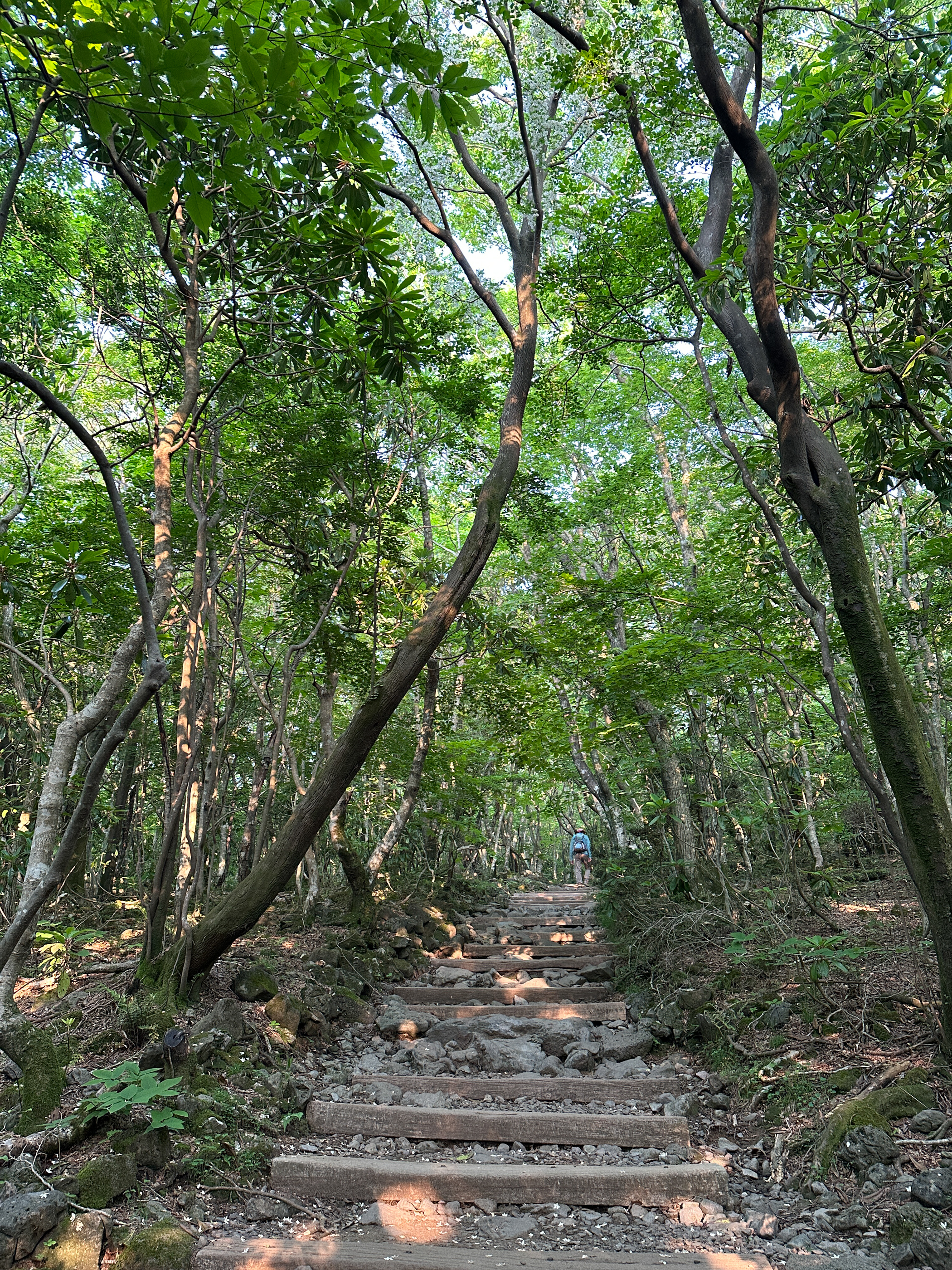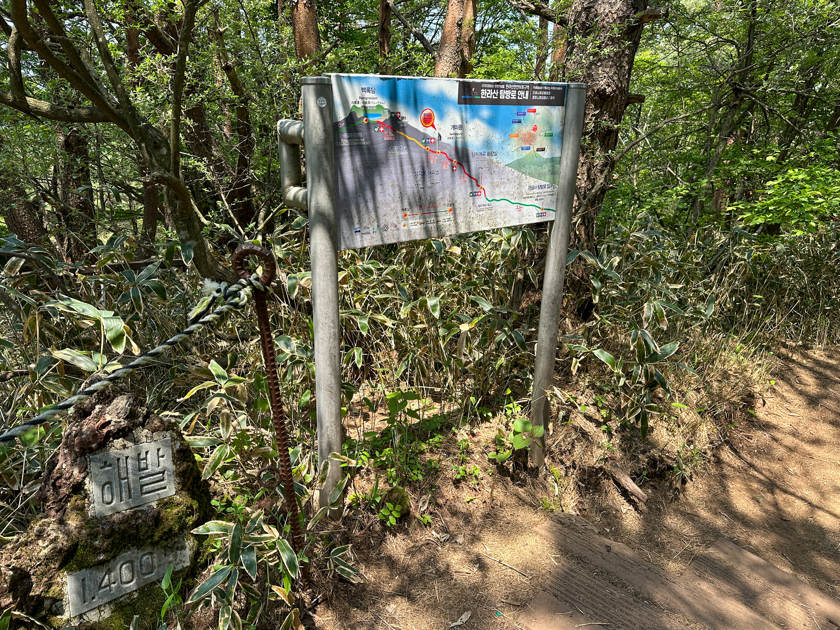 여기서 정상까지는 2.3km로 난이도 보통으로 안내되고 있는데, 웬걸! 정상까지 이어지는 계단이 만만치 않다.