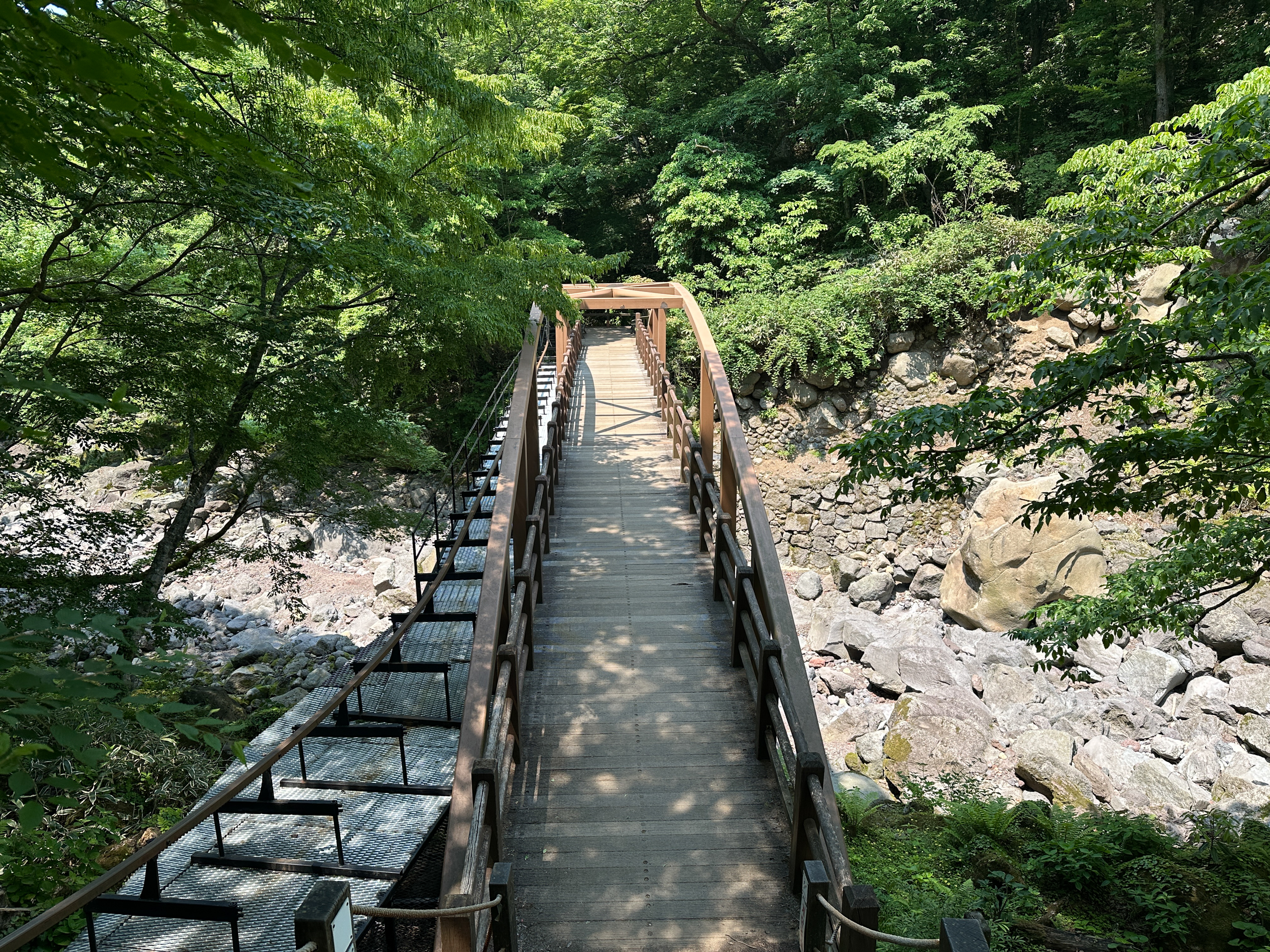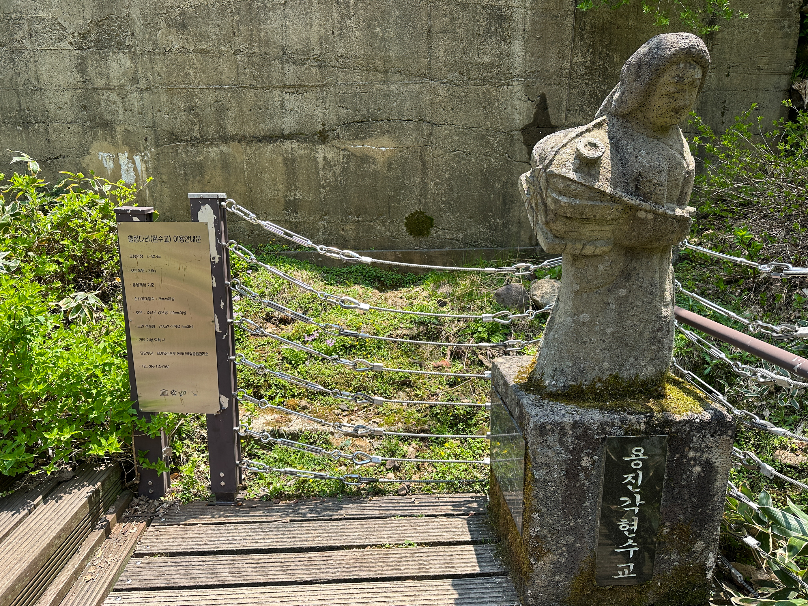 목교로 계곡을 내려 갔다 다시 가파른 계단을 올라가면 휴식 공간이 나온다.