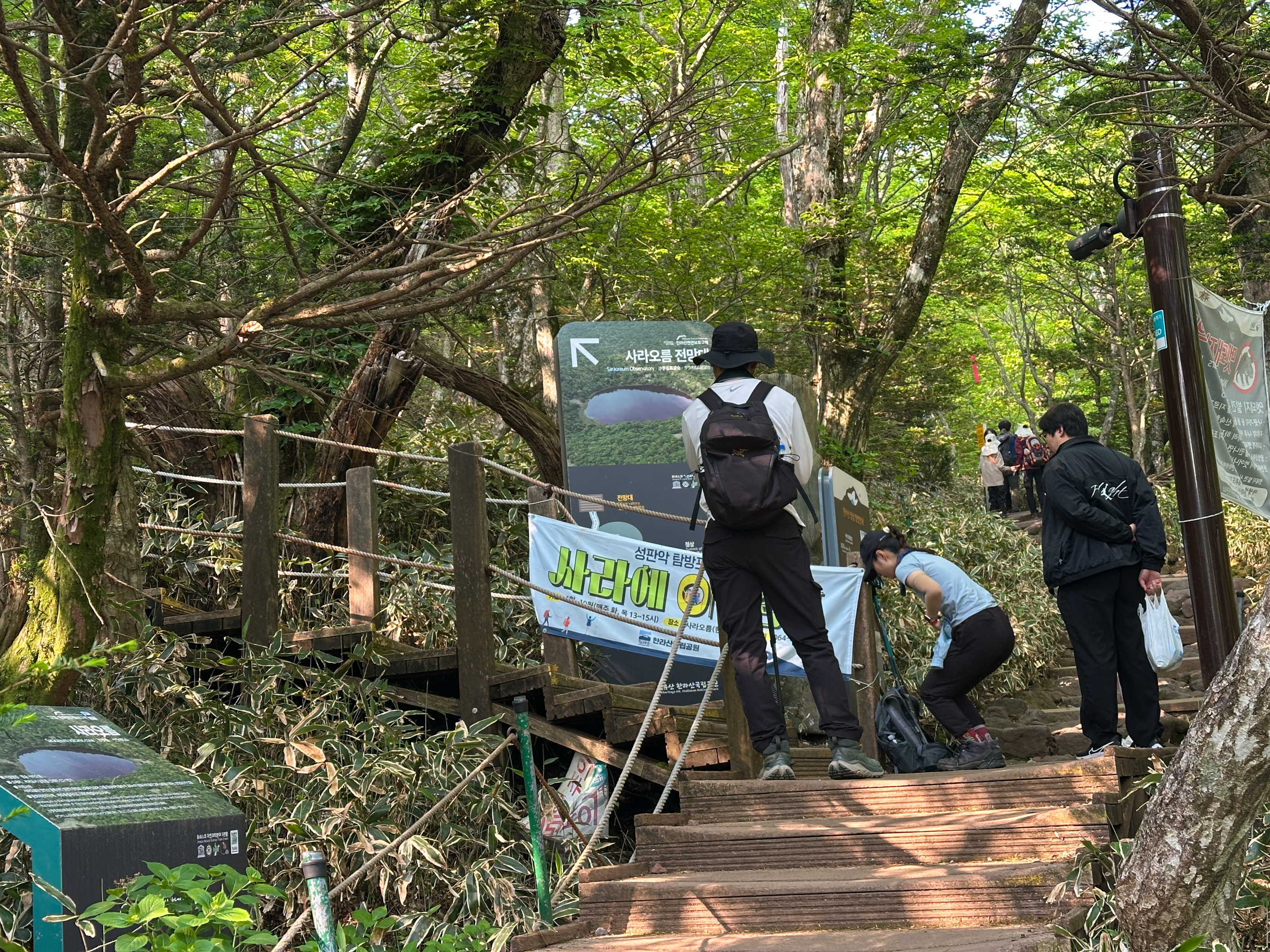 2시40분 '관음사탐방로'에 도착했다. 7시40분이 걸렸다. 입산이 통제되고 있는 시간이라 보수 작업을 하는 것 같다.