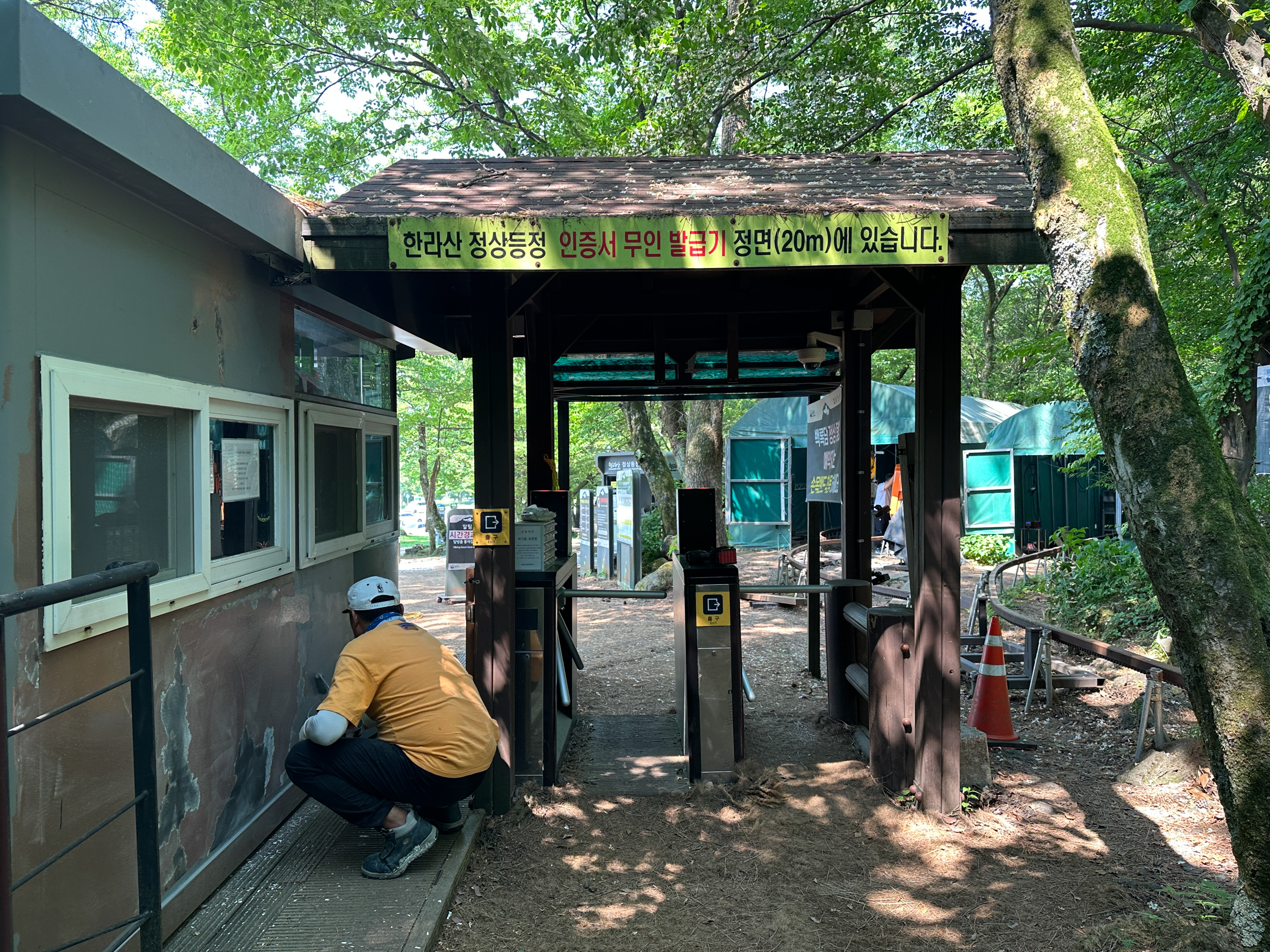 정상에서 한라산등정인정 신청을 하면 하산 후 발급기에서 인증서를 출력할 수 있다. 유료 1,000원