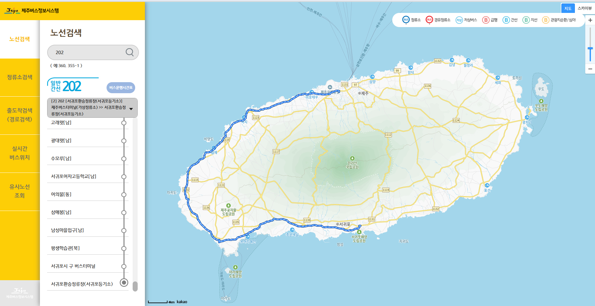 서귀포시내에서 제주시내까지 일주서로를 왕복하는 202번 버스는 우리동네에서 타면 제주시내까지 2시간이 더 걸리기도 한다.