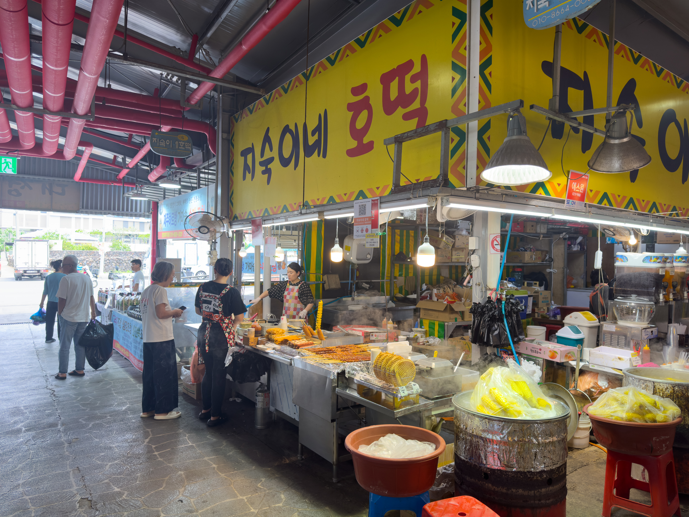 단골 과일가게와 채소가게를 들렸고 호떡을 사서 베어문다.