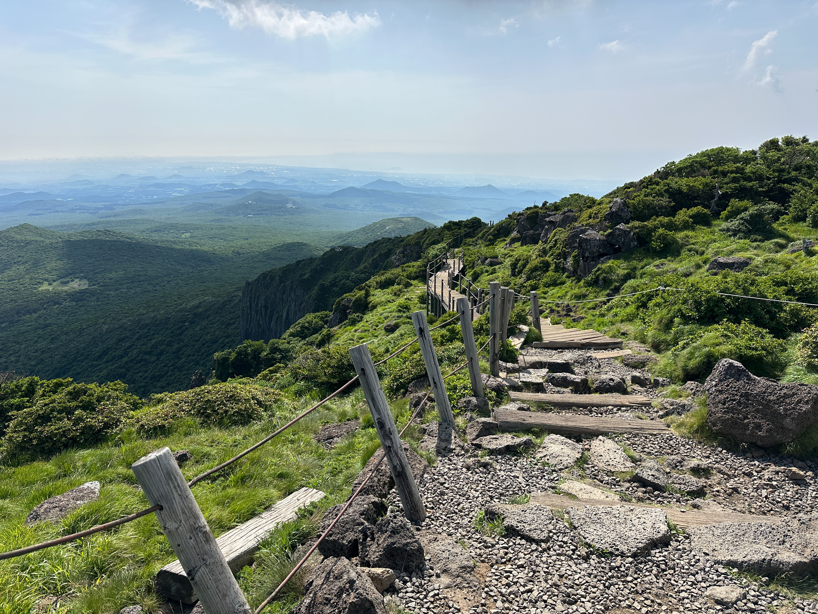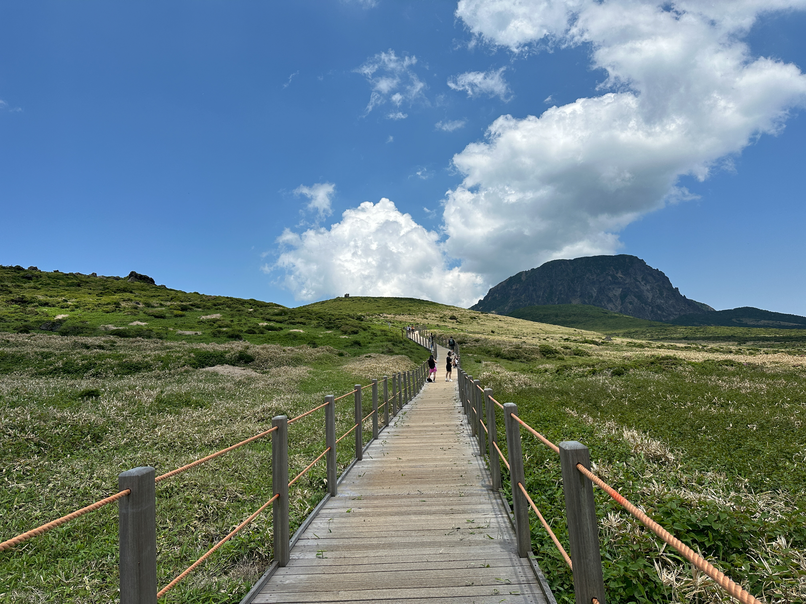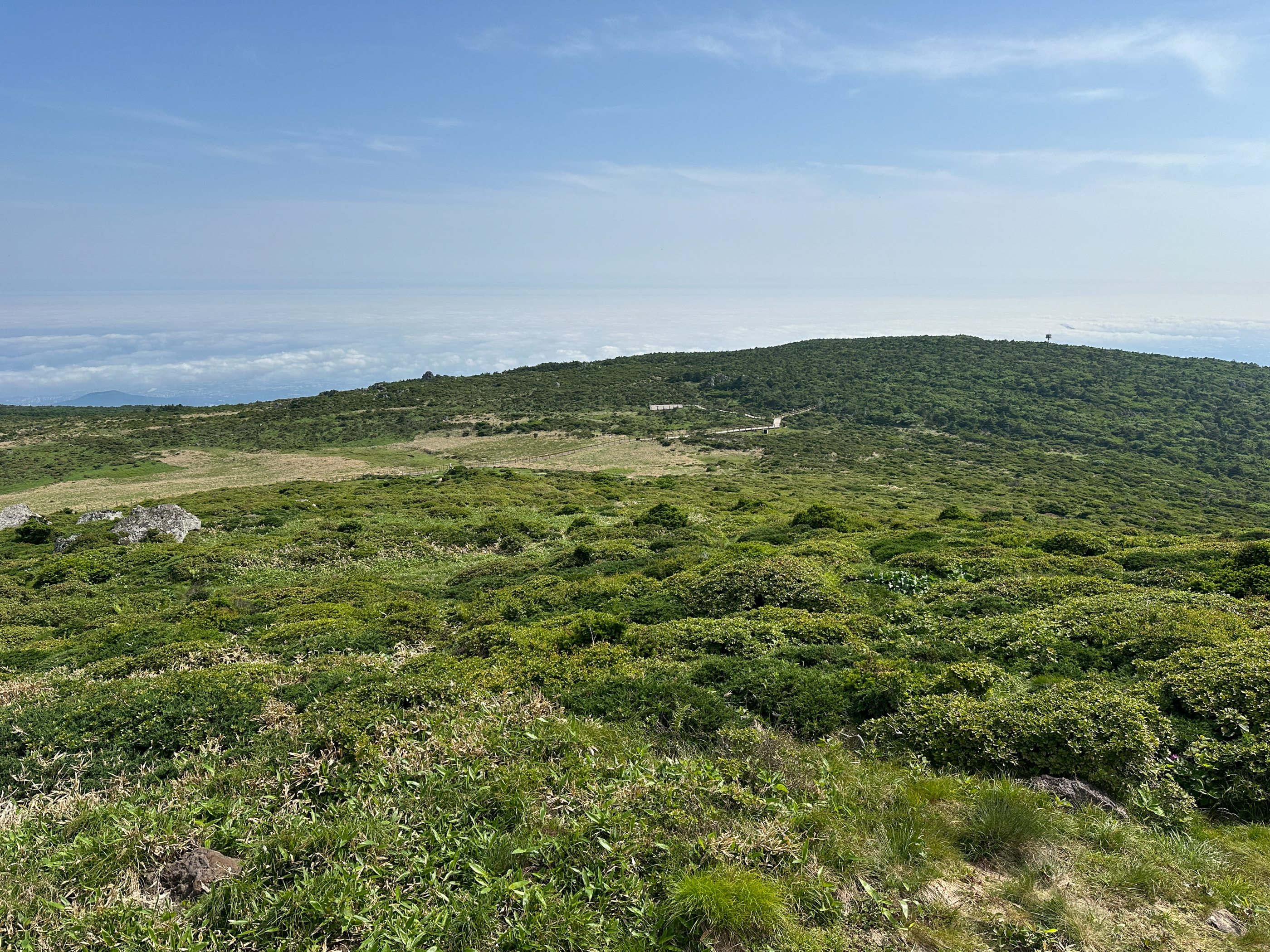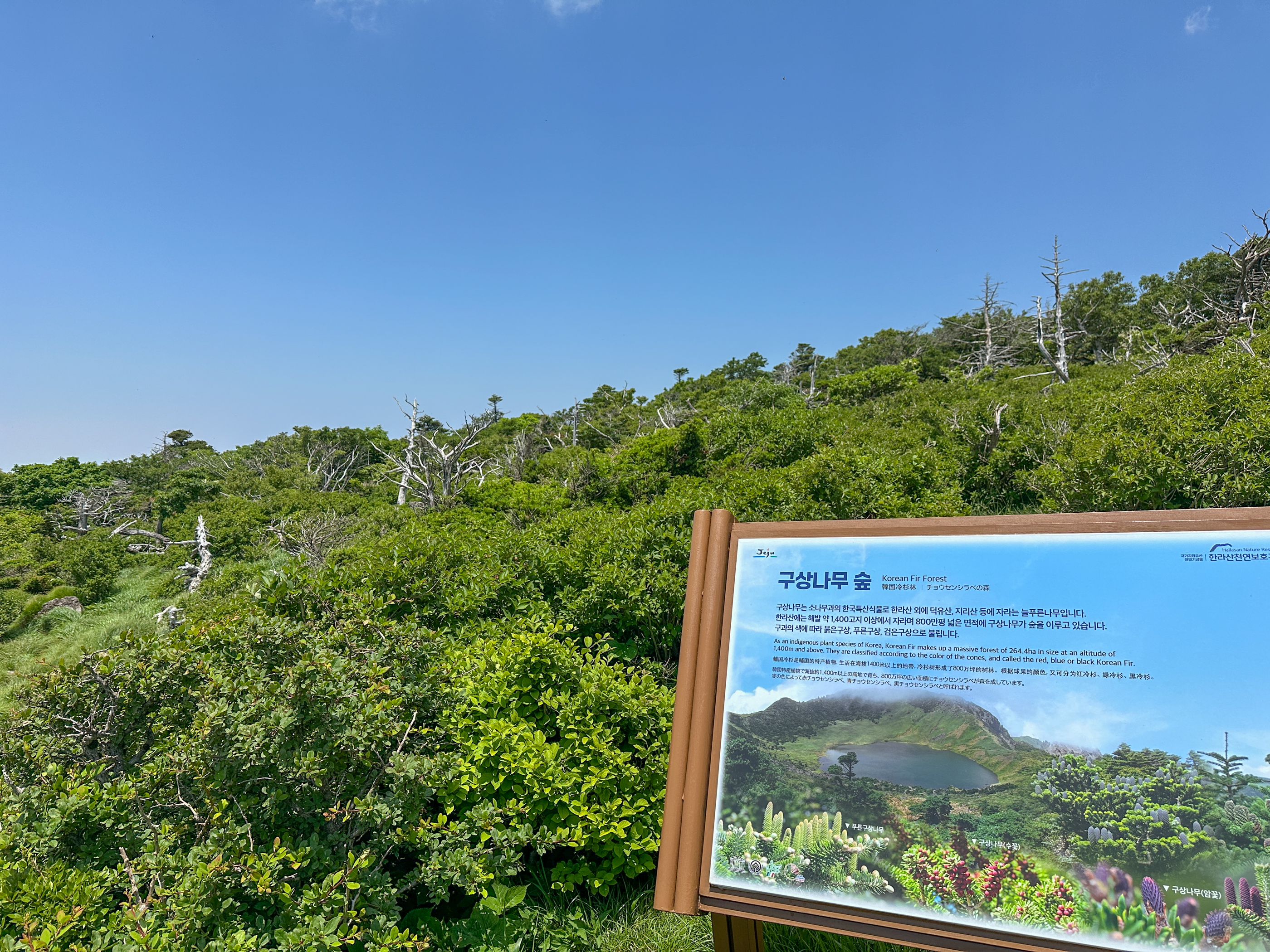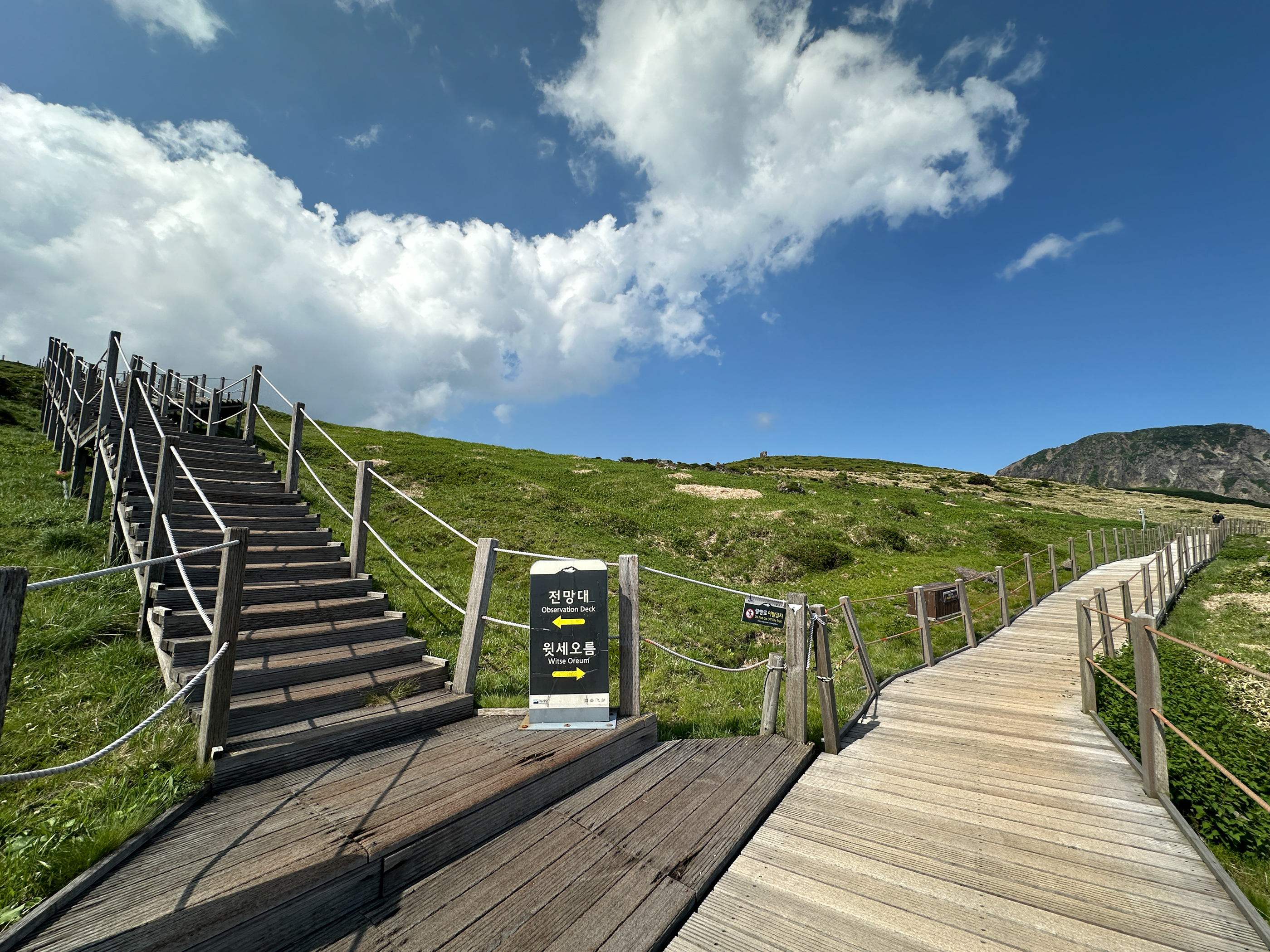 가파른 계단과 구상나무 군락지를 지나면 고산 초원인 '선작지왓'에 이르는데 이곳은 해발 1,600m가 넘는 지역이지만 평지처럼 느껴진다.