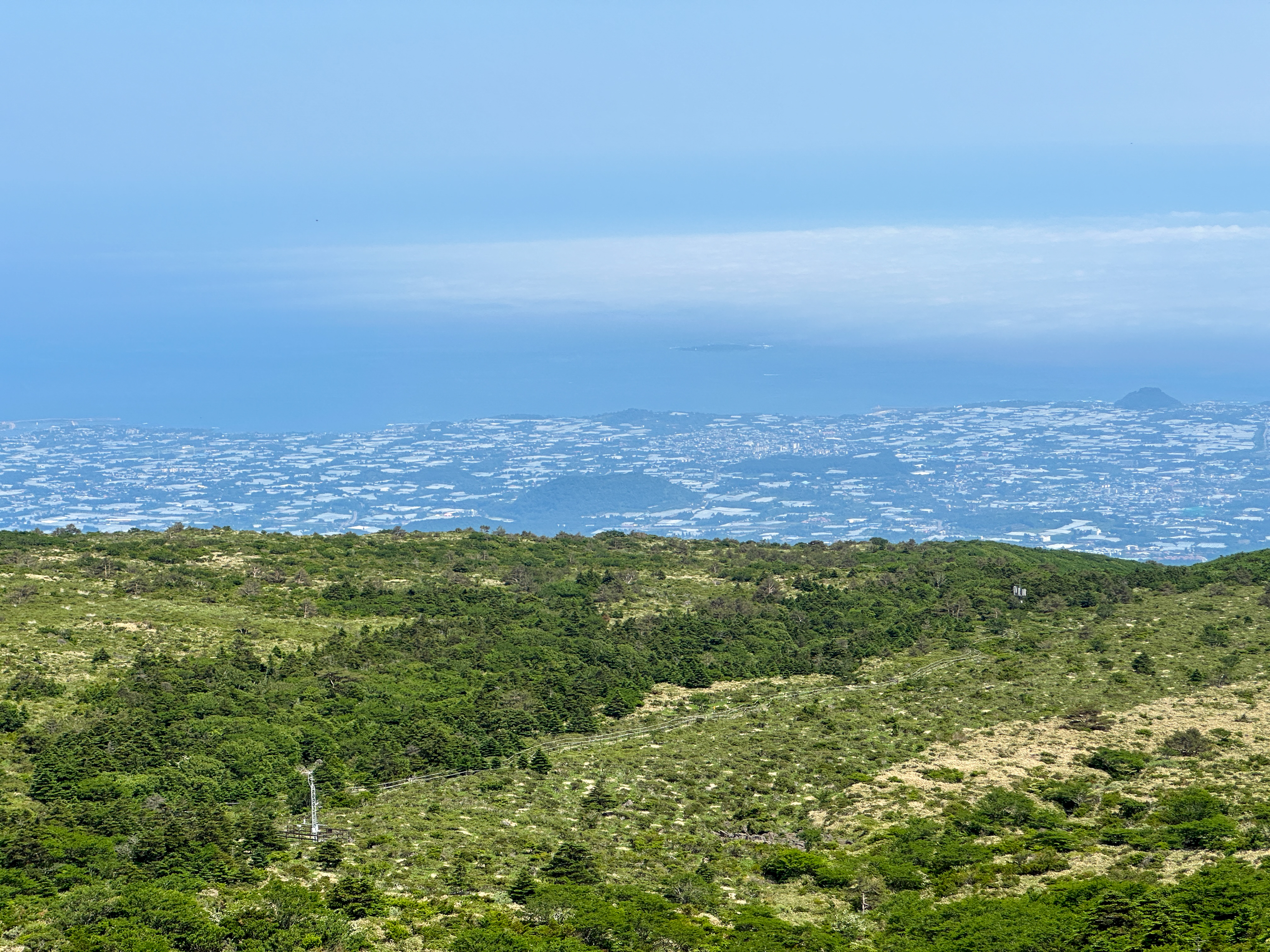 멀리 바다와 집들이 보이는데 방향감각이 없어서....서귀포쪽은 맞다.