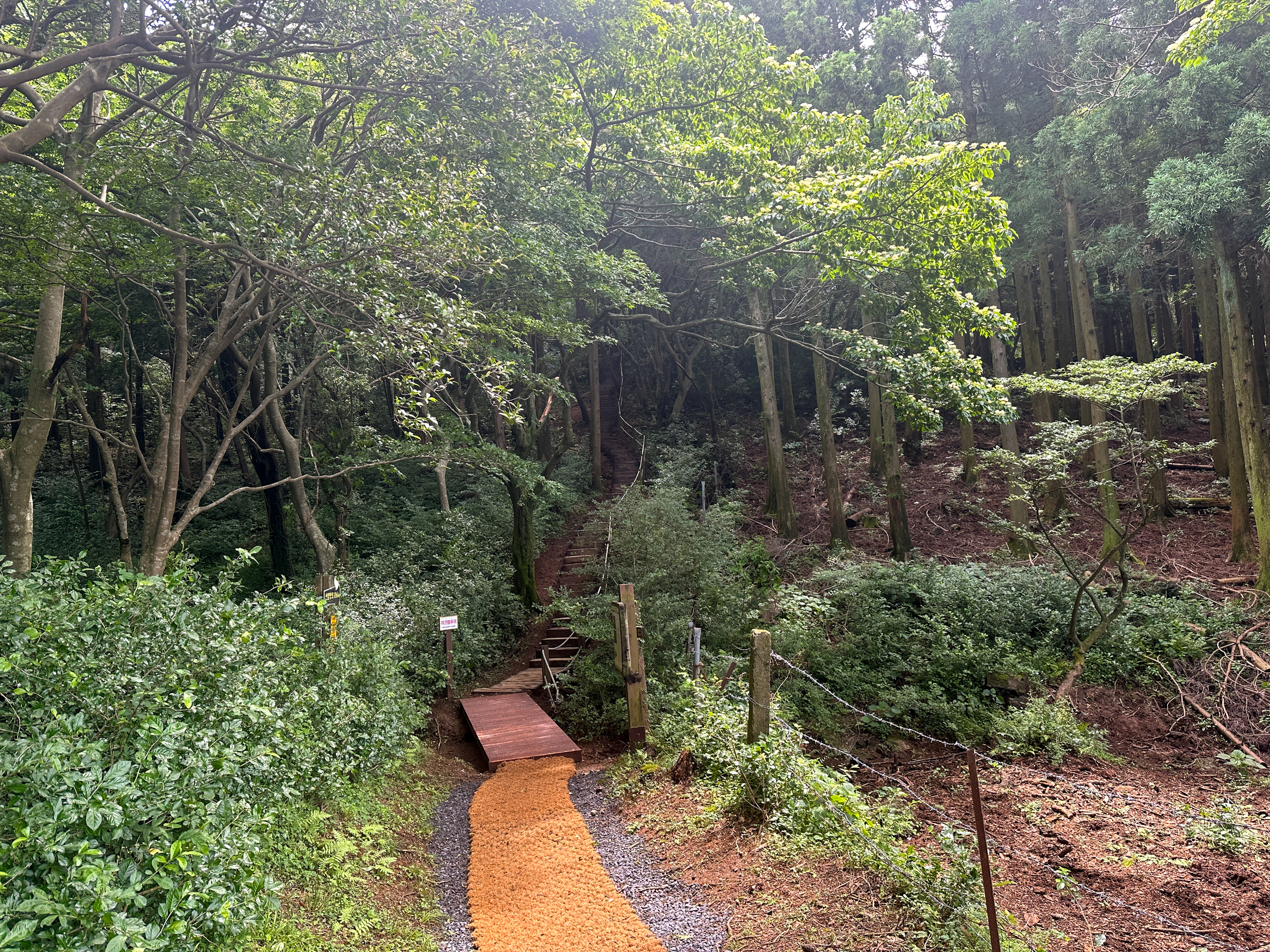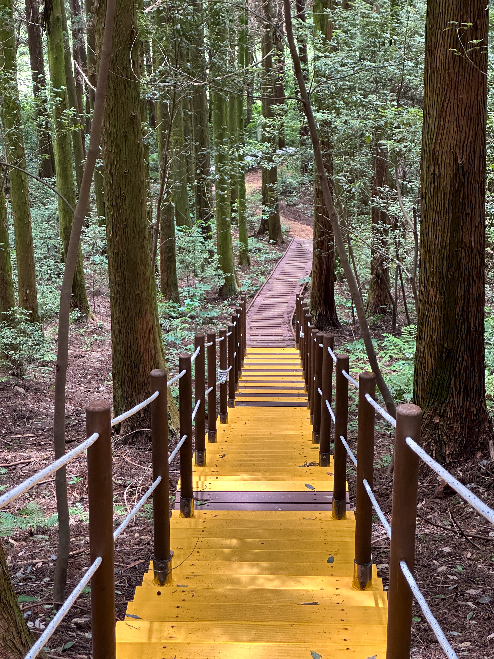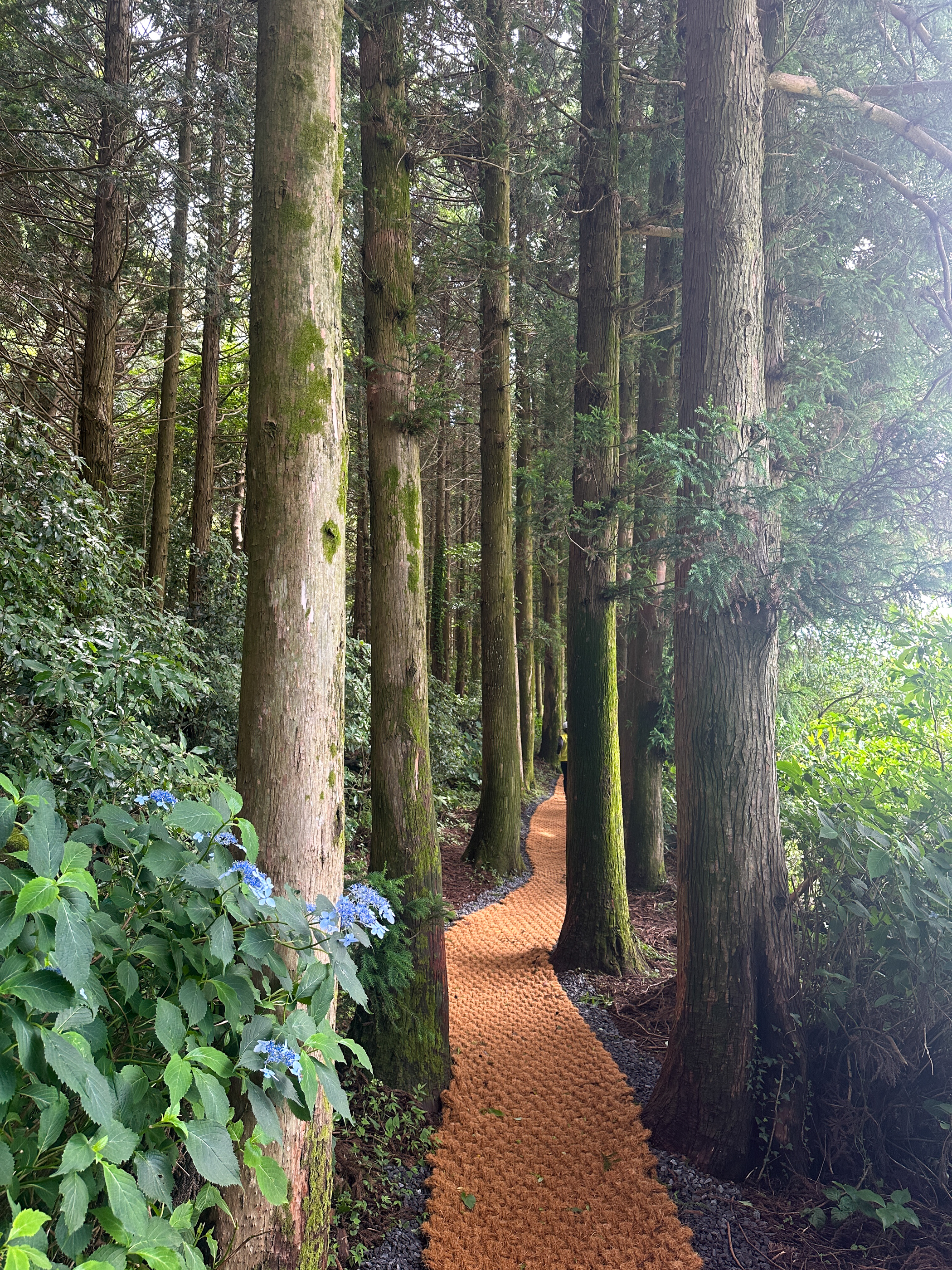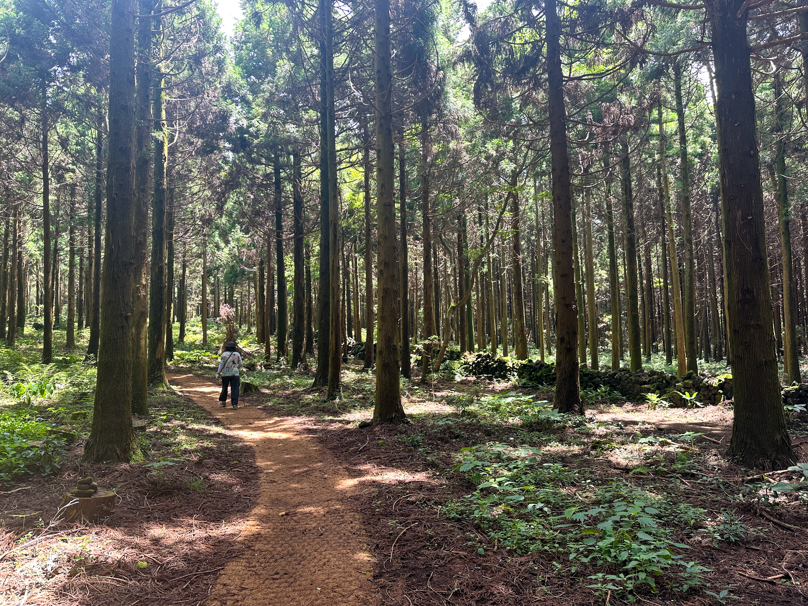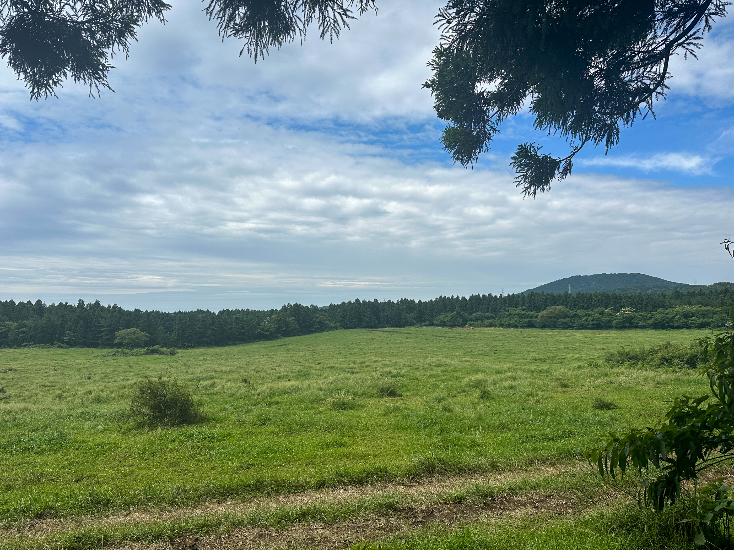 삼나무숲을 통과한다. 우측은 넓은 초원이다.