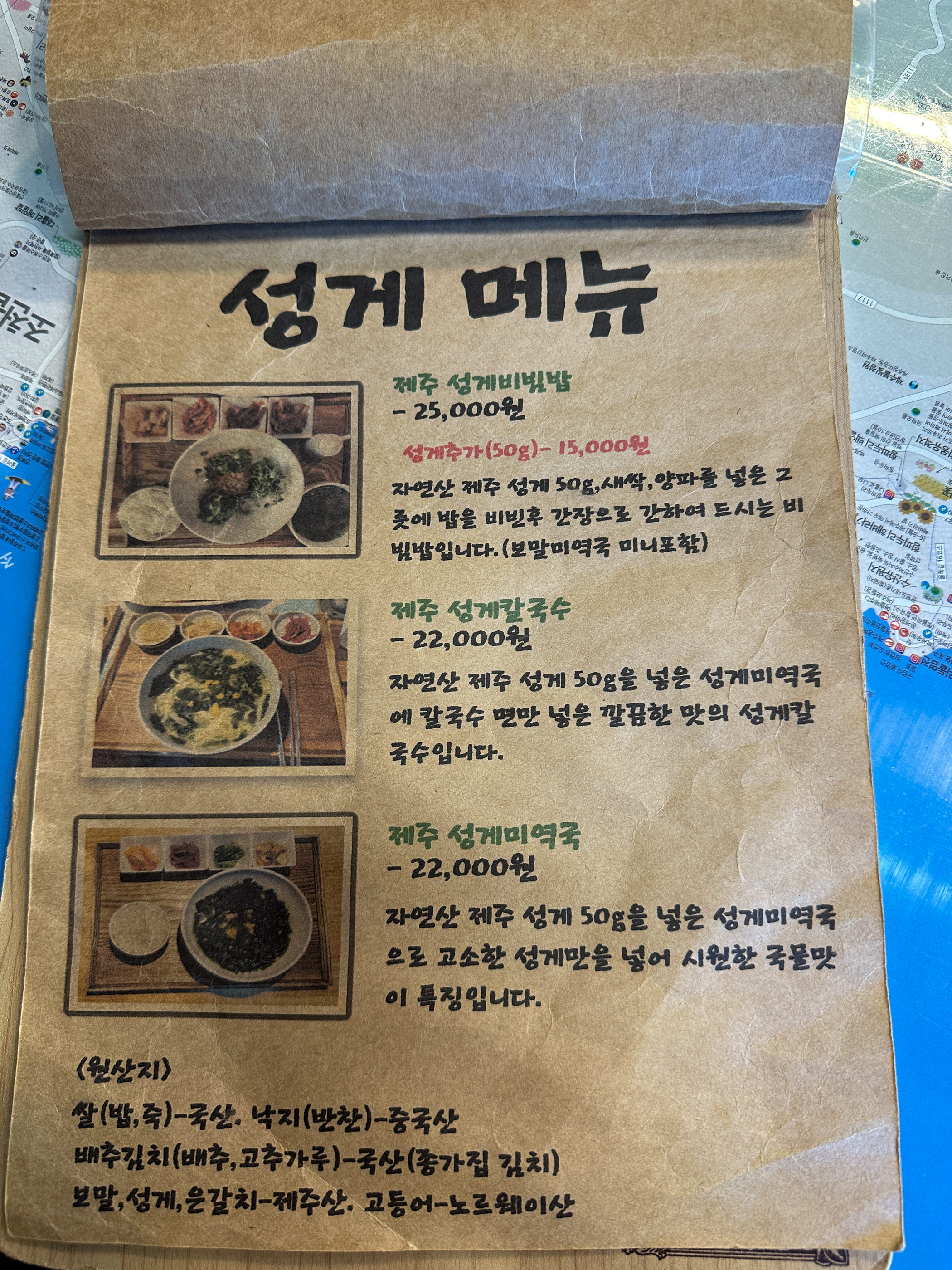 주문한 음식, 재료는 대부분 제주산을 사용한다 한다.