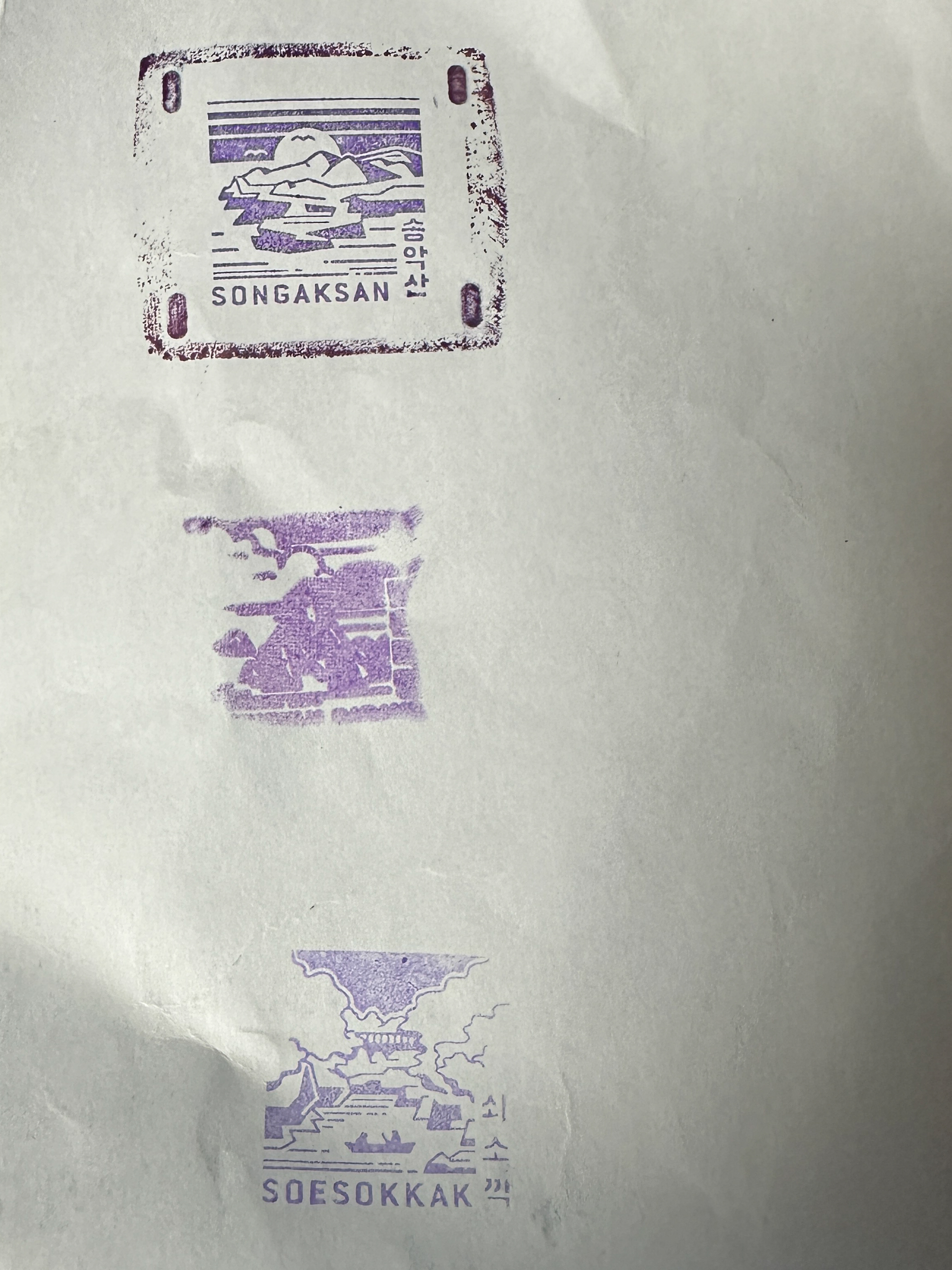 인증센터에서 찍은 스템프 도형들 -위에서부터 송악산, 법환바당, 쇠소깍이다.-