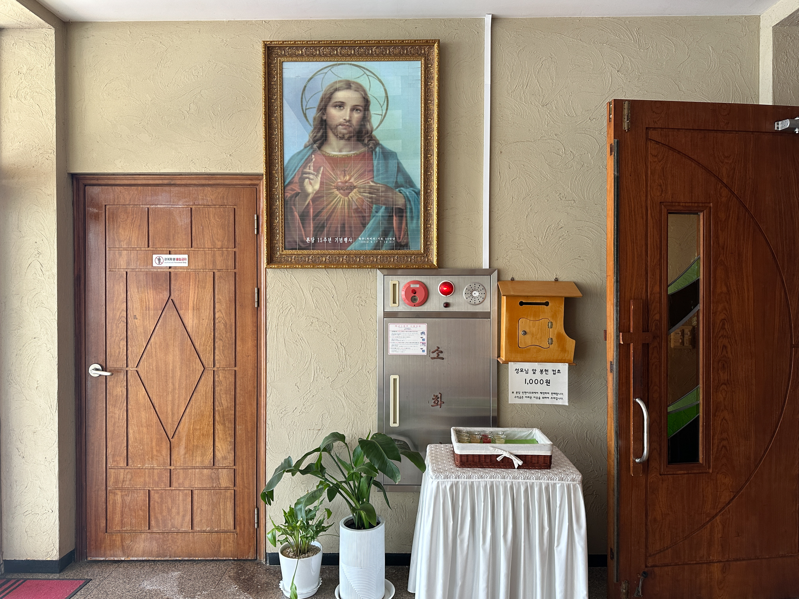 전해 듣기로는 제주교구에서 젊은층 신자 비율이 높은 성당이라 모시는 계기가 되었다 하는데