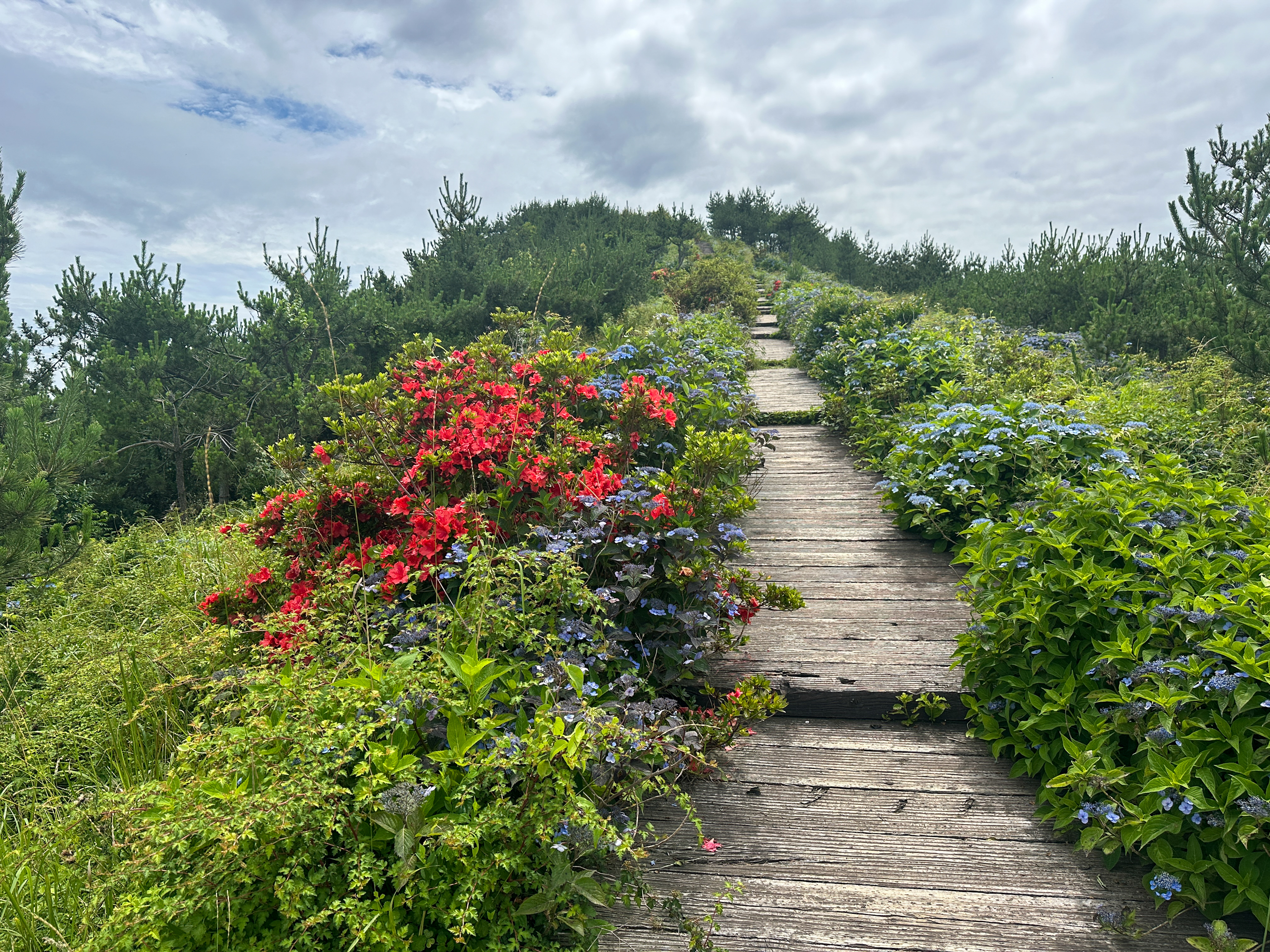 천국으로 향하는 계단 옆으로는 수국이 나란히 피어있다.