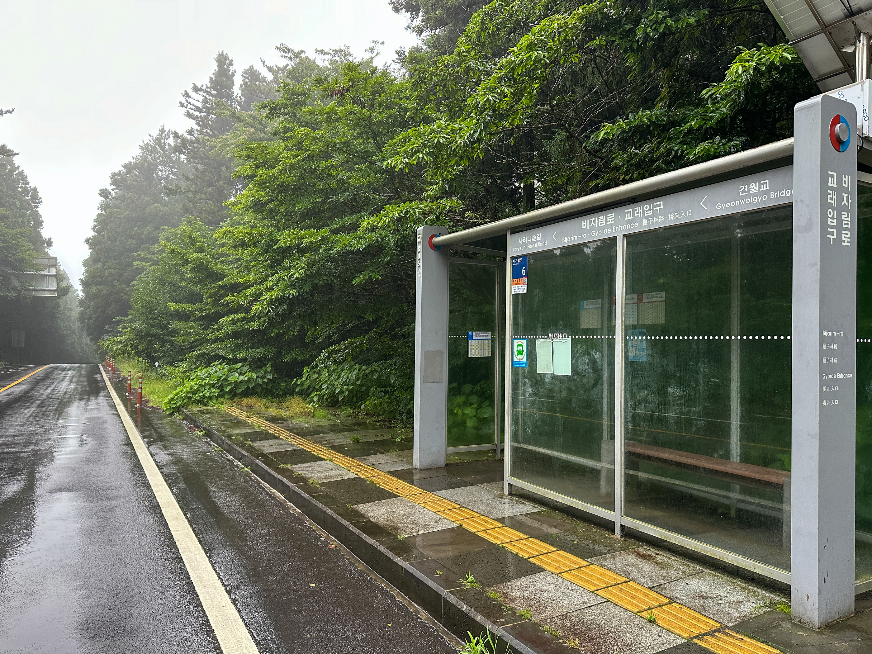 5.16도로의 교래입구정류소는 비를 피할 곳이 없었다.