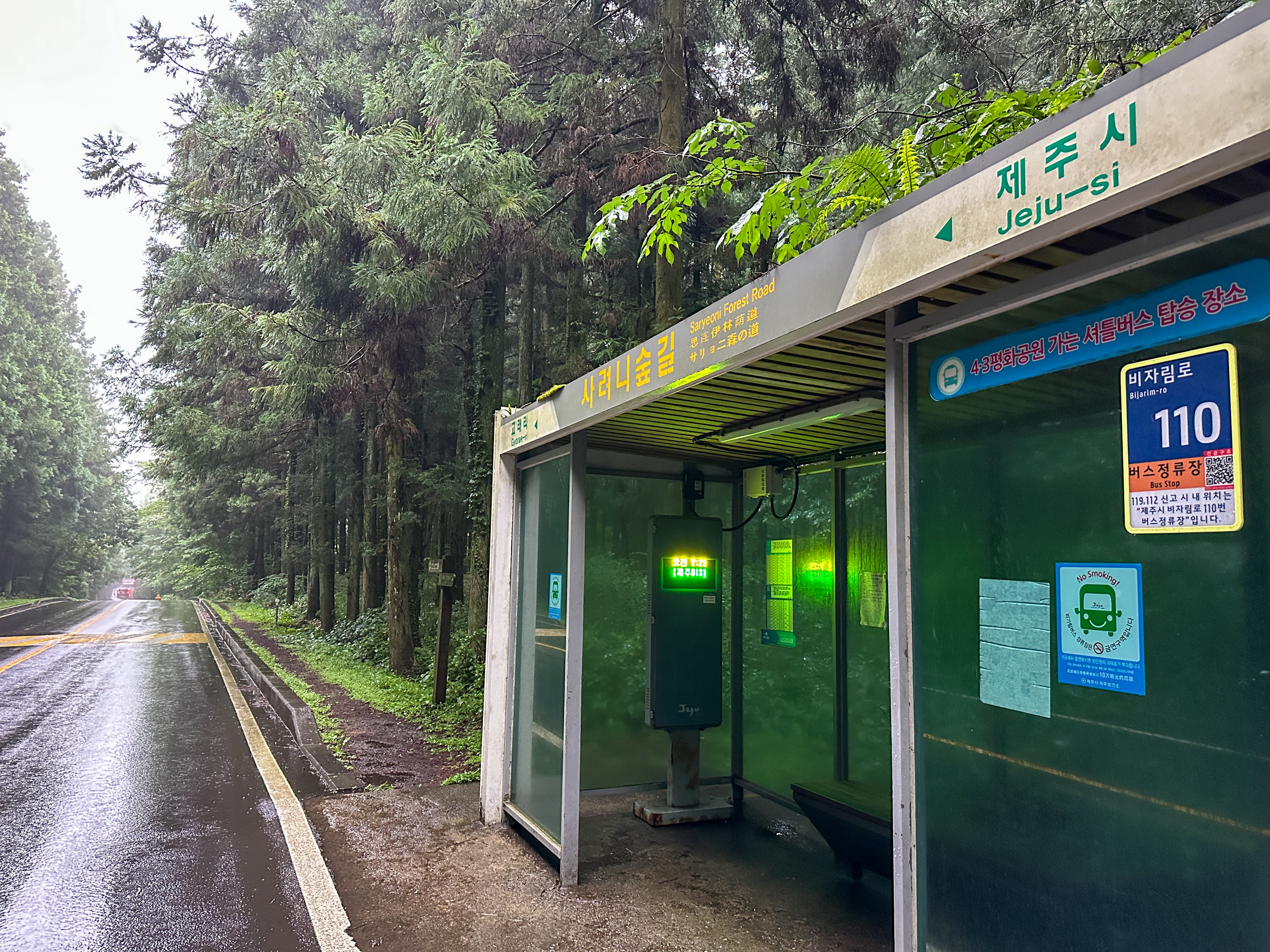 사려니숲길(비자림로) 정류소에 도착했다. 비자림로 교래입구 정류소에서는 1km정도 거리로 가깝다.