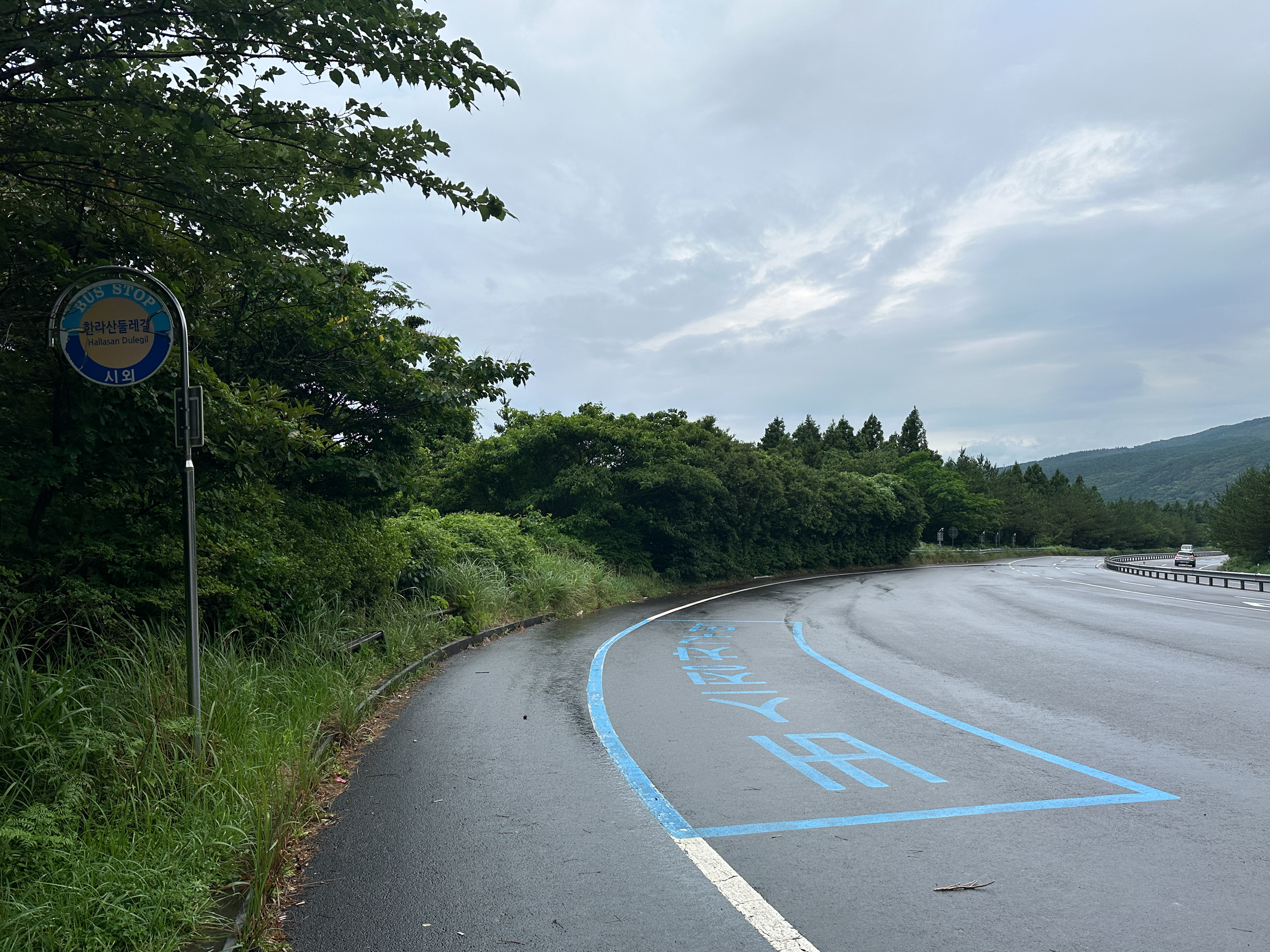 차를 주차한 5.16 도로 한라산둘레길 버스정류소(북) -이때만해도 비는 오지 않았다.