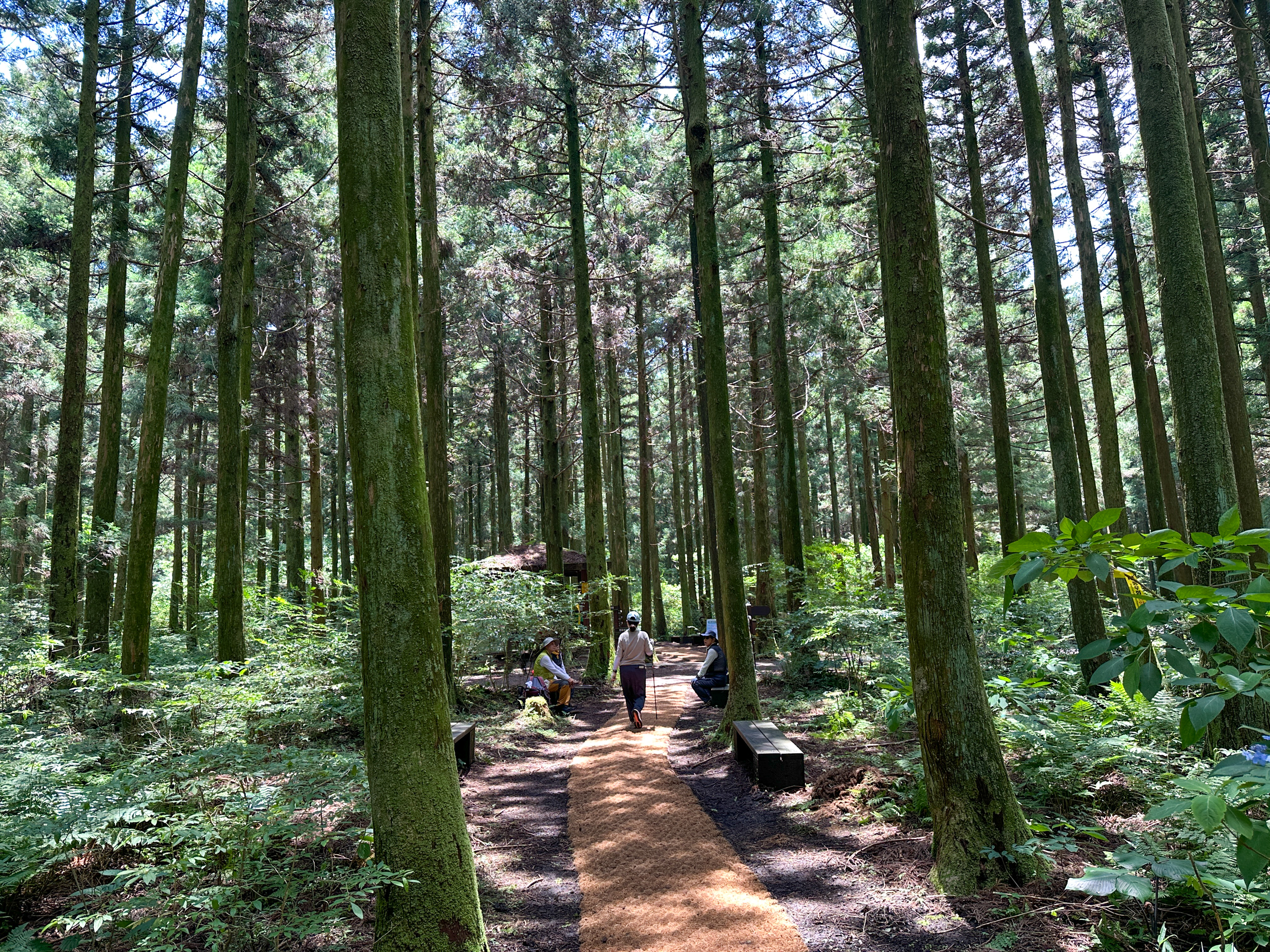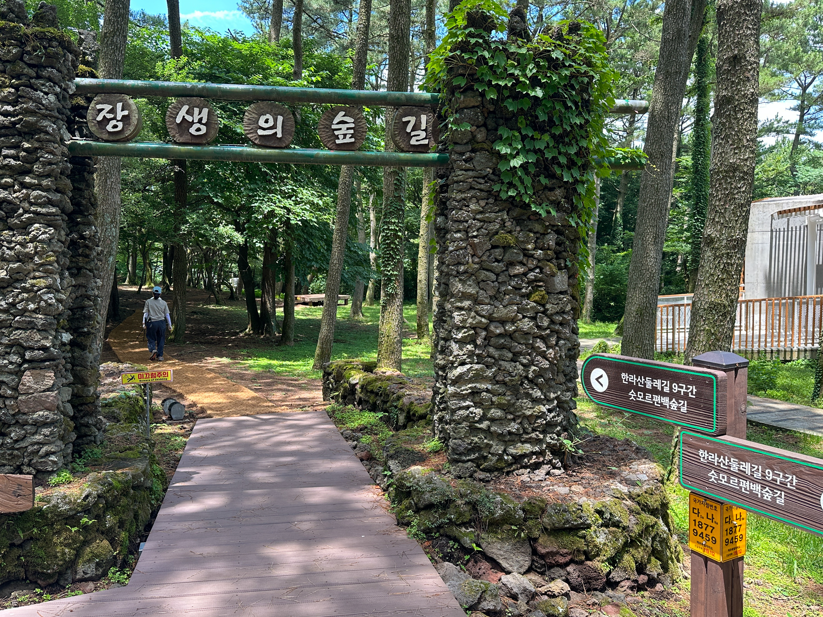 삼나무 숲을 통과하는 삼울길(657m) 를 지나면 '장생의 숲길' 입구에 도착한다.