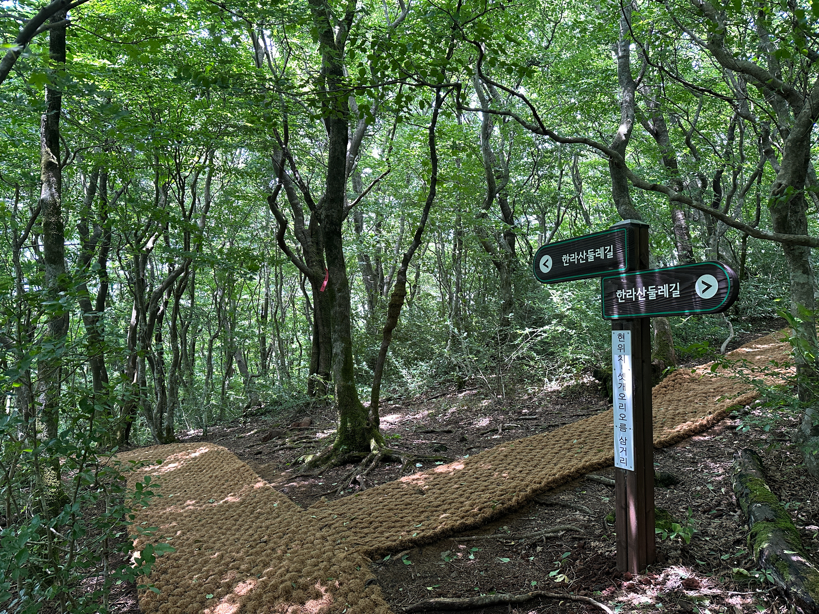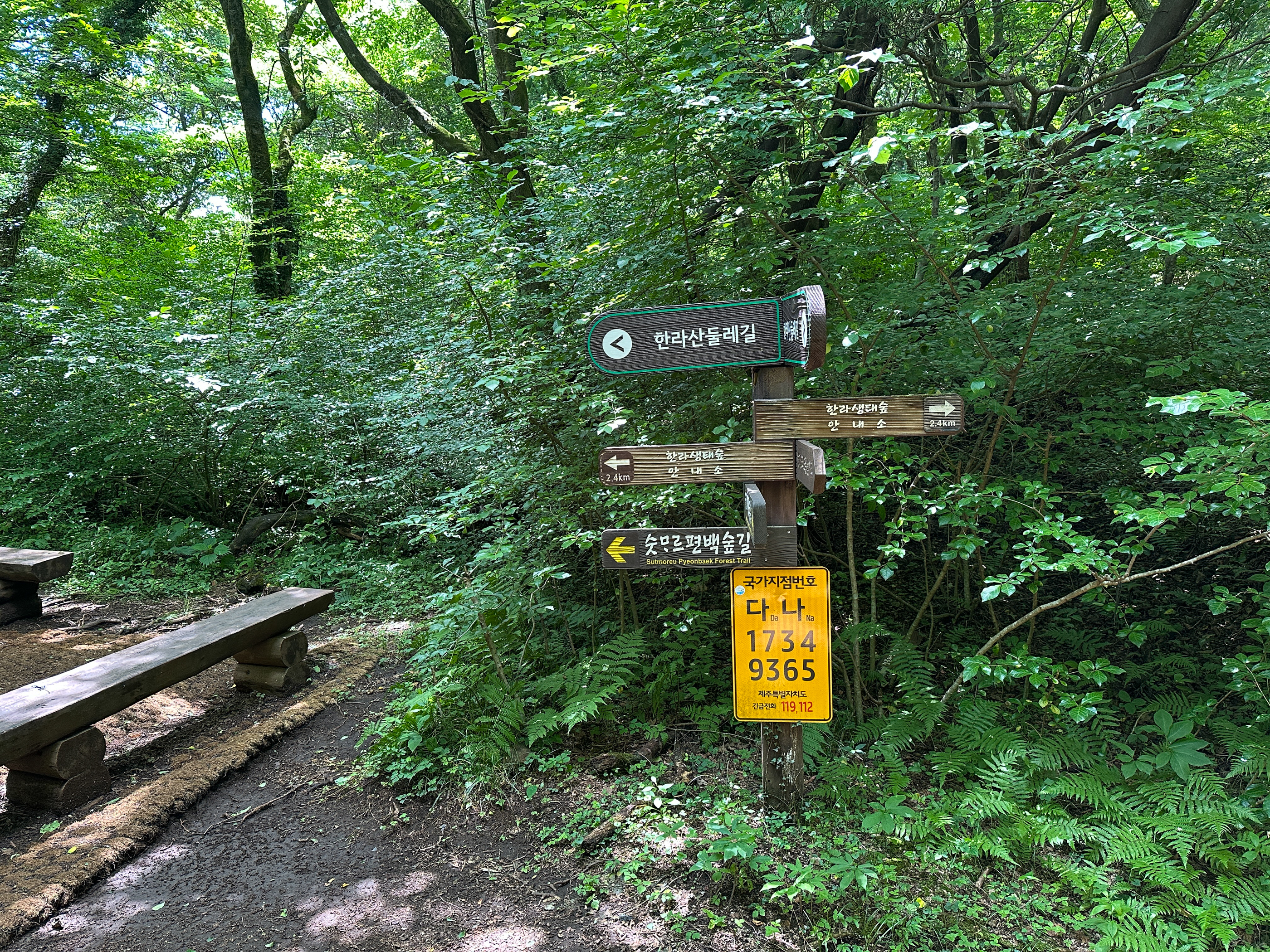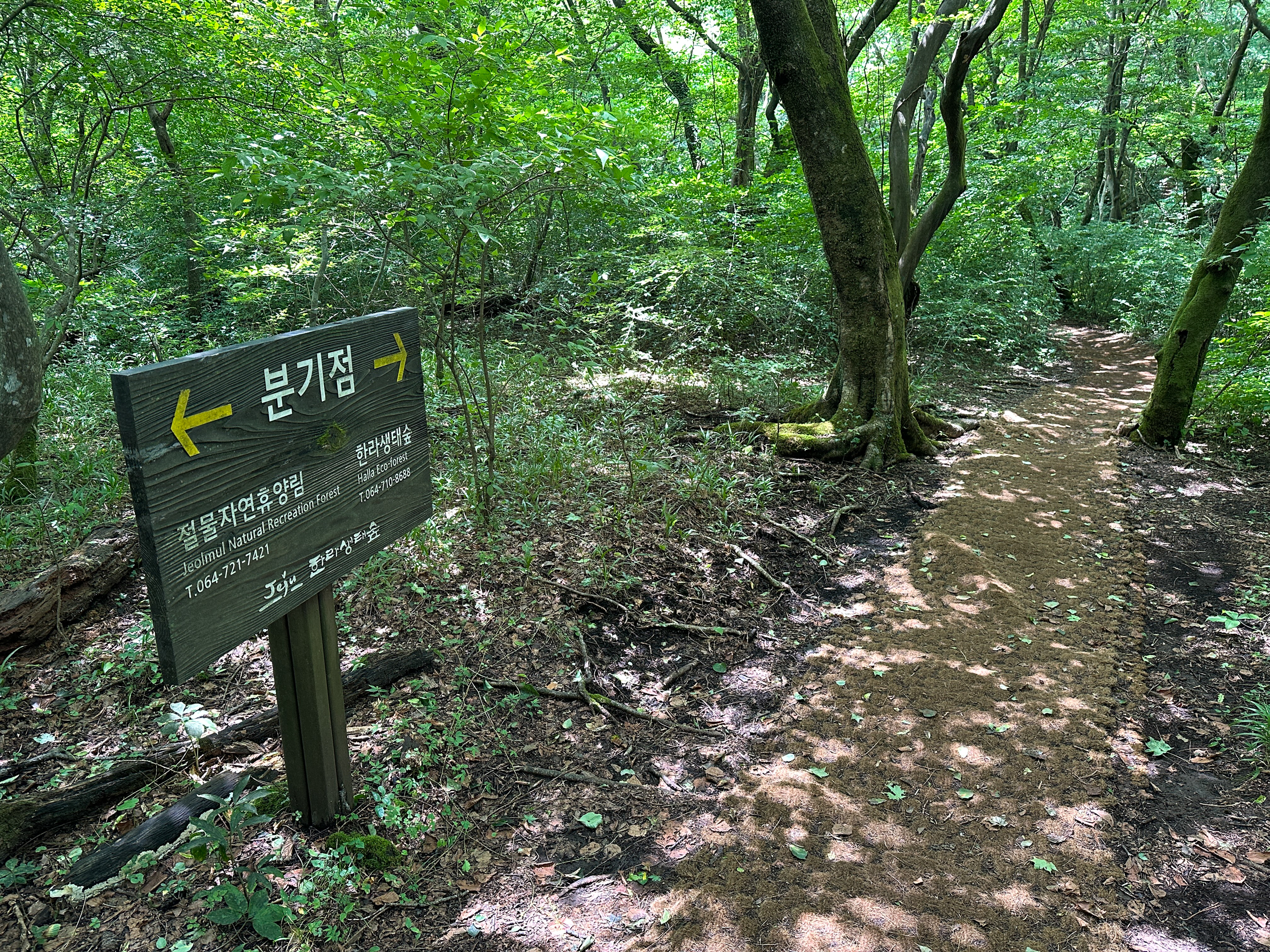 '한라생태숲안내소(2.4km)' 를 양방향으로 갈 수 있는데 한라산둘레길 방향을 선택했다.