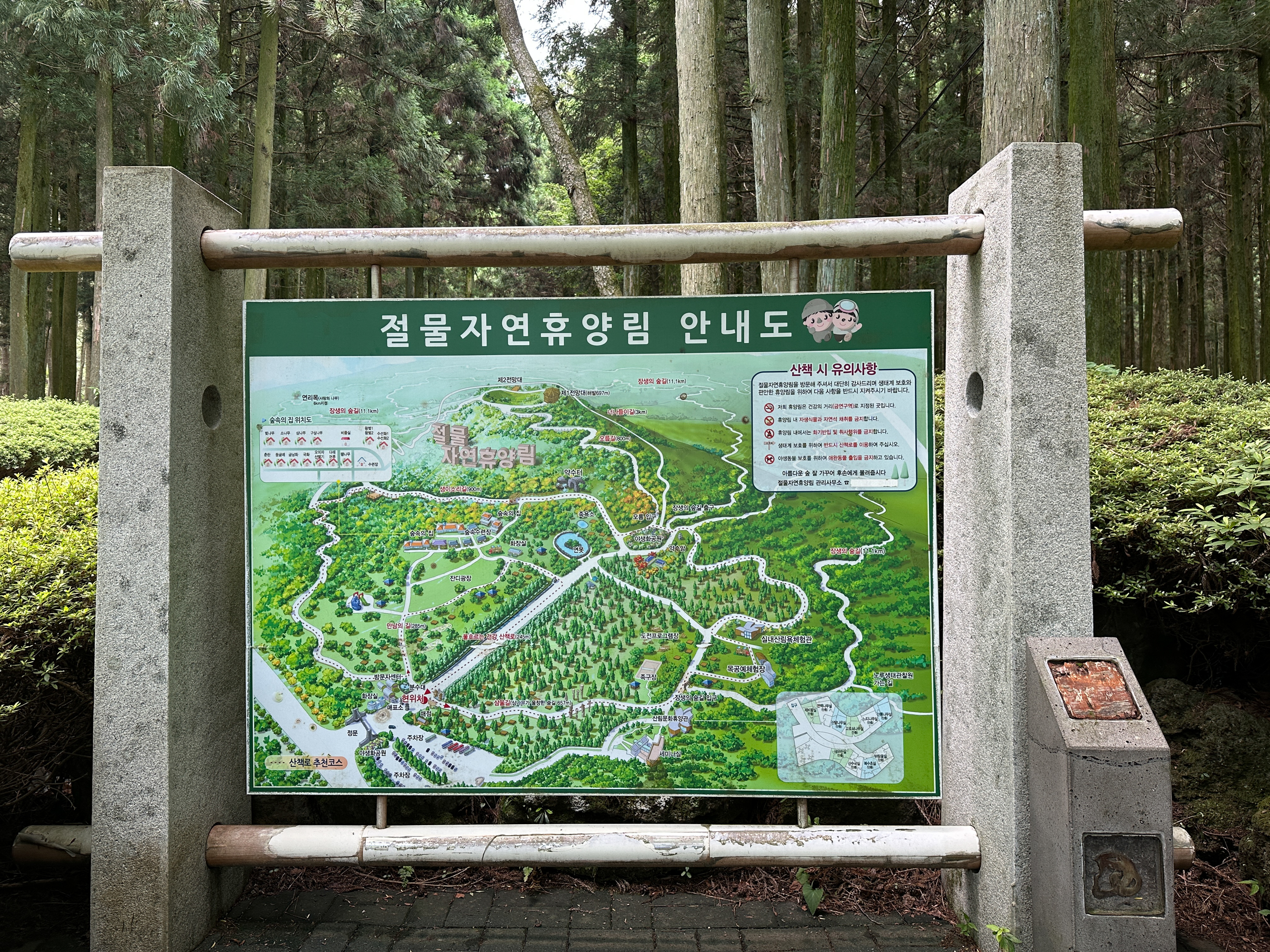 절물조릿대 둘레길을 빠져나와 50여m 도로를 걸으면 좌측으로 '절물자연휴양림'이 있다