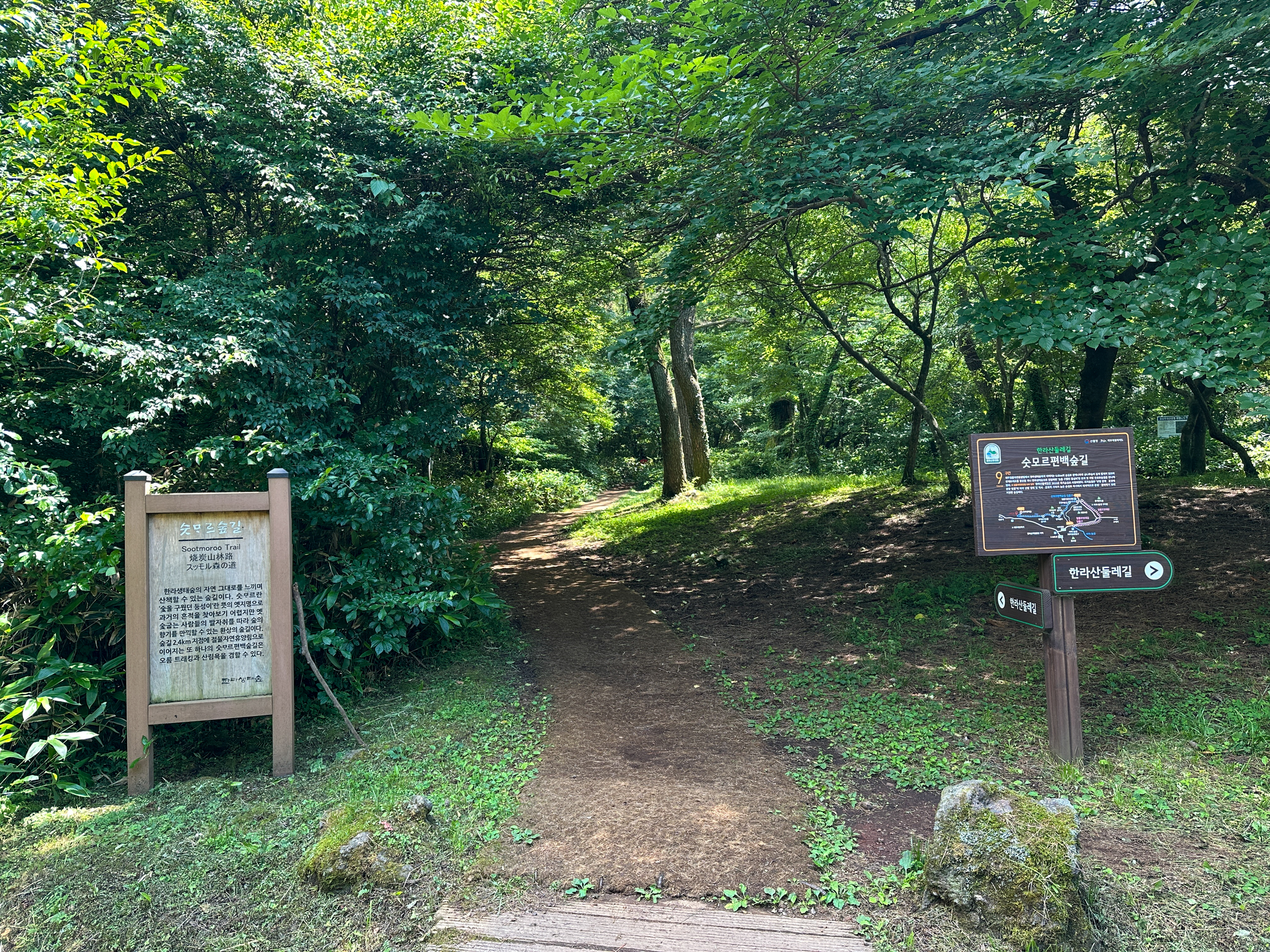 숫모르편백숲길과 한라생태숲방향에서 햇갈렸는데 '한라생태숲안내소(2.5km)방향'을 선택했다.