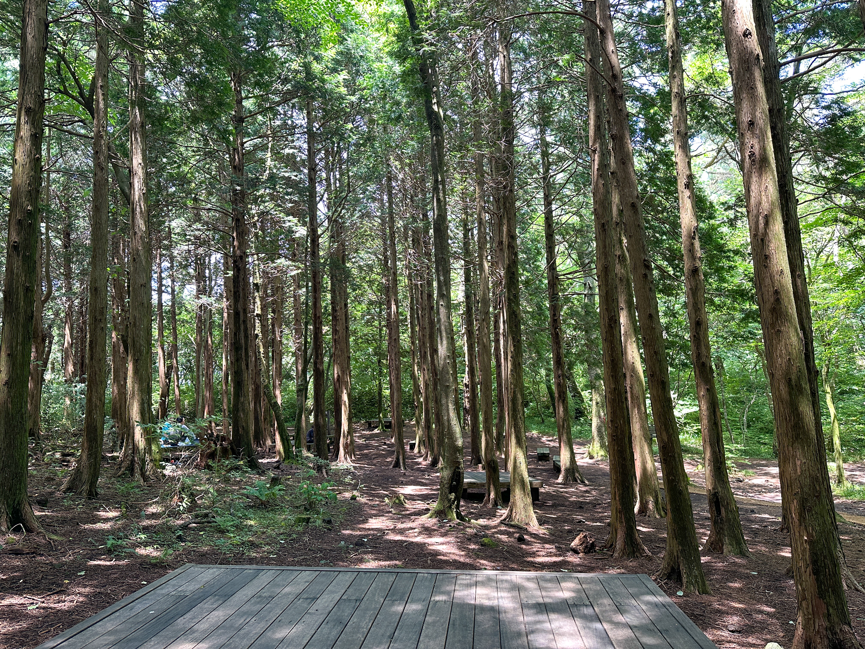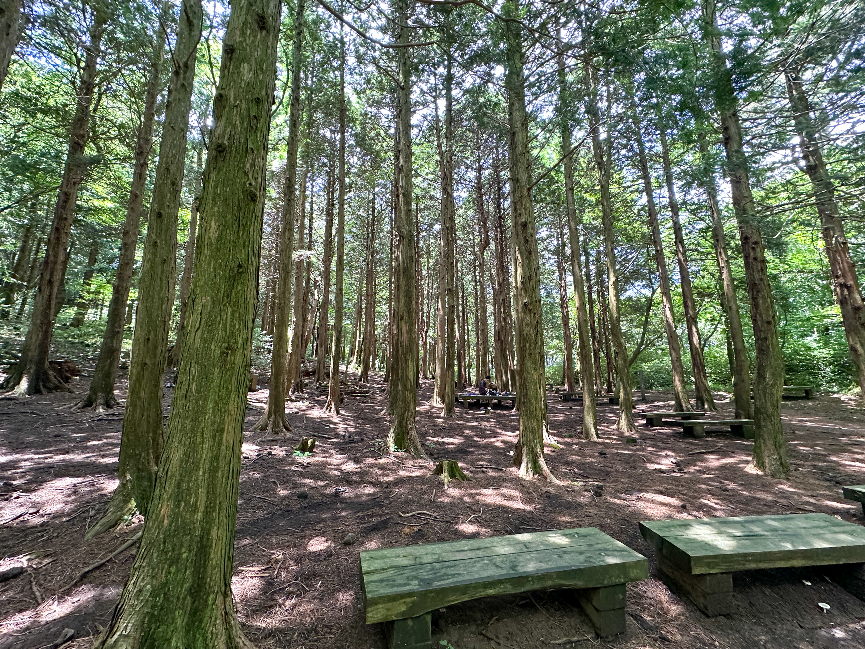 초입에 있는 삼나무숲 평상에 앉아 준비해 온 점심을 먹었다.